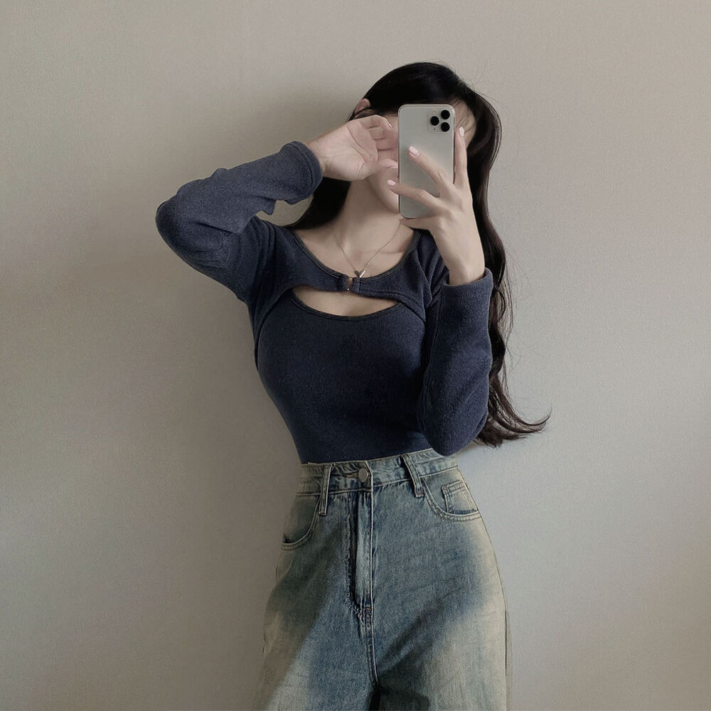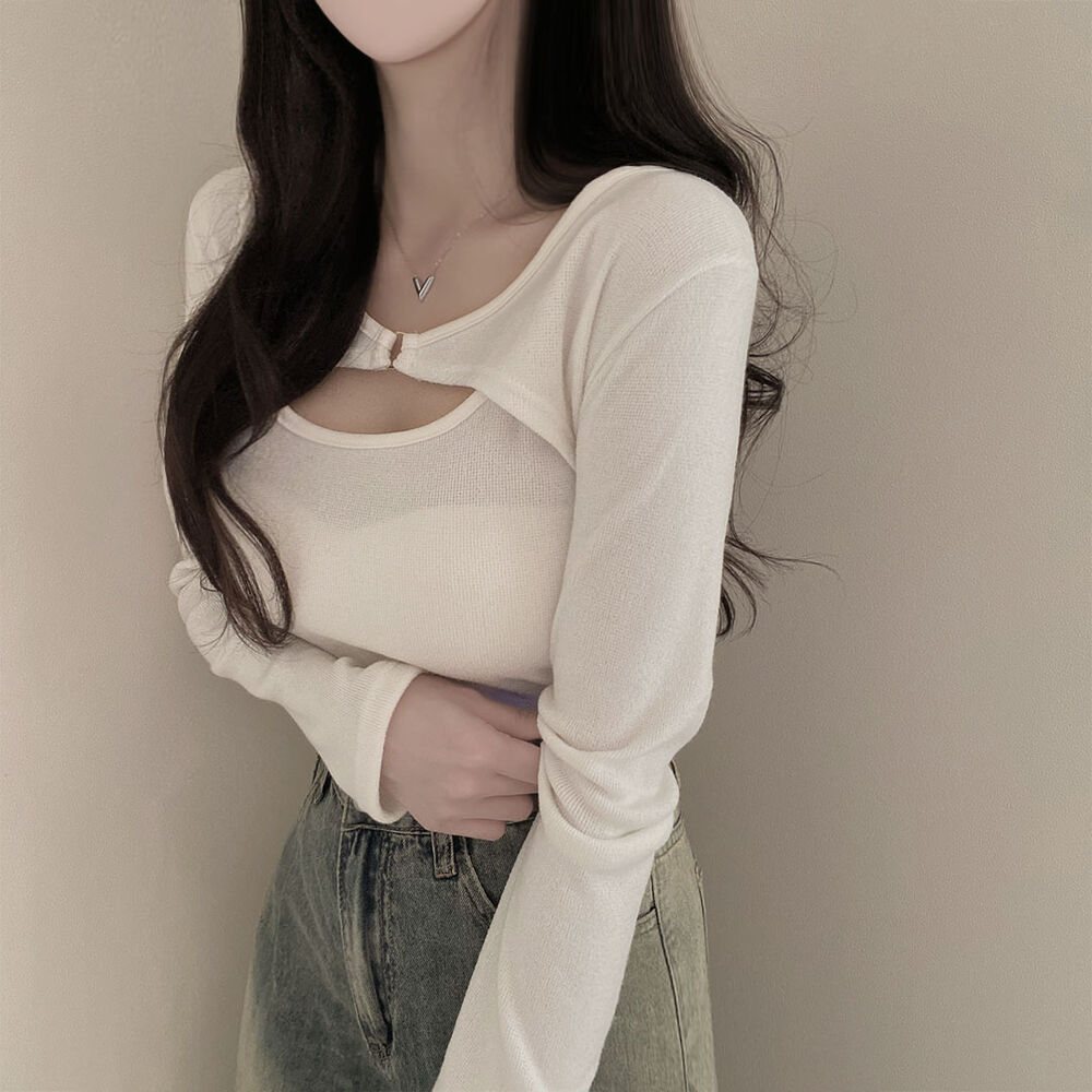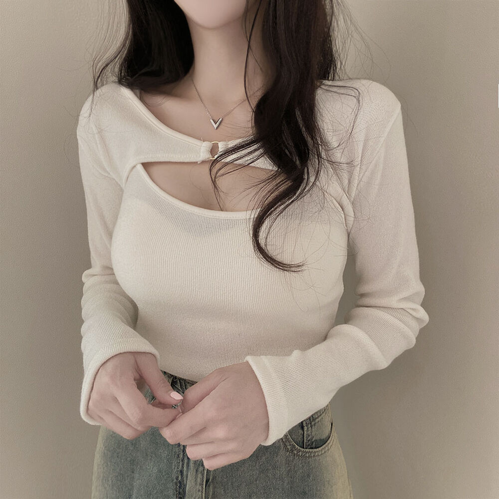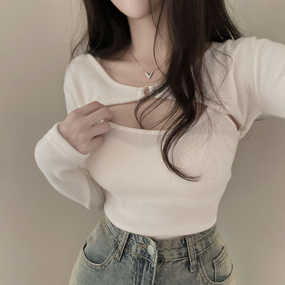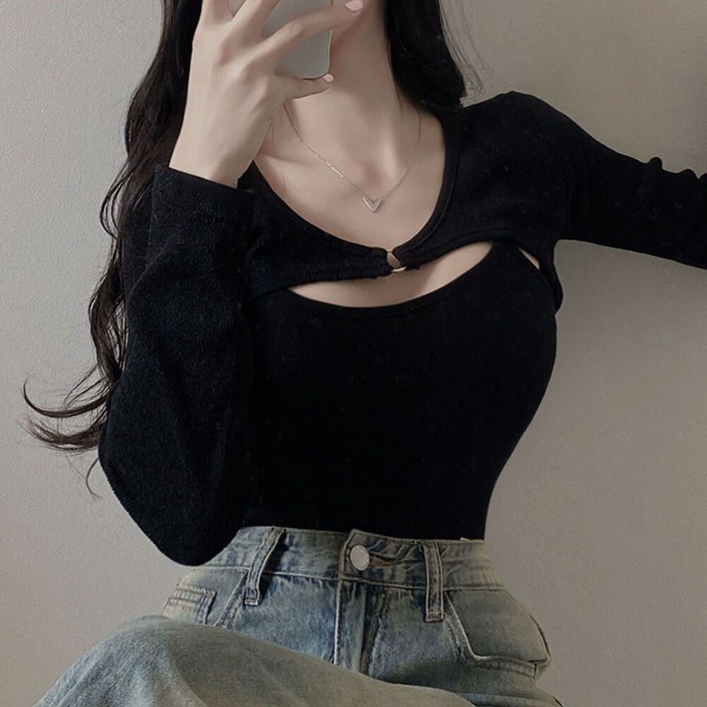 (SET)ボレロバックルスリムクロップドニットTシャツ+ノースリーブ
