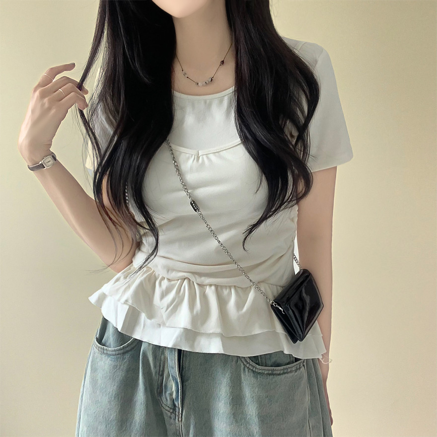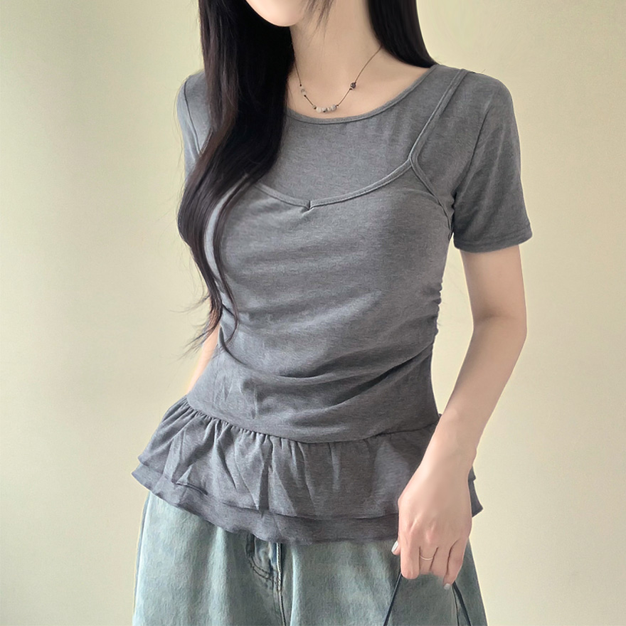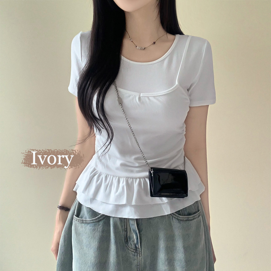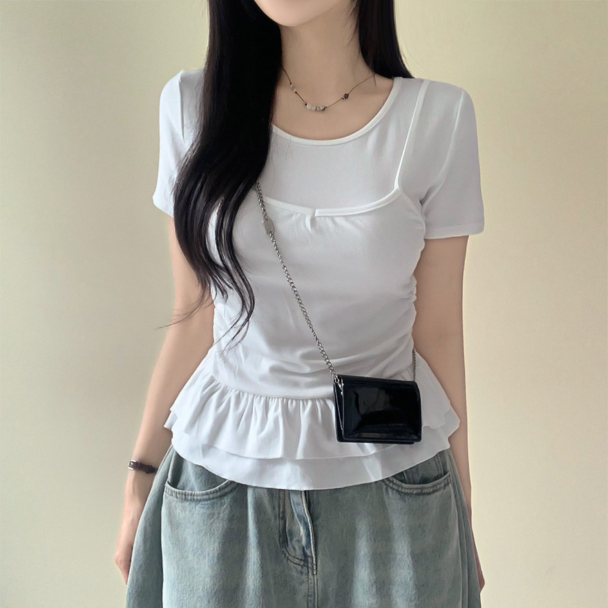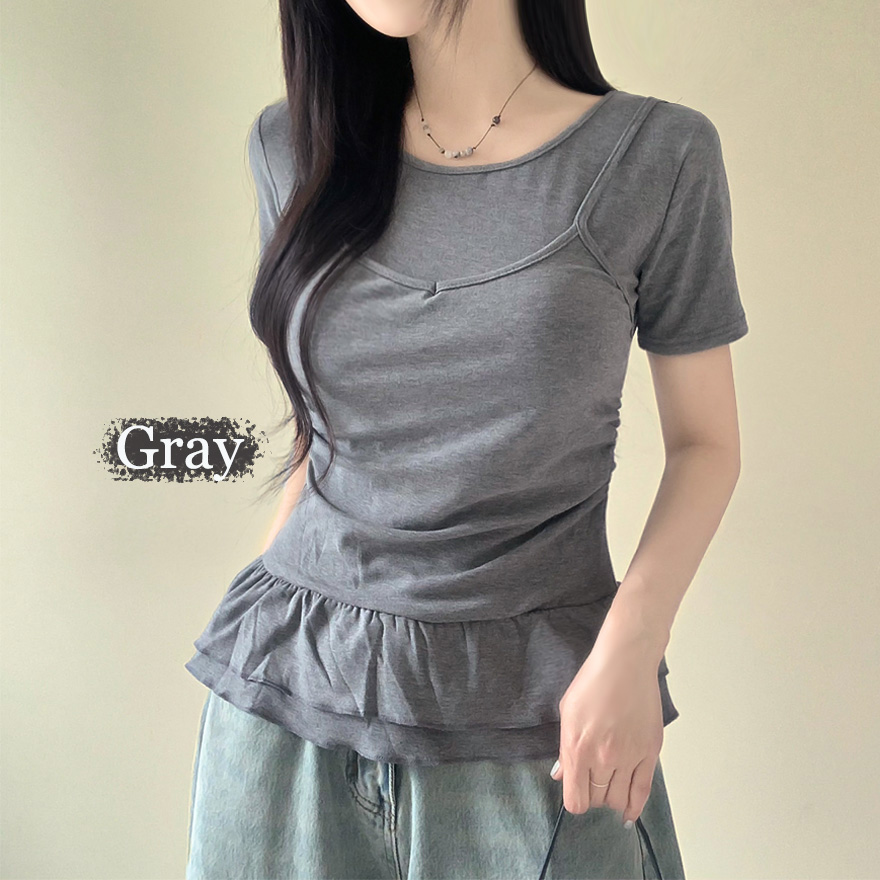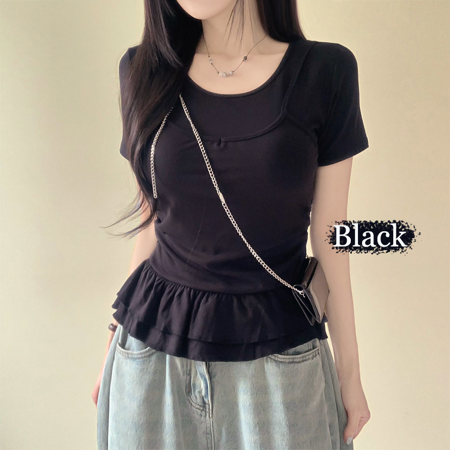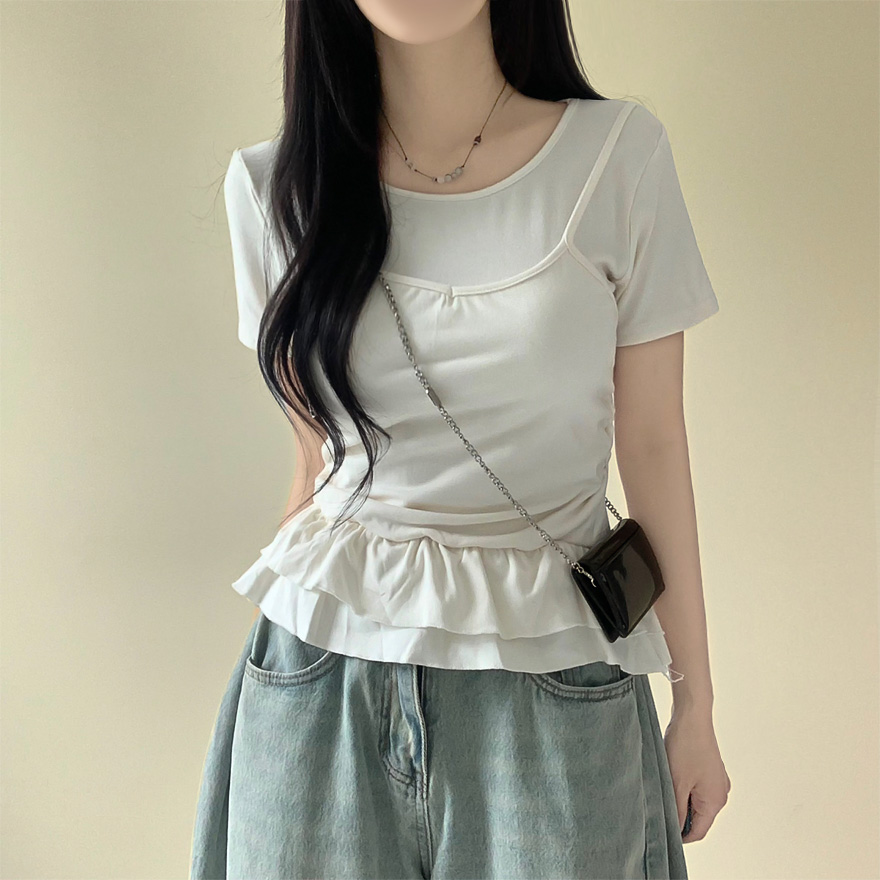 レイヤードビスチェティアードフリル無地半袖Tシャツ