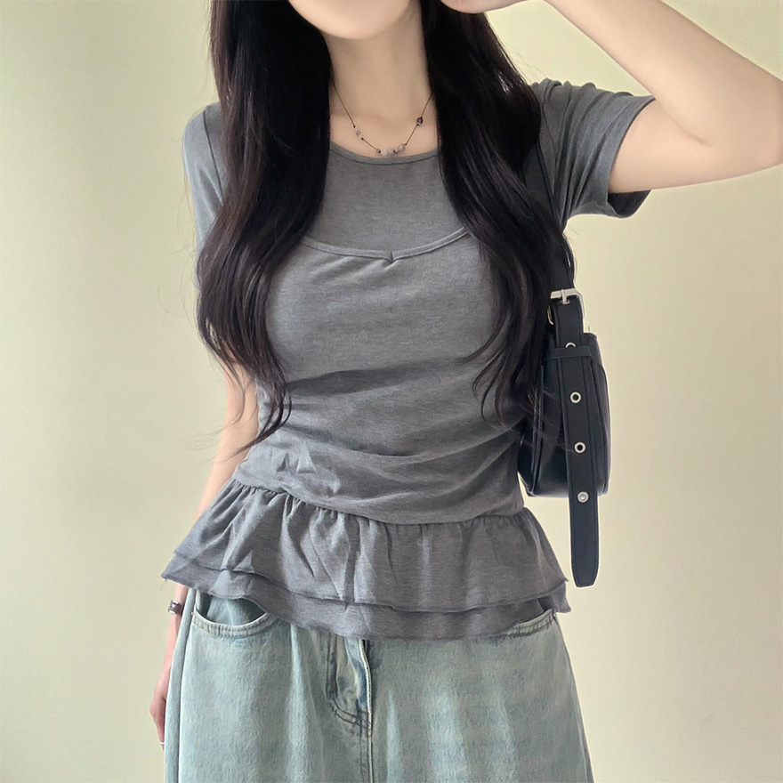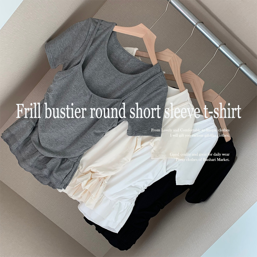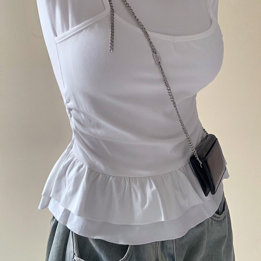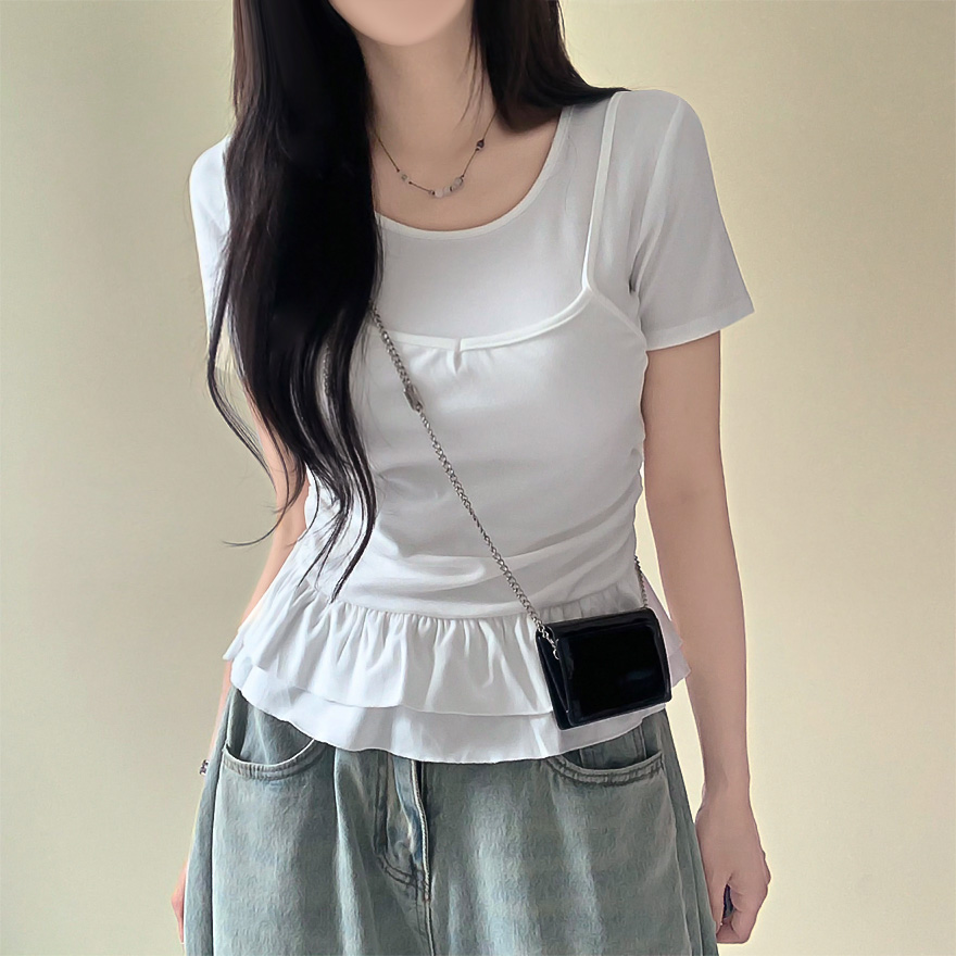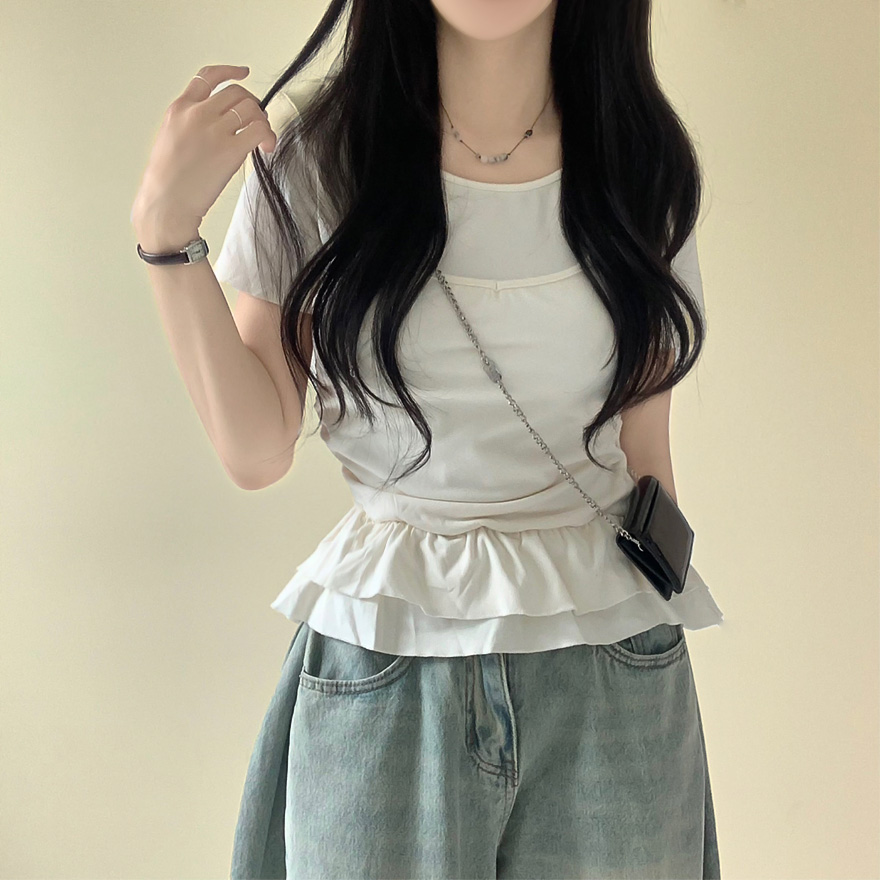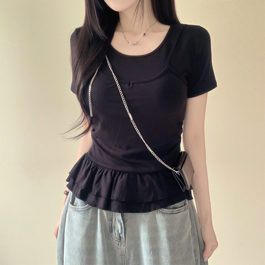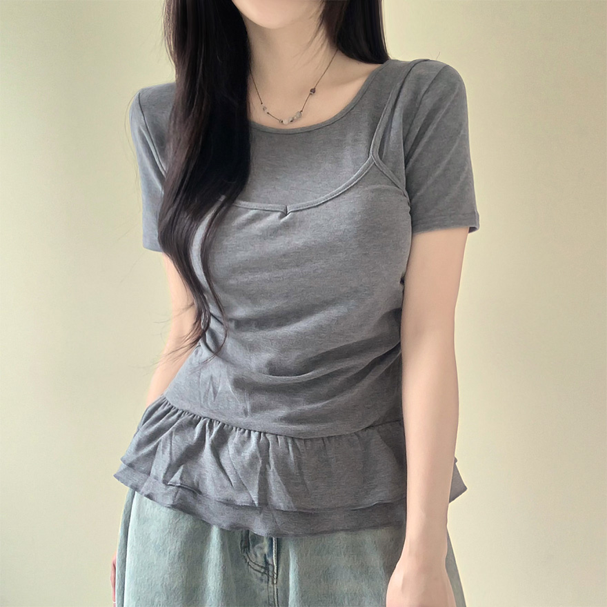 レイヤードビスチェティアードフリル無地半袖Tシャツ