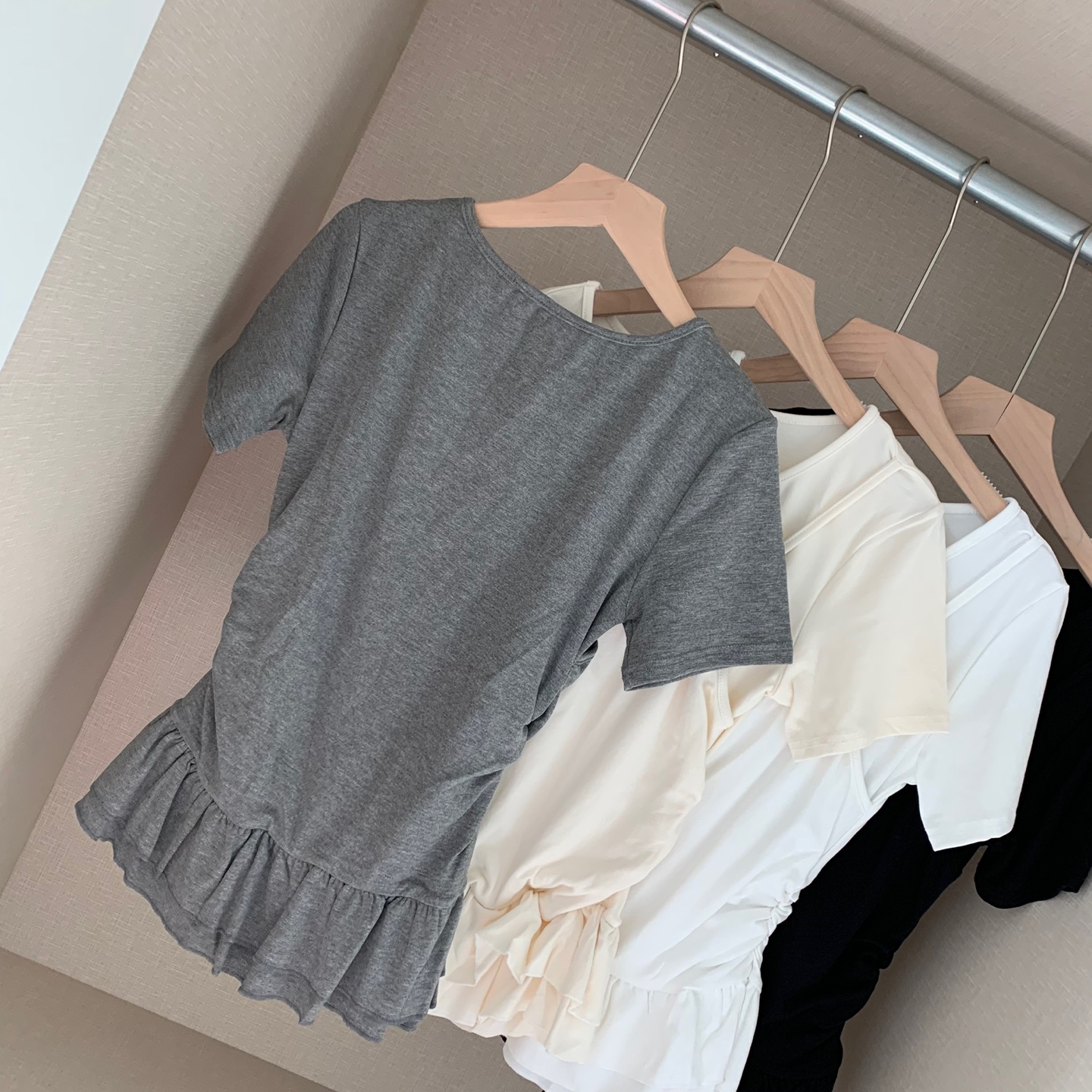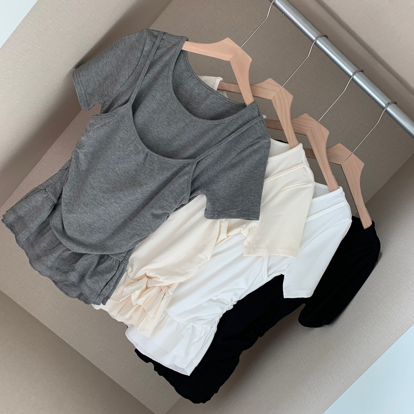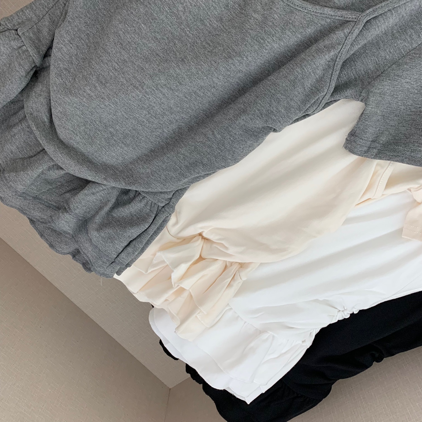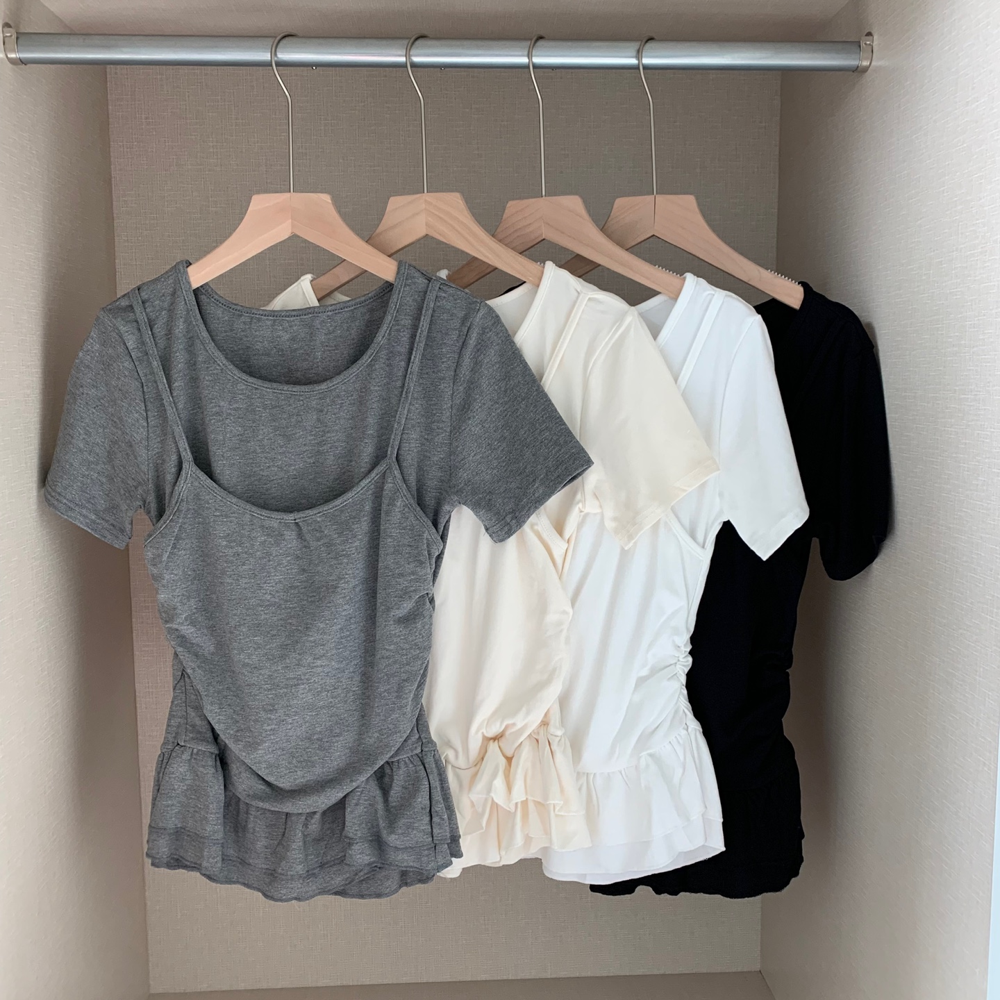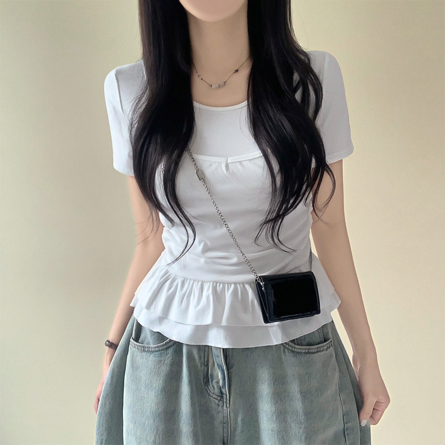 レイヤードビスチェティアードフリル無地半袖Tシャツ