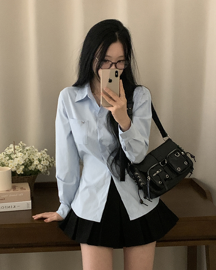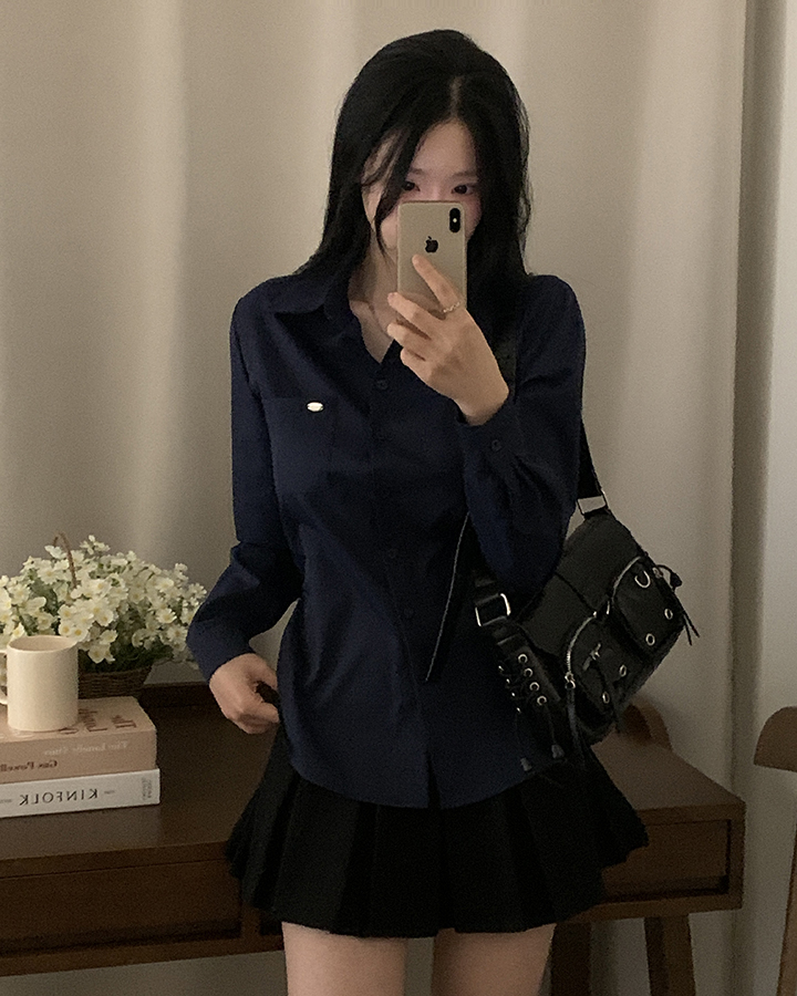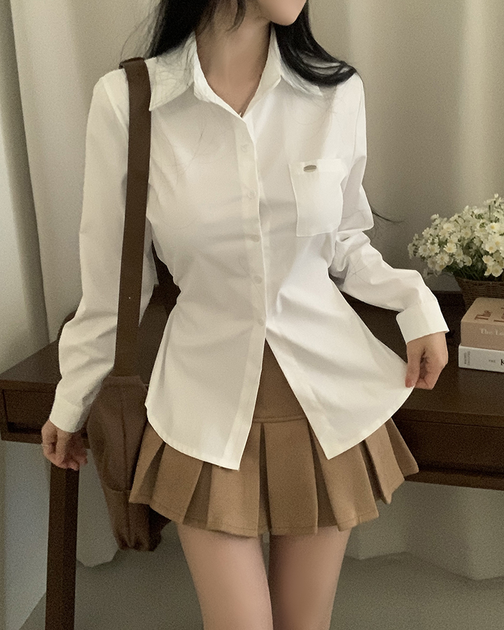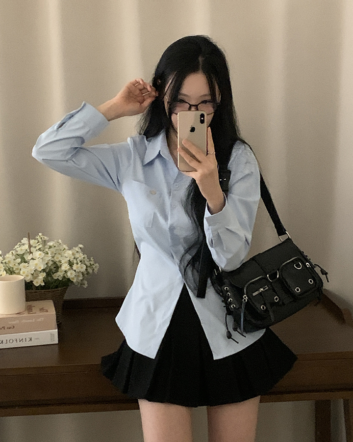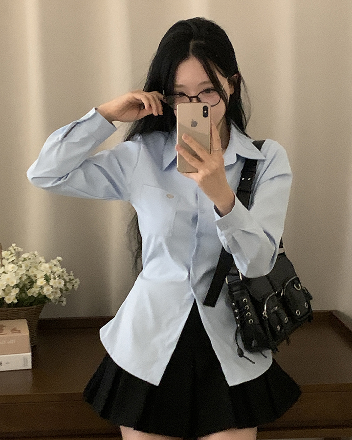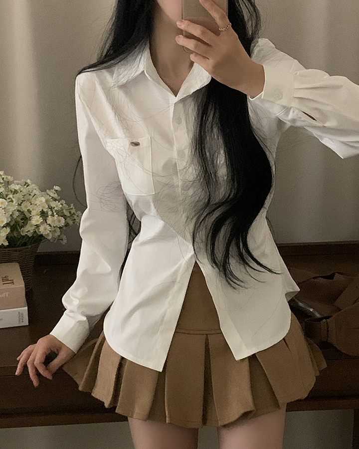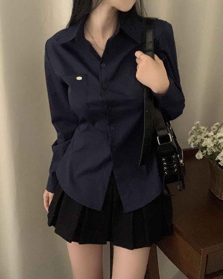 (3color)ウエストストラップ付きスリムフィットシャツ
