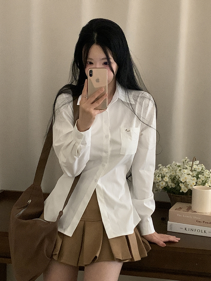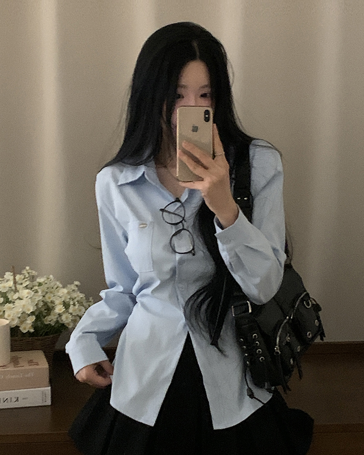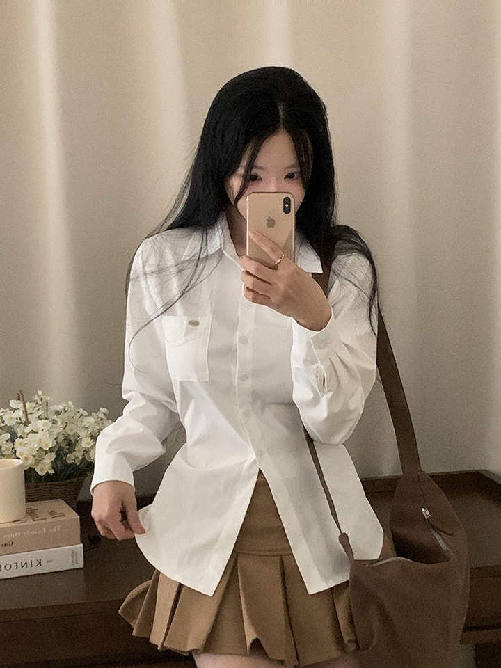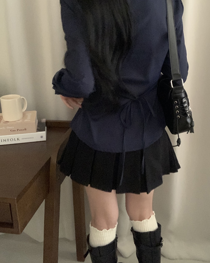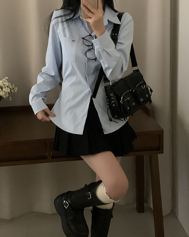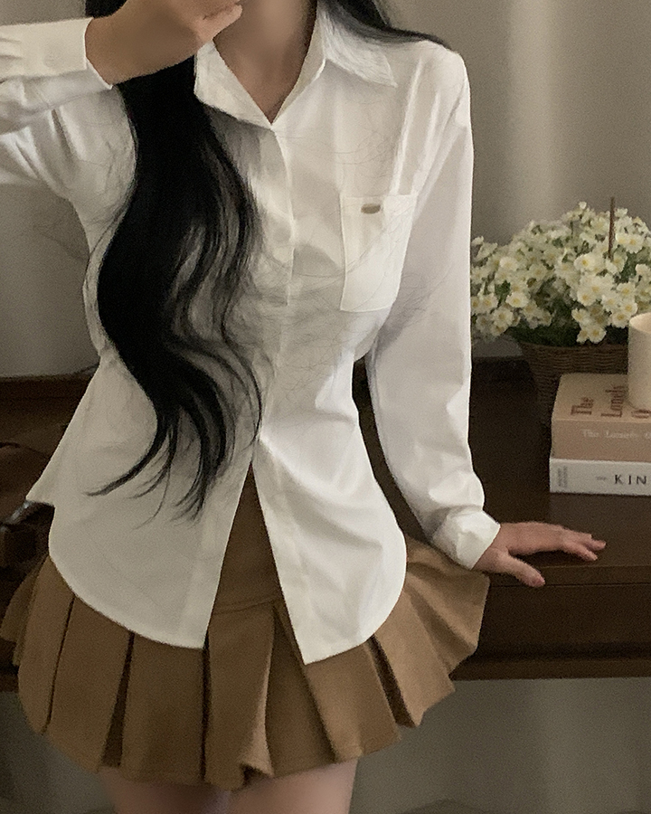 (3color)ウエストストラップ付きスリムフィットシャツ