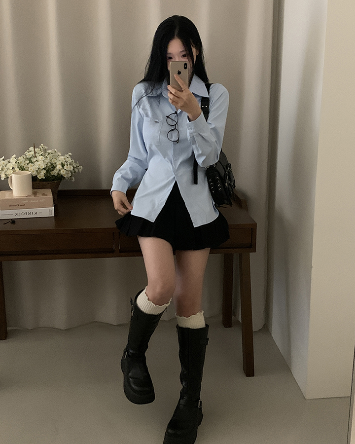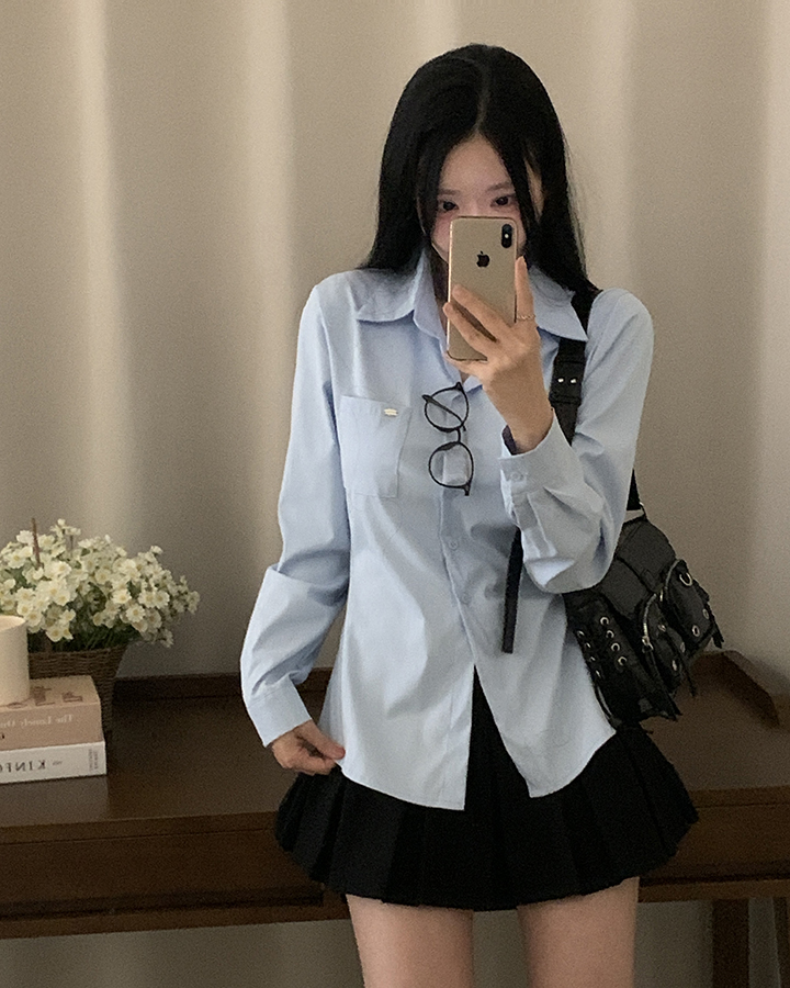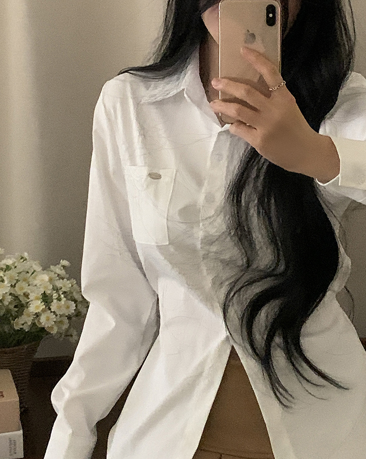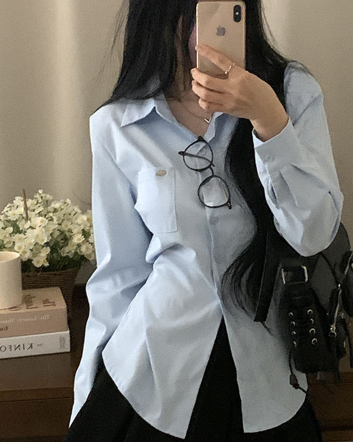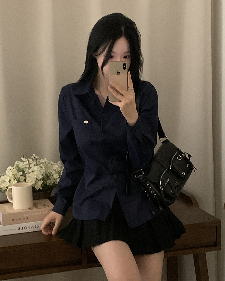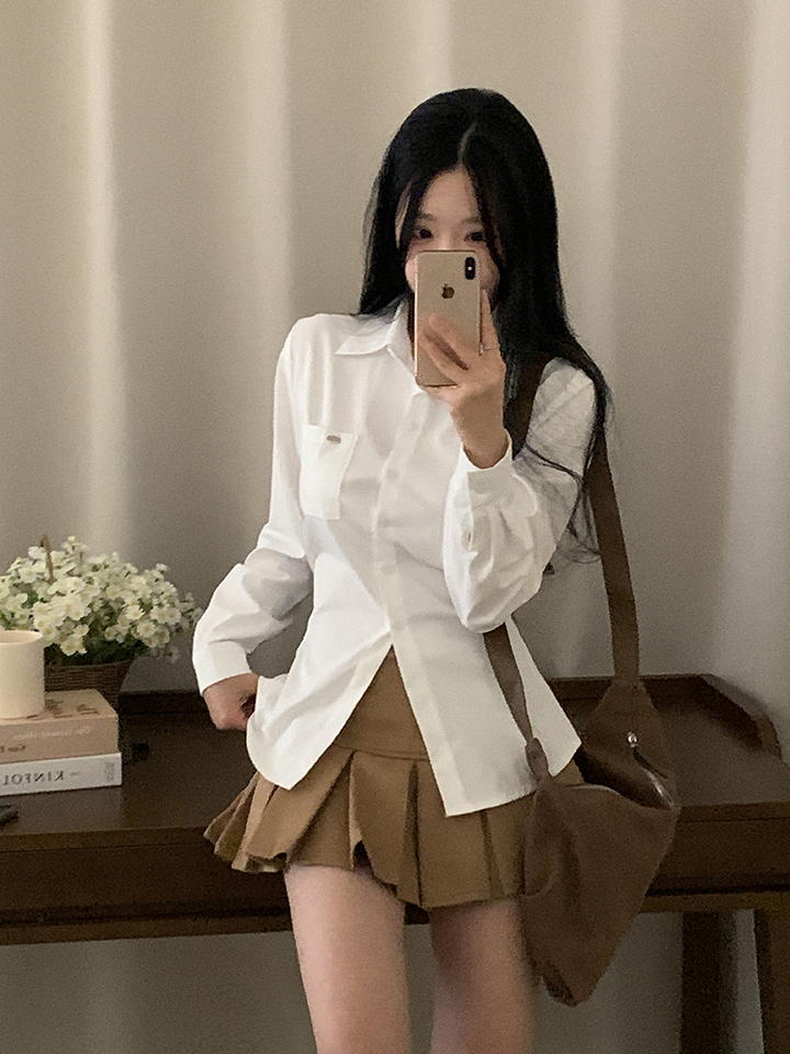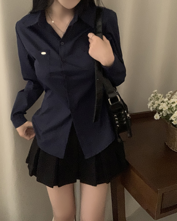 (3color)ウエストストラップ付きスリムフィットシャツ