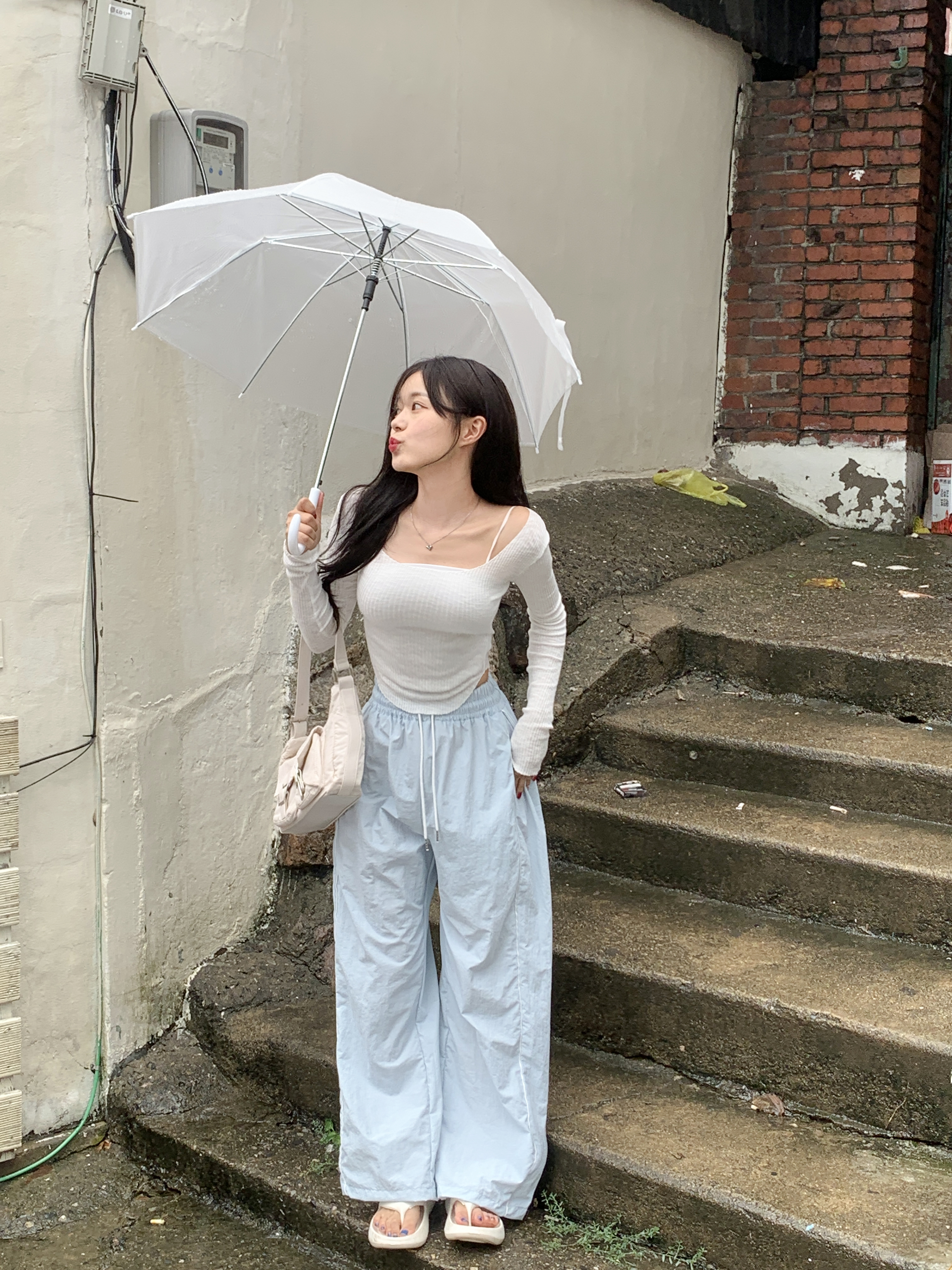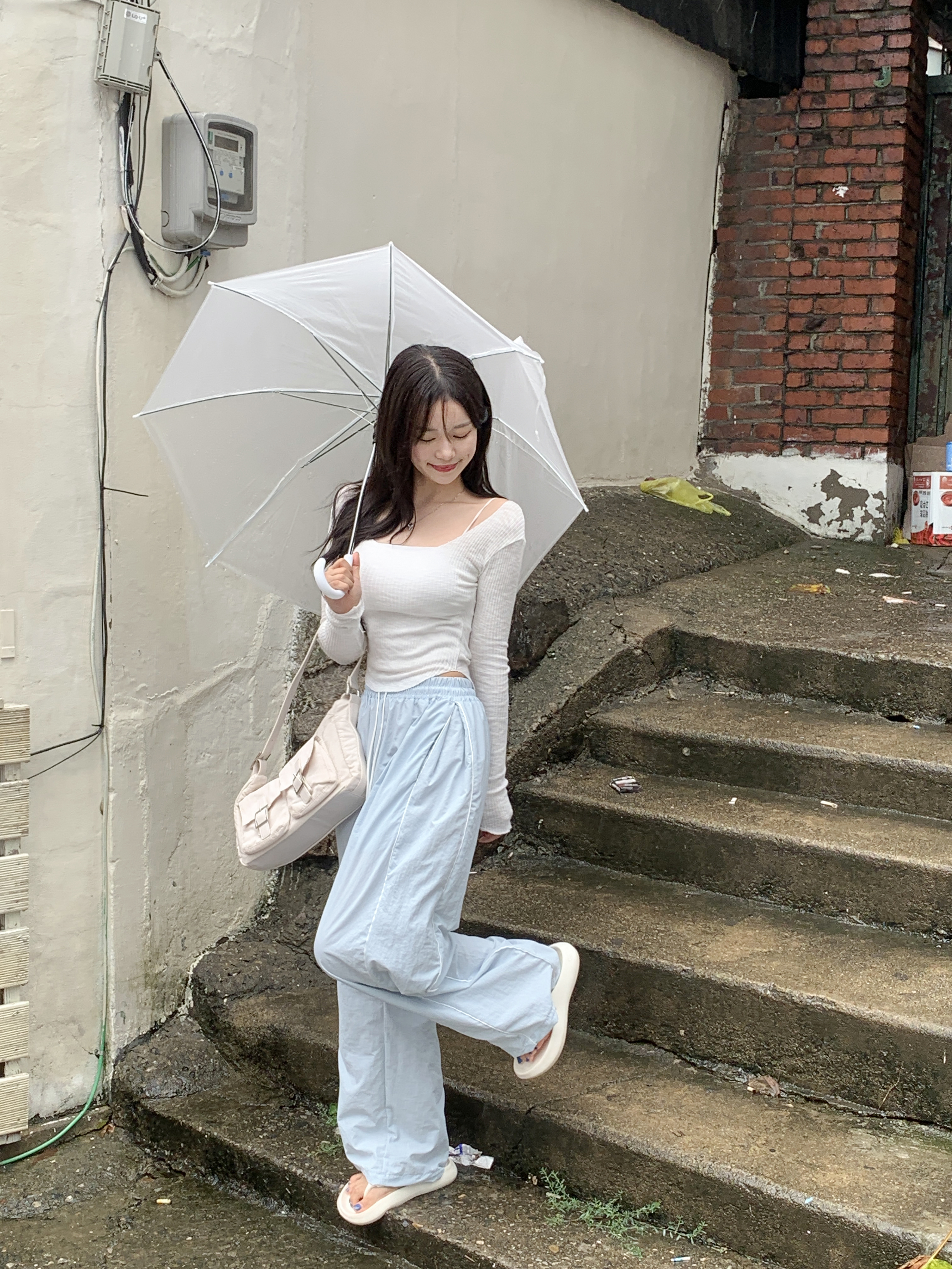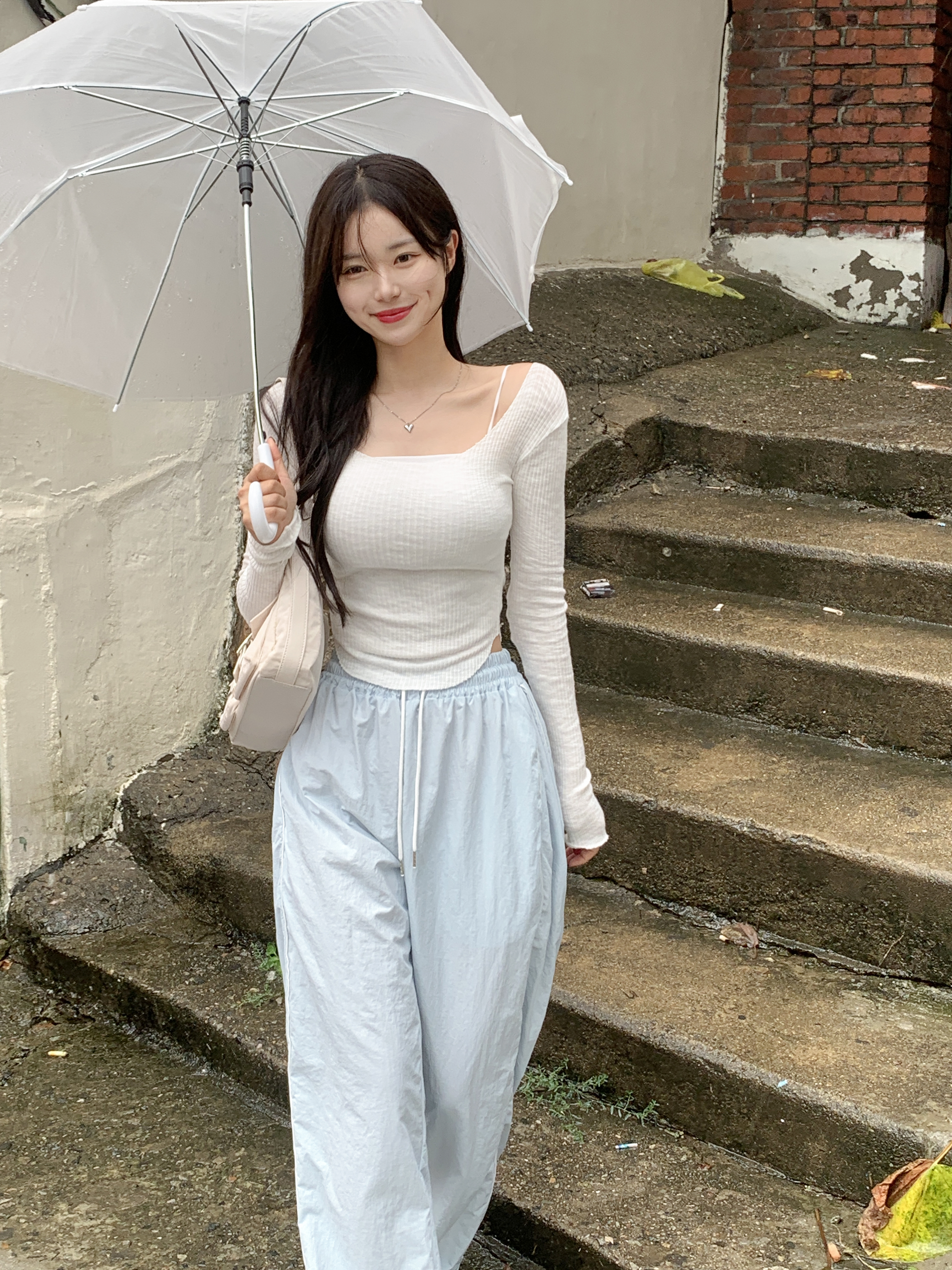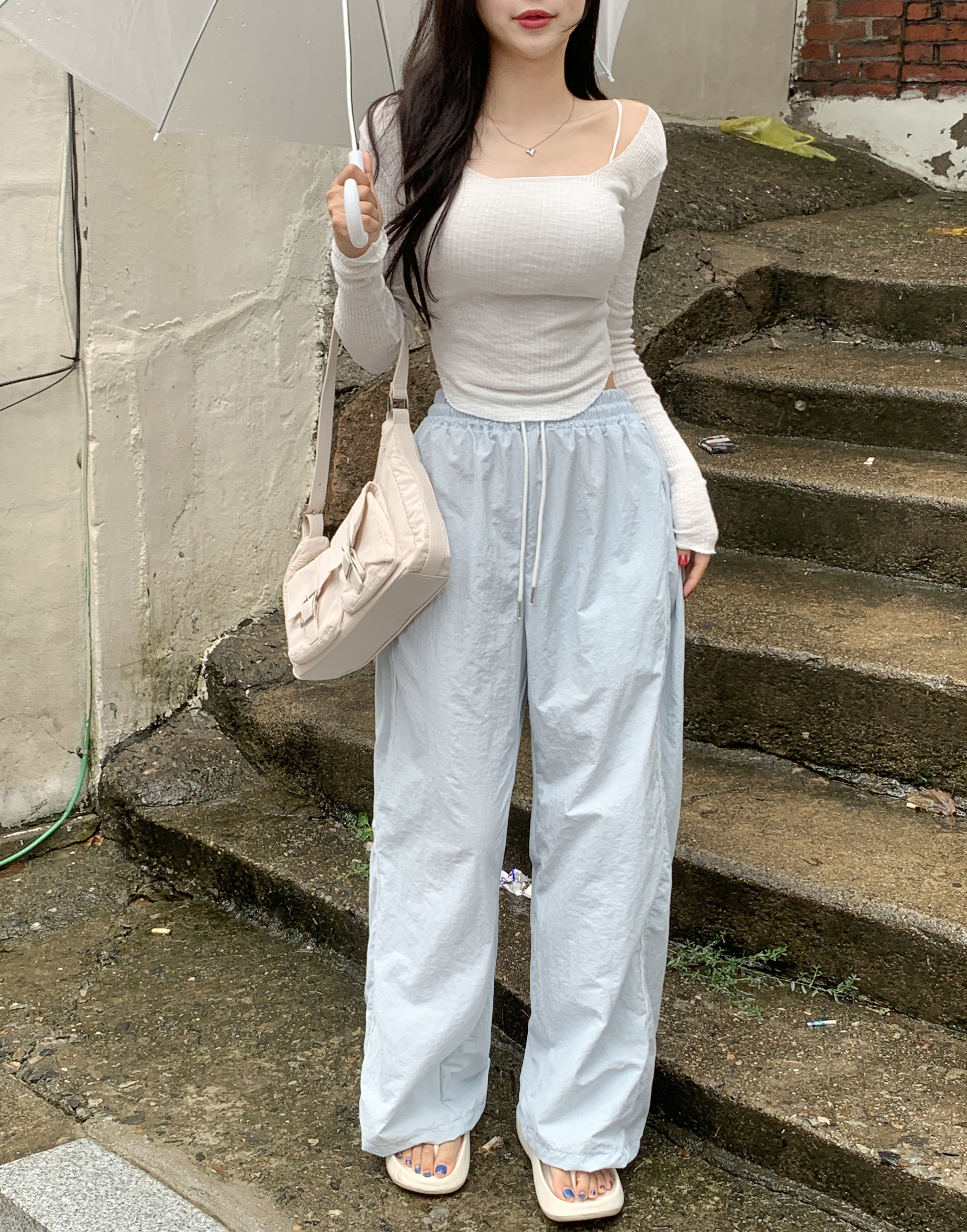 더비 더블라인 핀턱 밴딩팬츠 (소라)