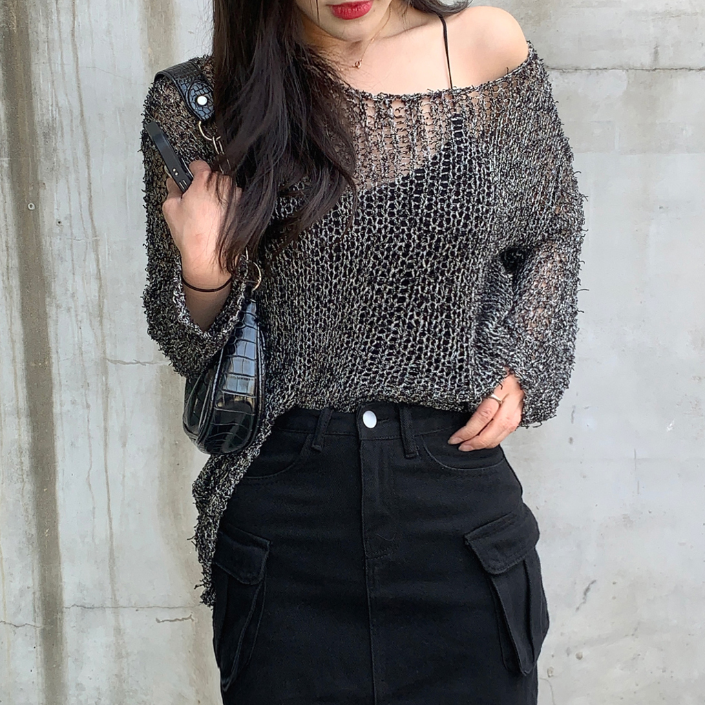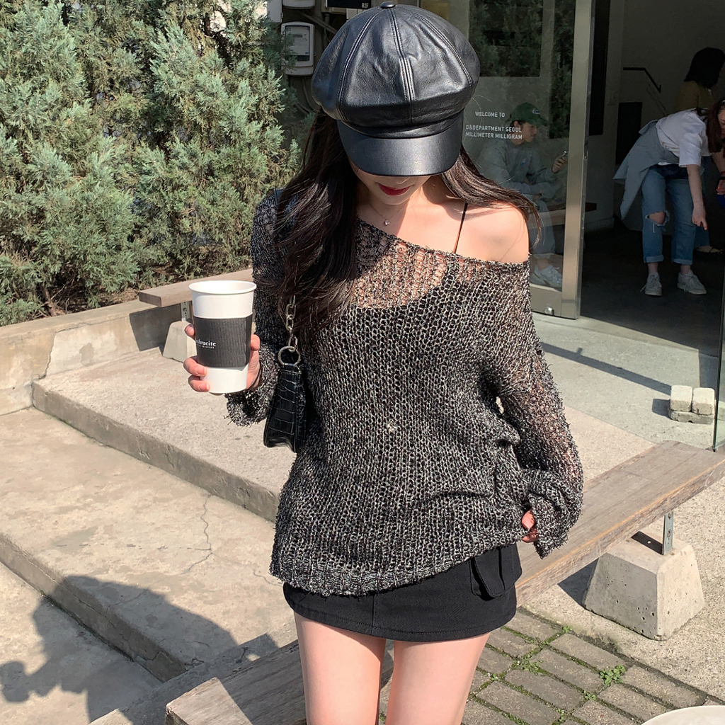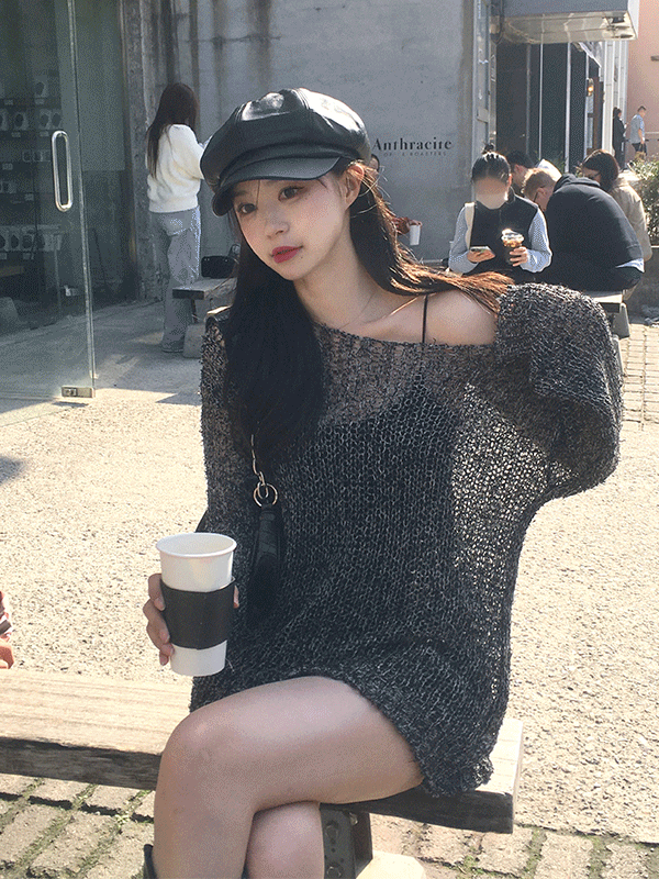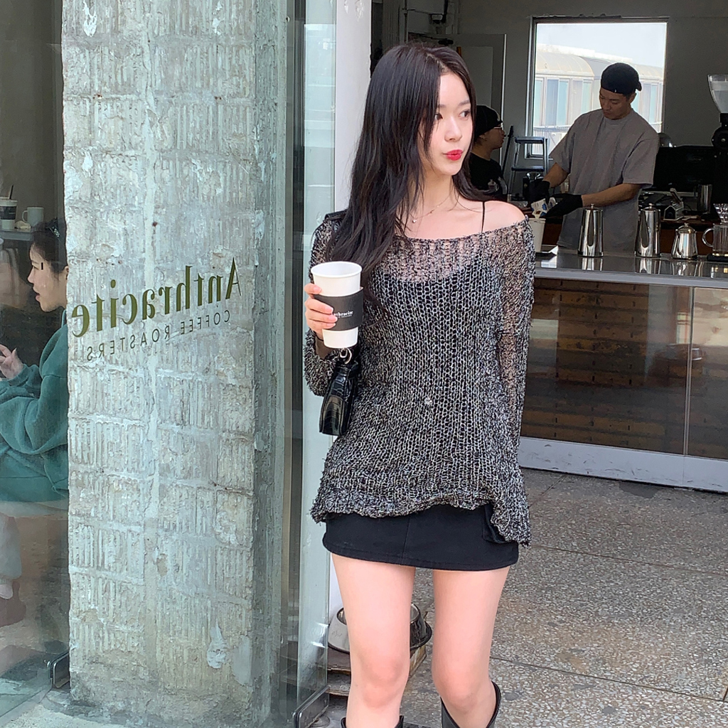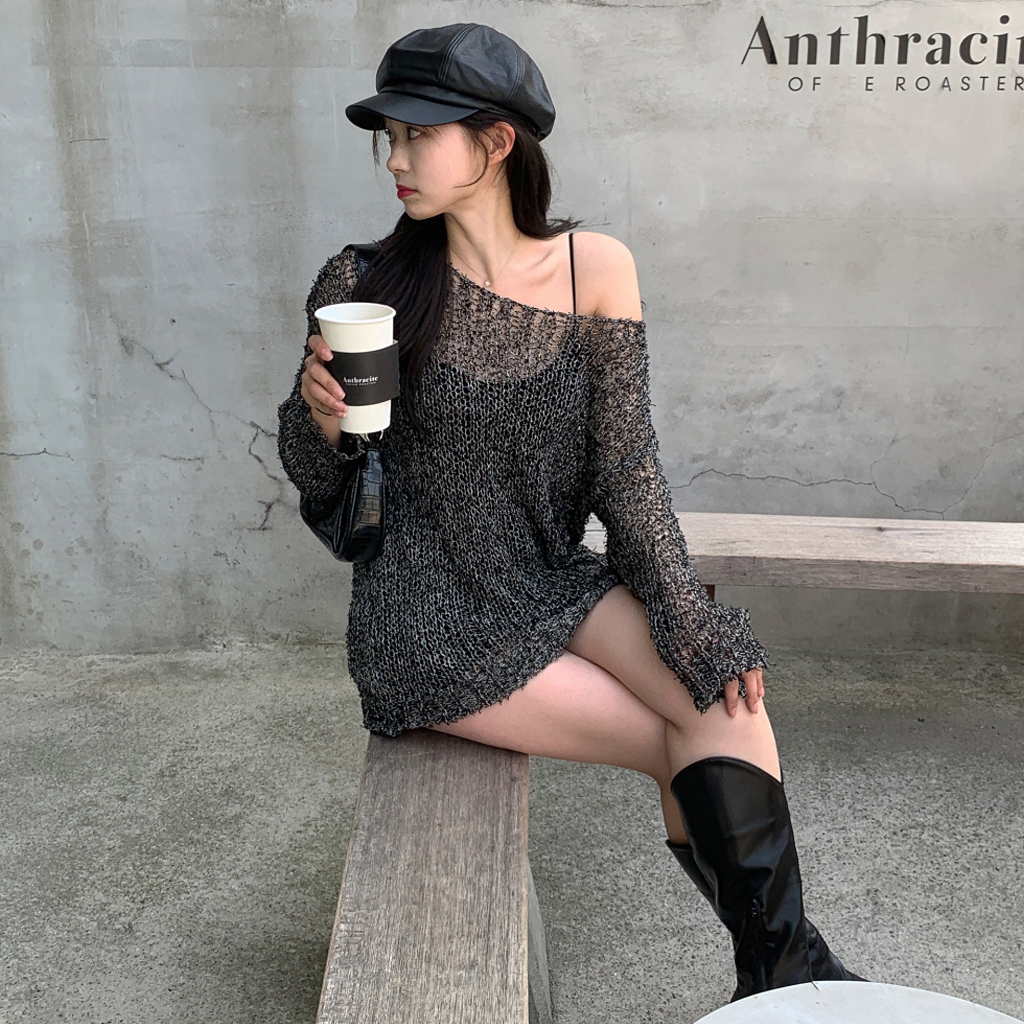 ミックスボートネックロングニット(3color)