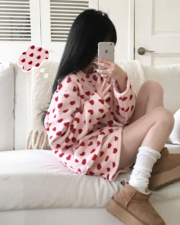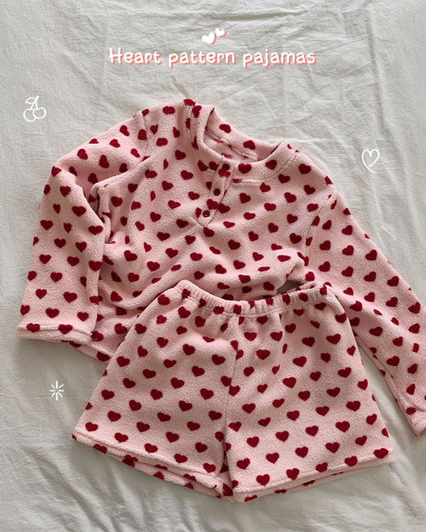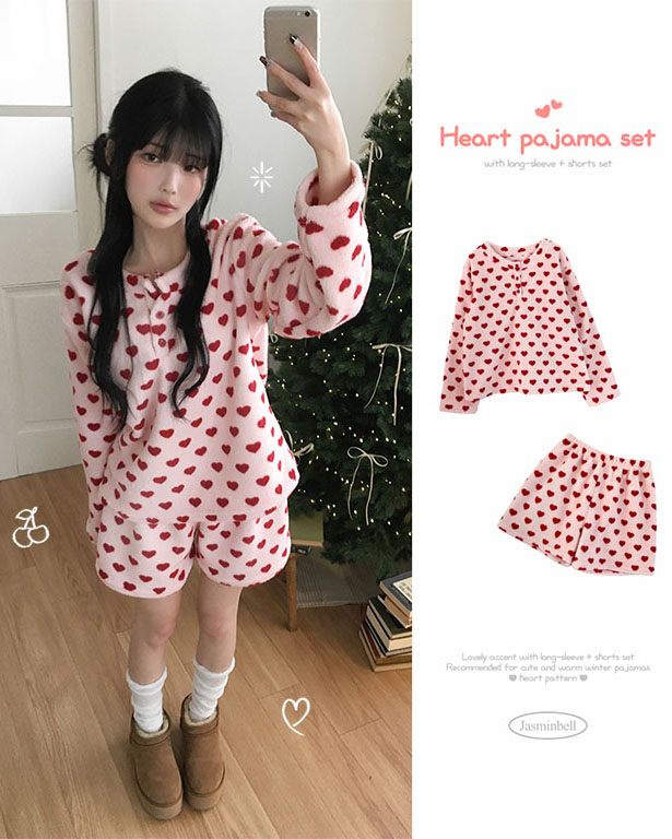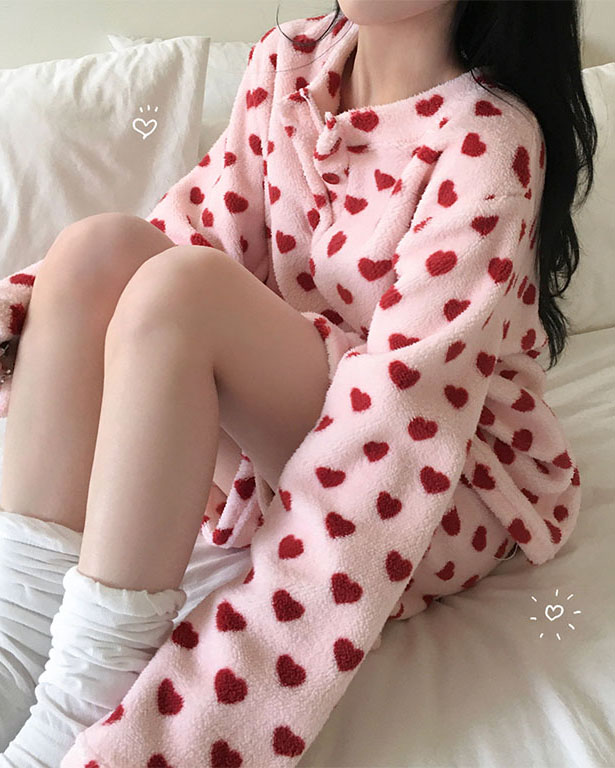 ハート柄厚手ミディ丈ルームウェアパジャマセット