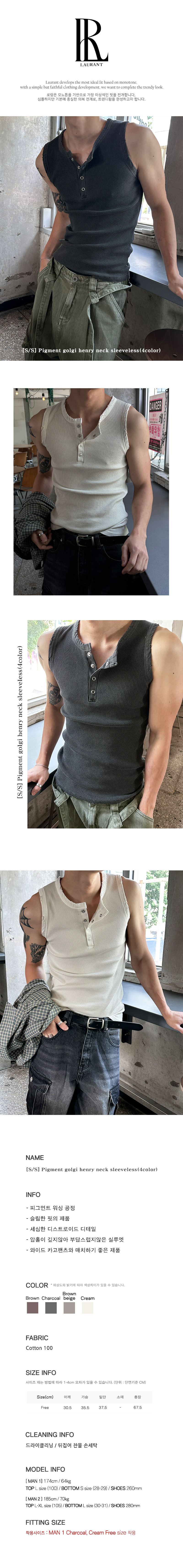 [S/S] Pigment golgi henry neck sleeveless(4color)
