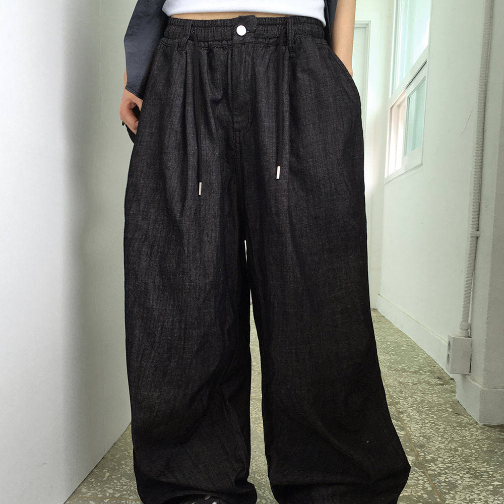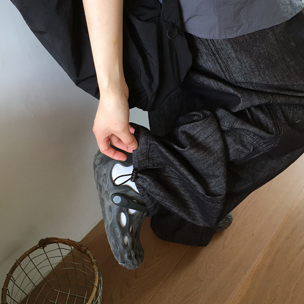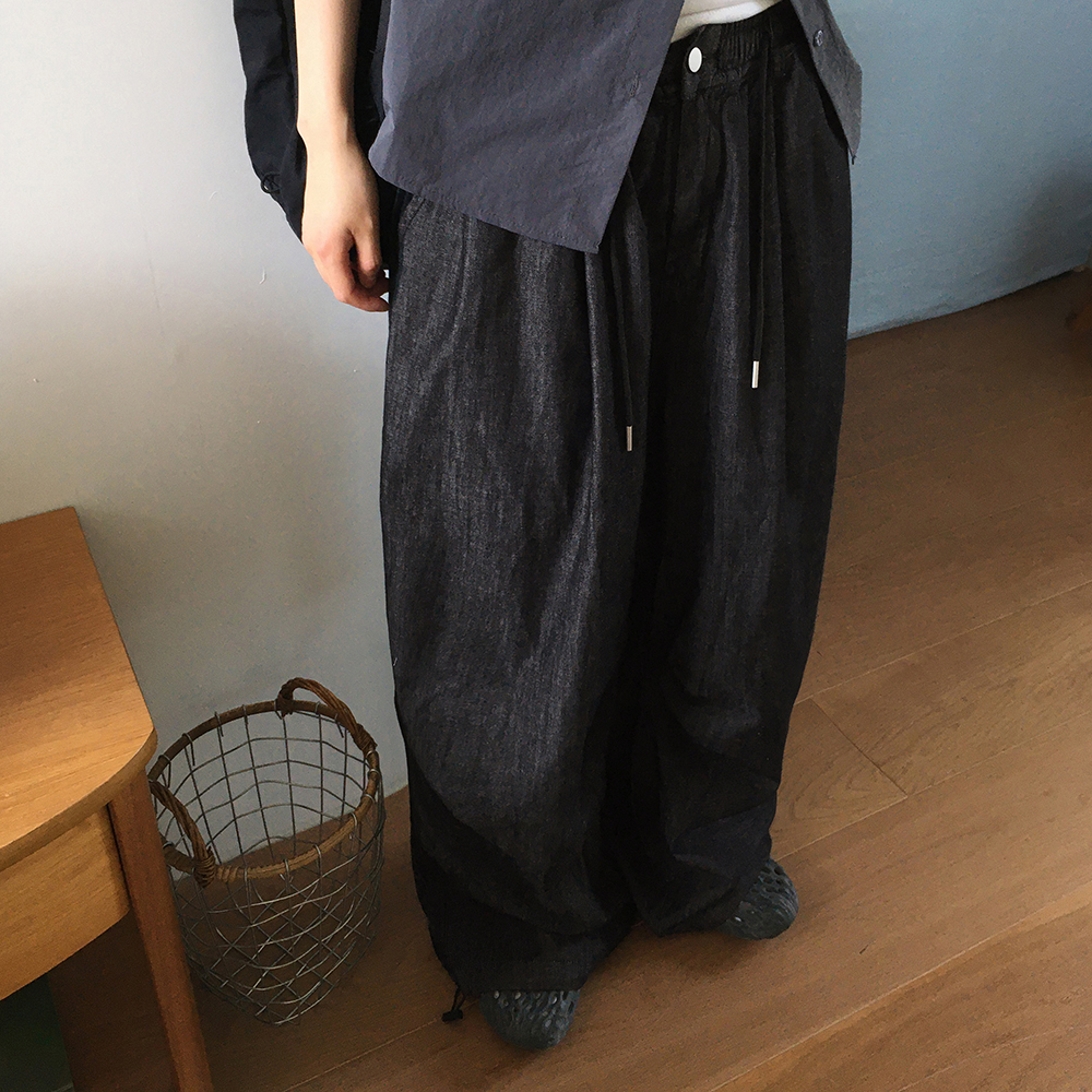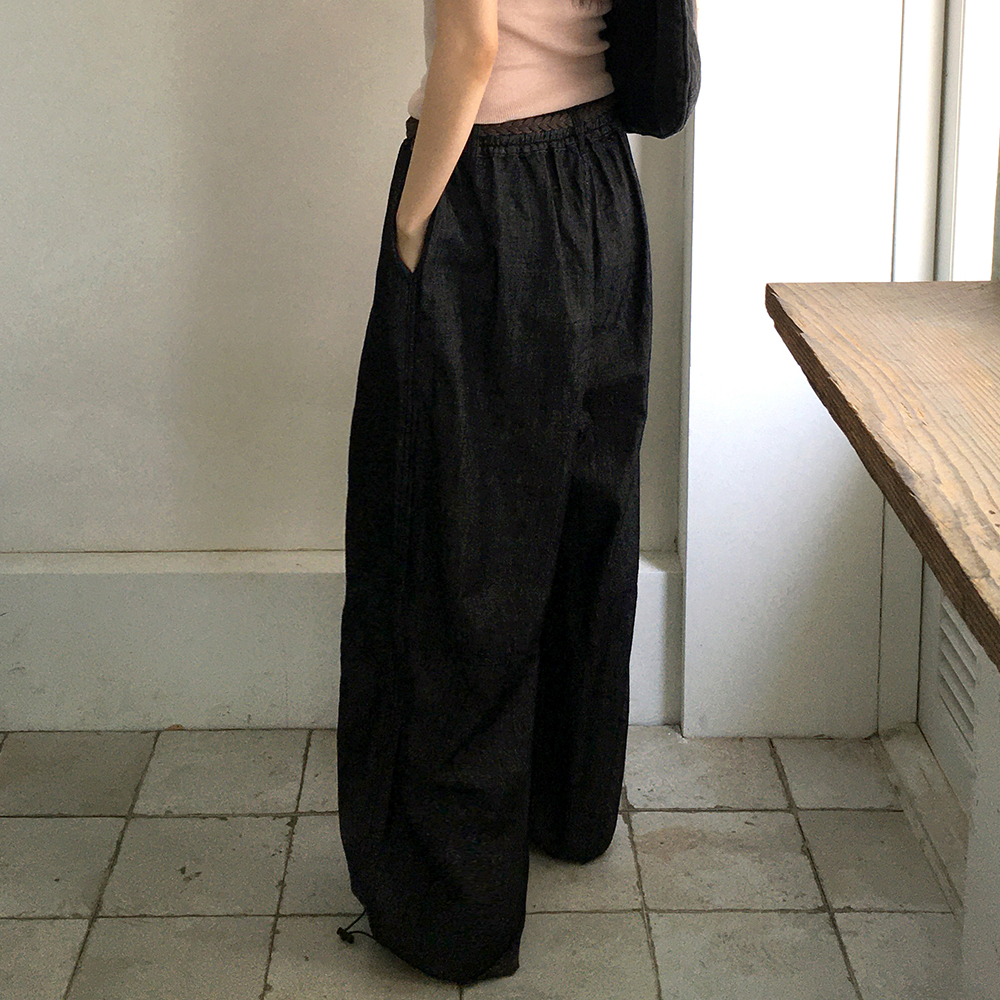 [original] ストリング2WAYリネンデニムロングワイドジョガーパンツ