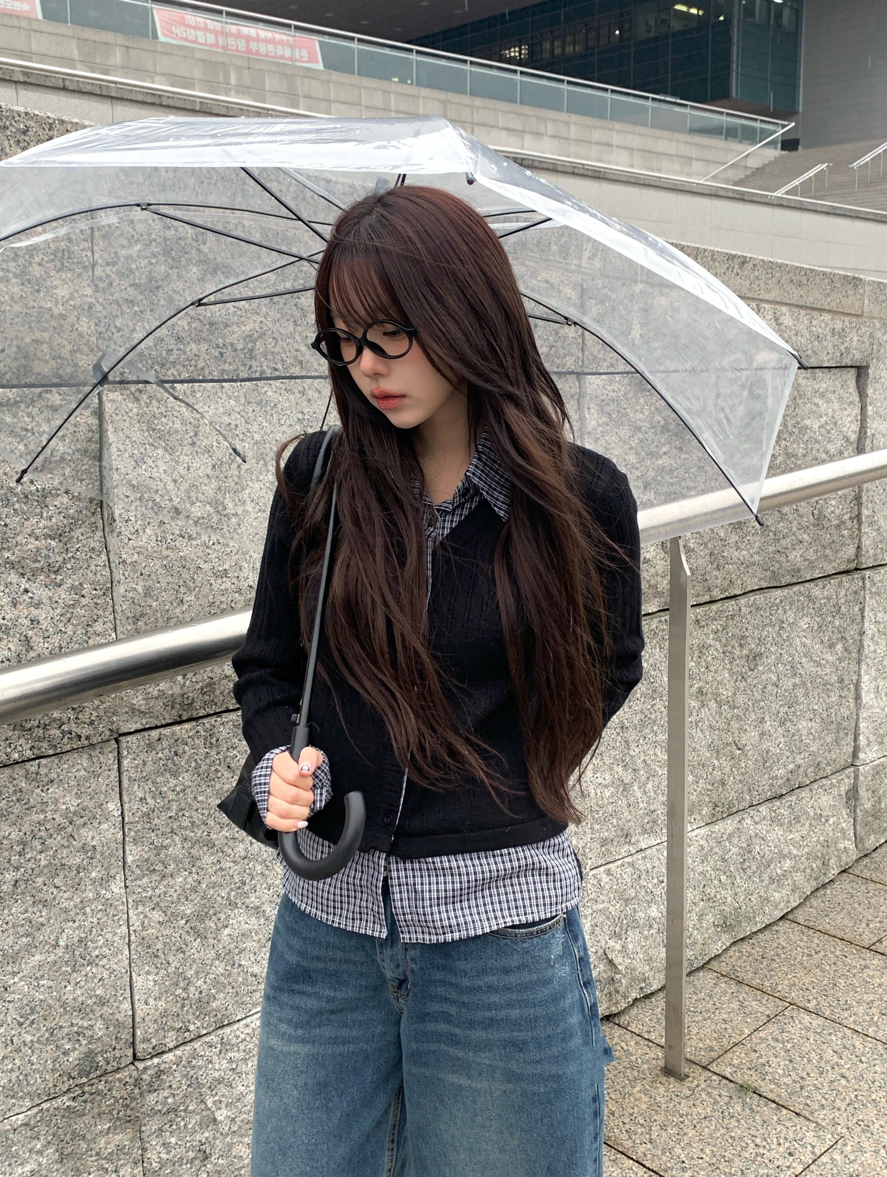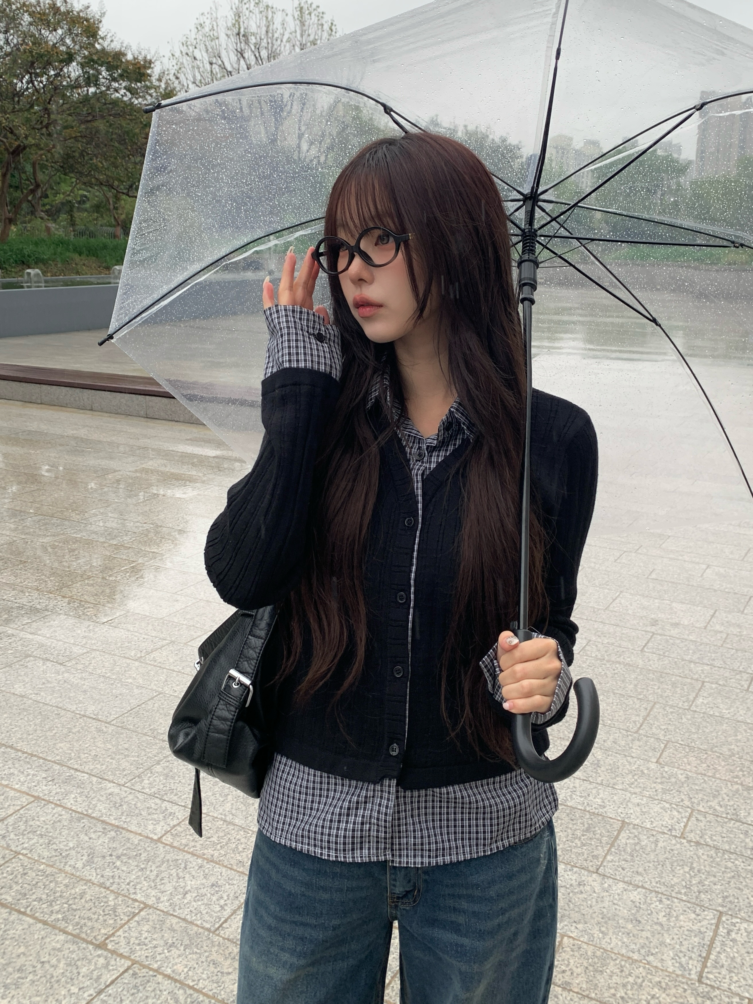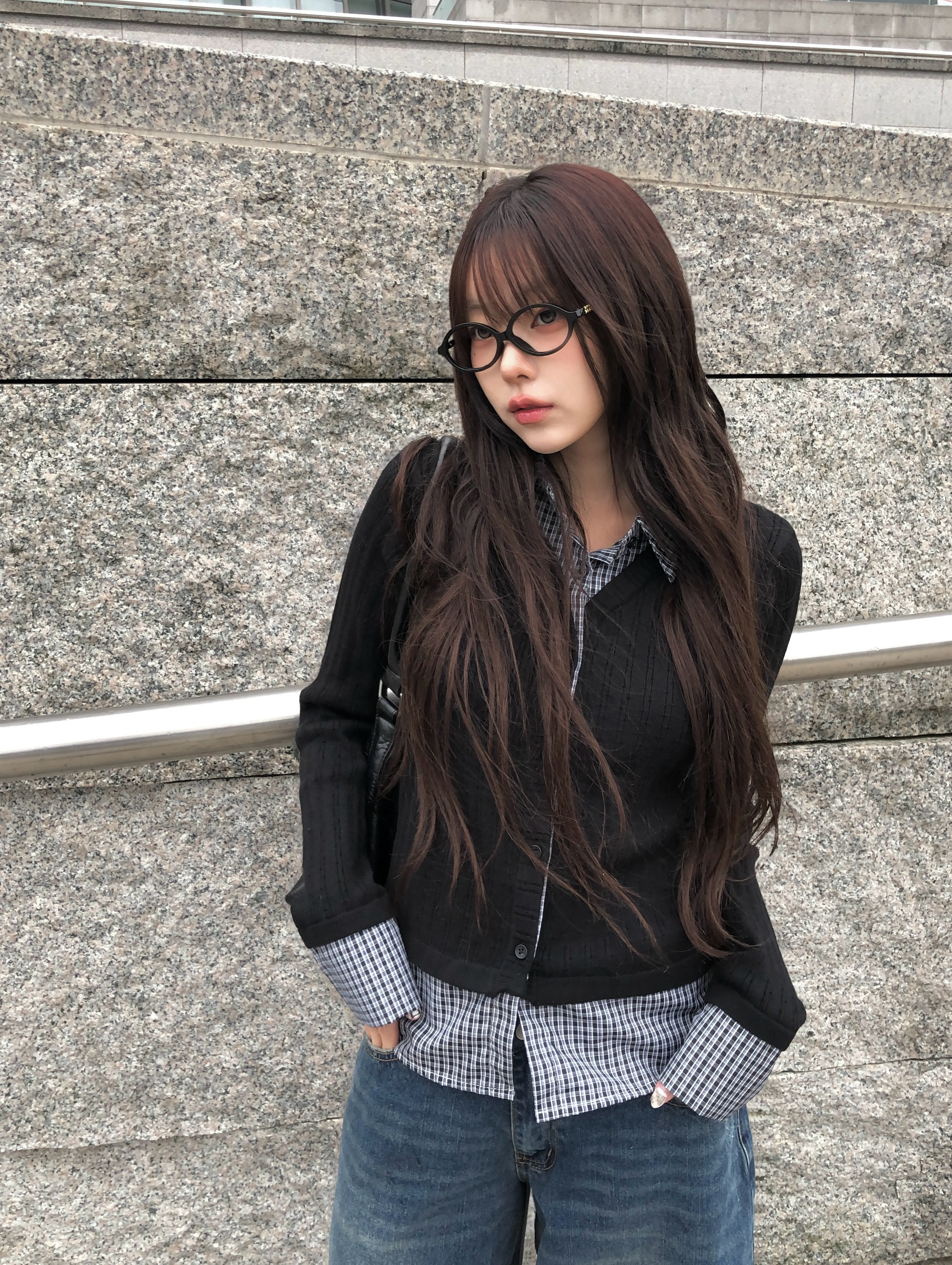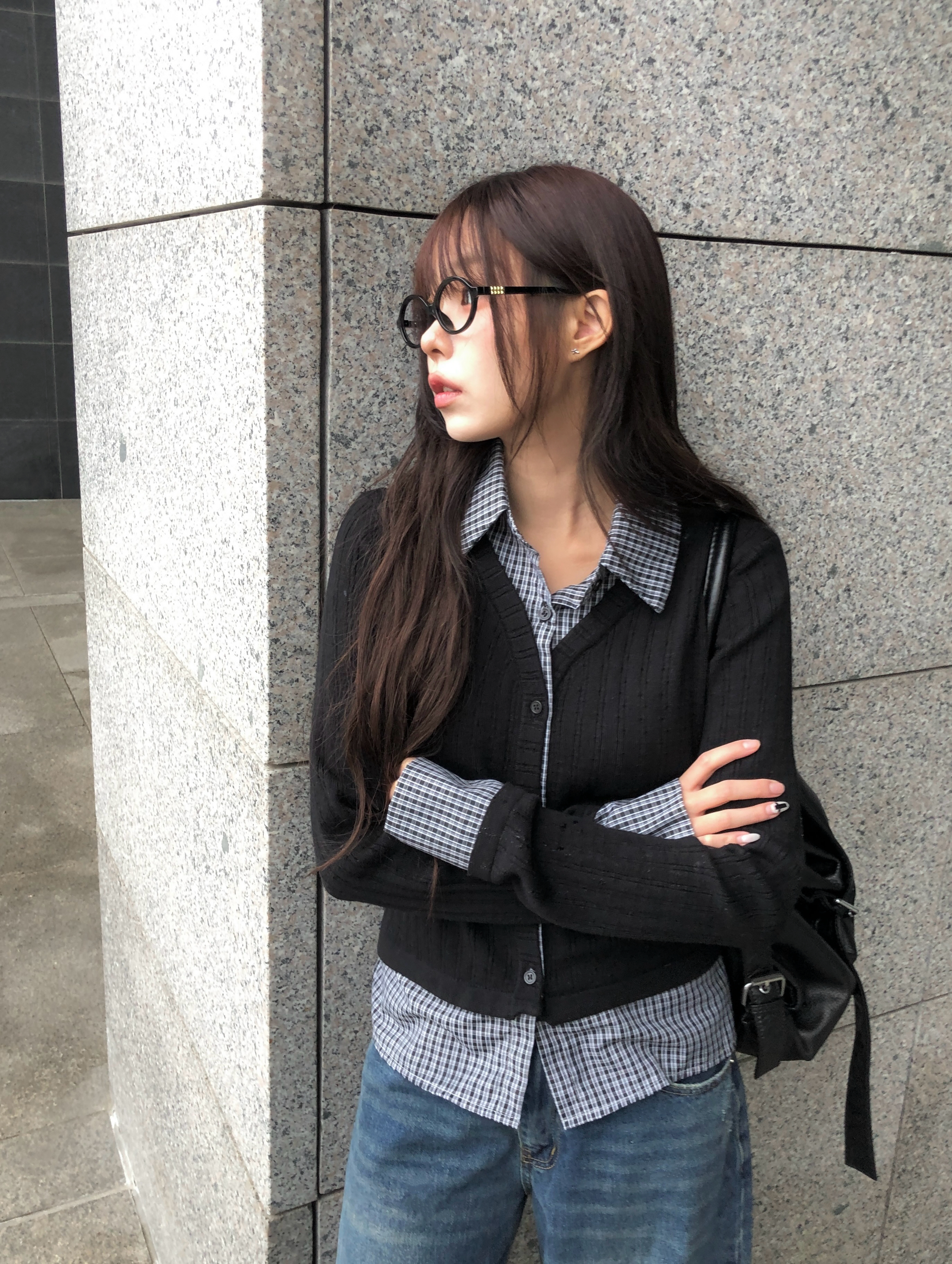 チェック柄シャツレイヤードニットリブカーディガン