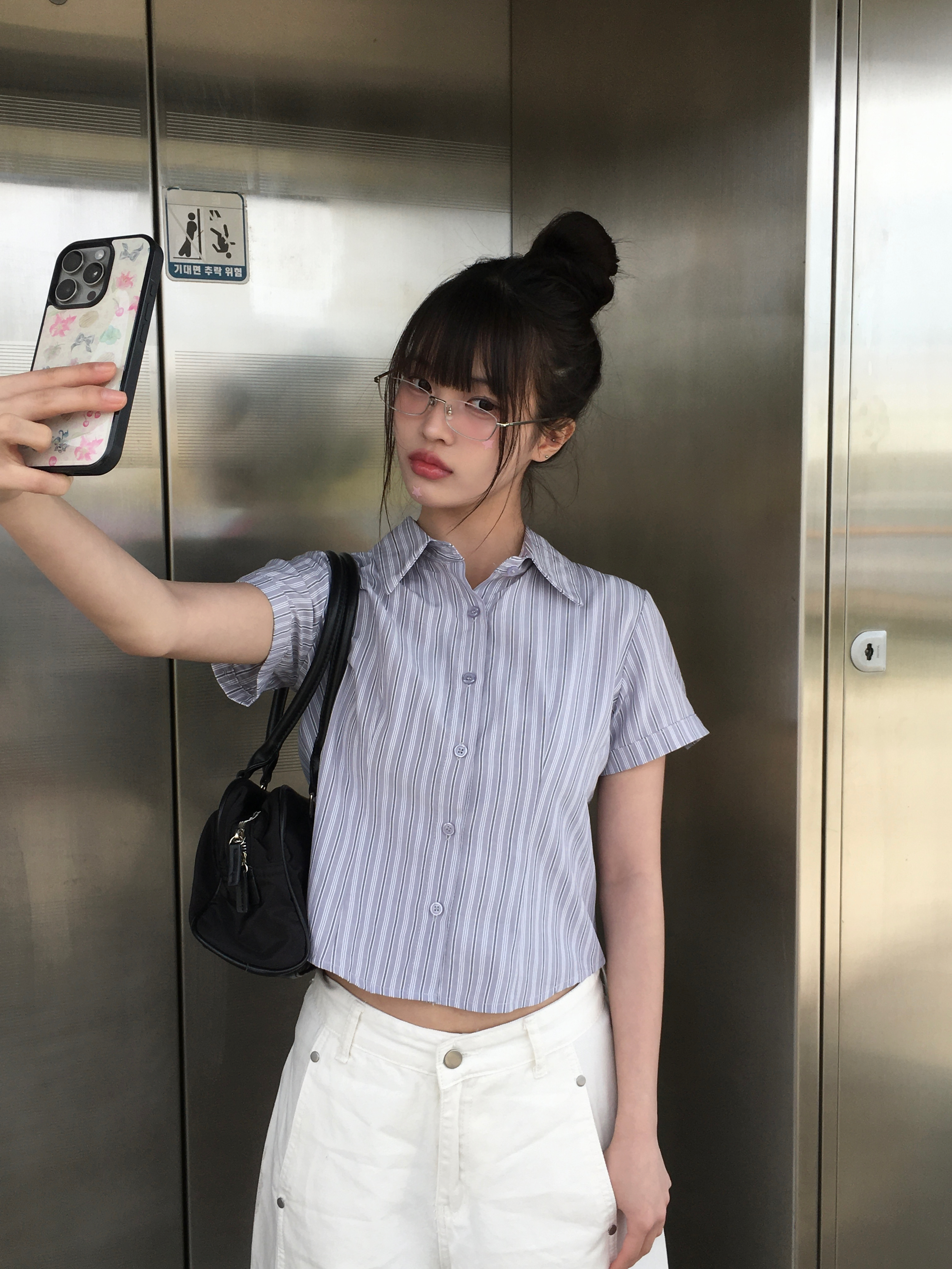 [夏/スリムフィット] スリムクロップドカフス半袖ストライプシャツ (3color)