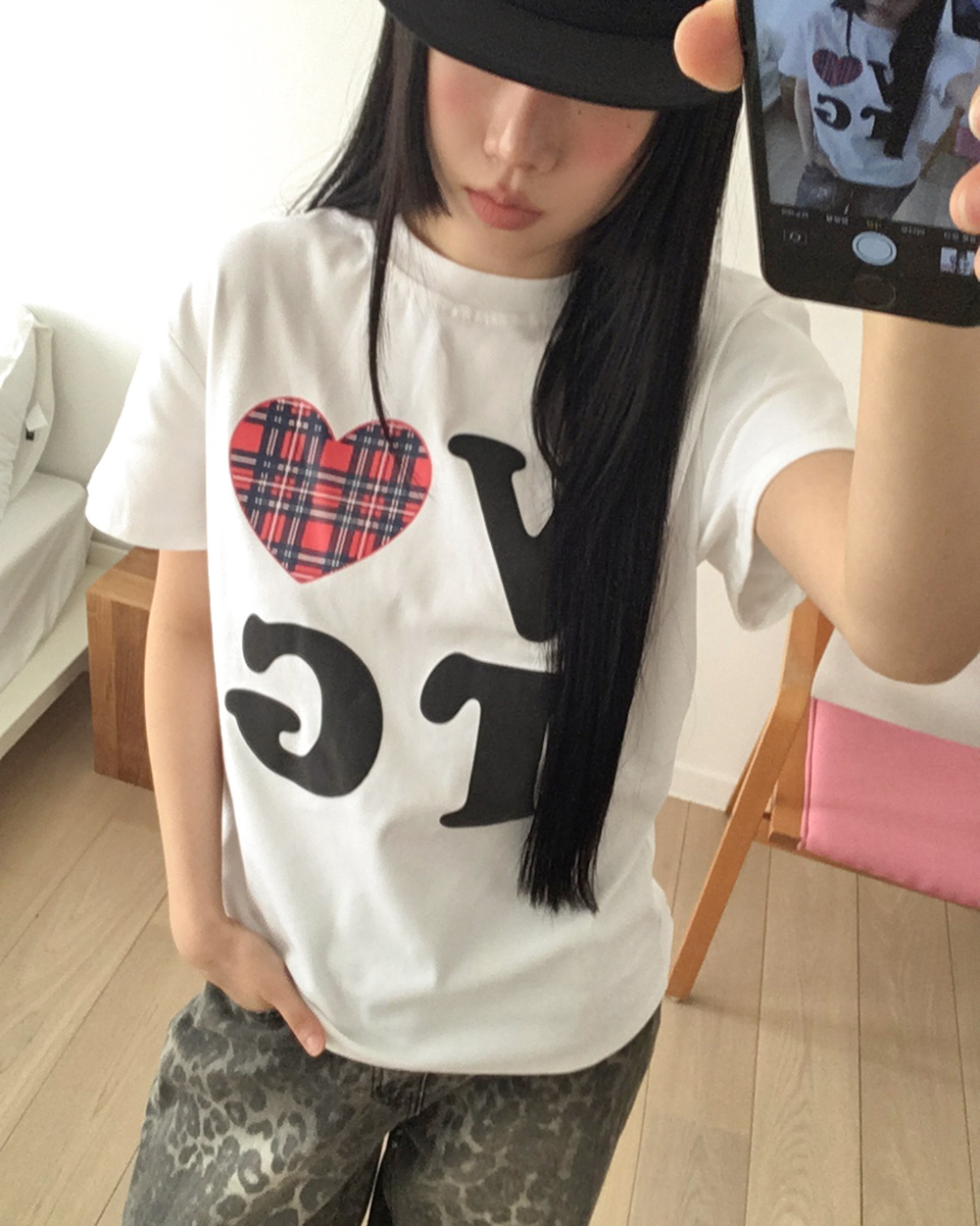 [original]ヴィンテージハートチェック半袖Tシャツ