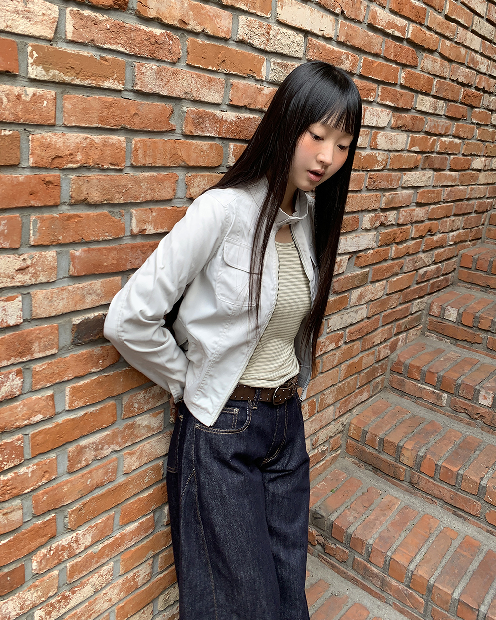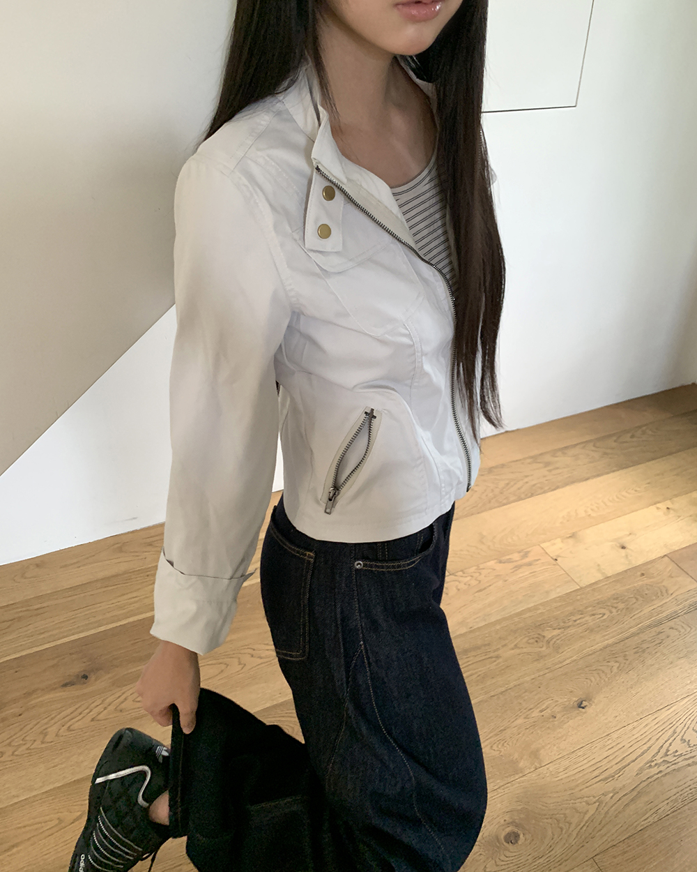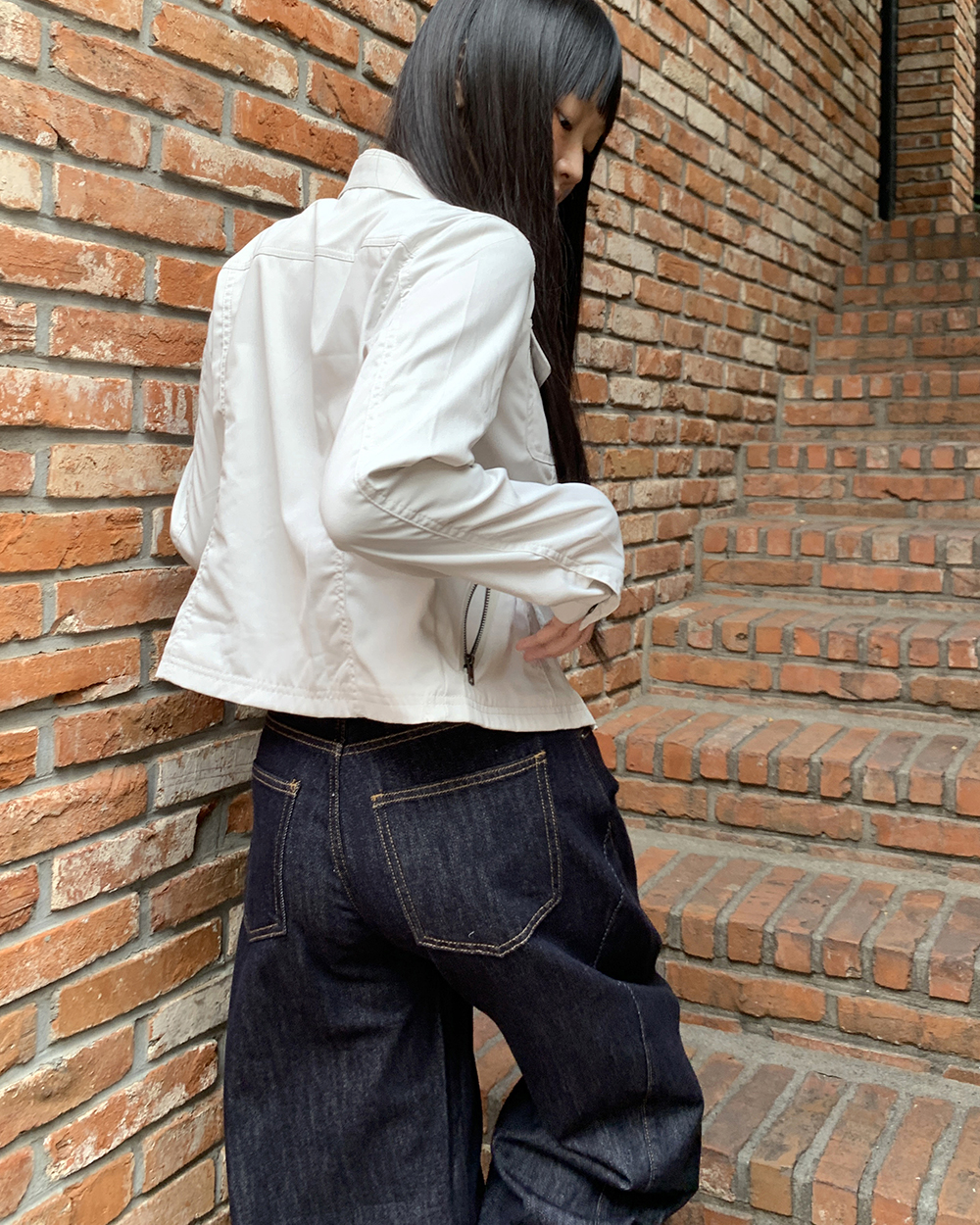 ノーカラーストラップツーボタンジャケット