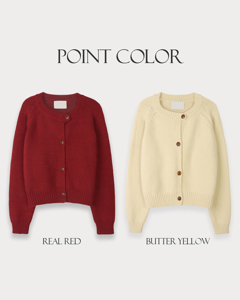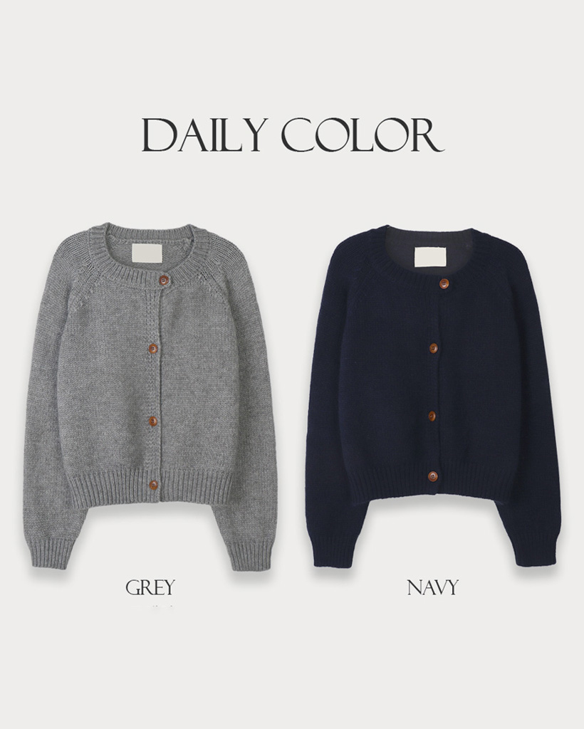 厚手ラウンドネック トーンダウンカラー ニットカーディガン
