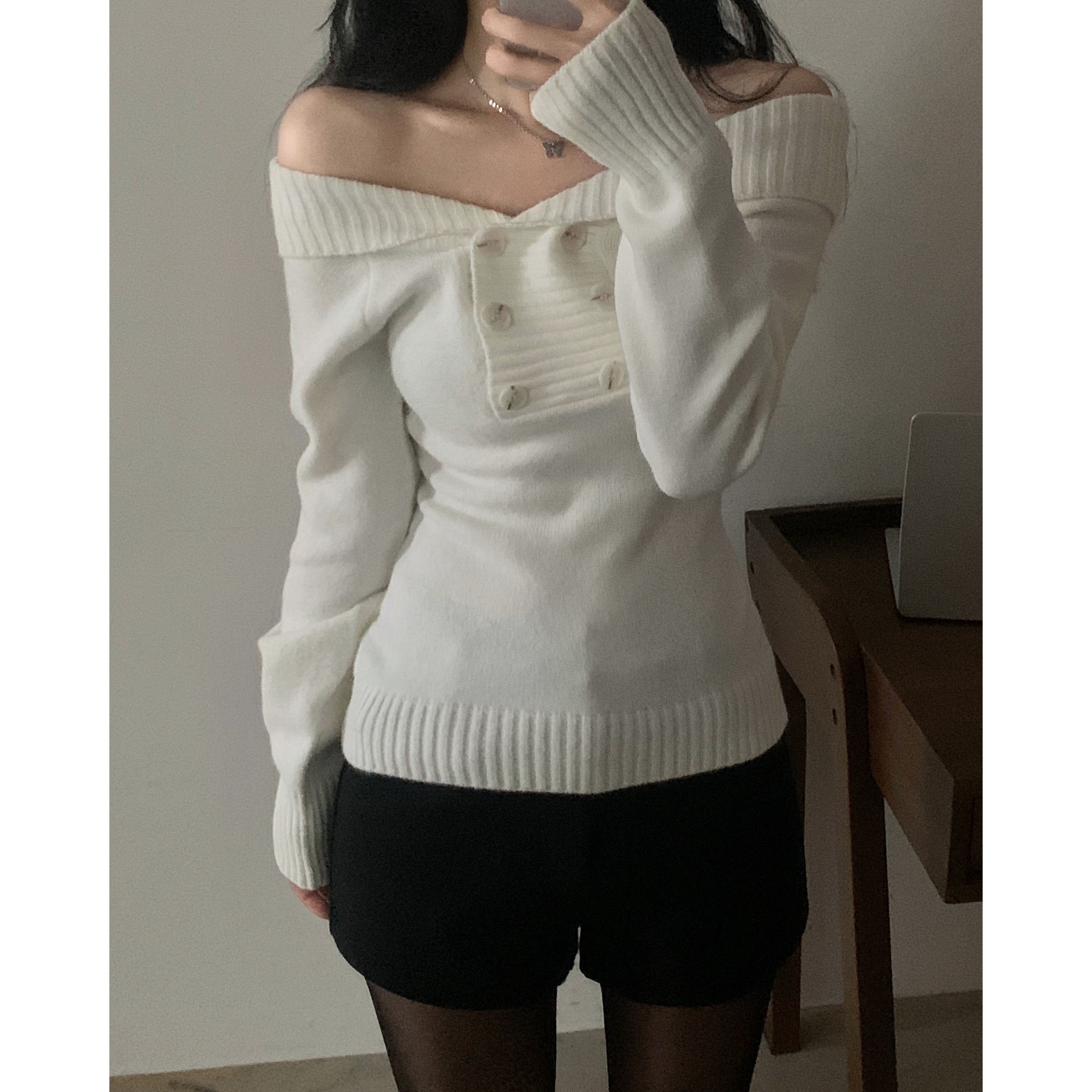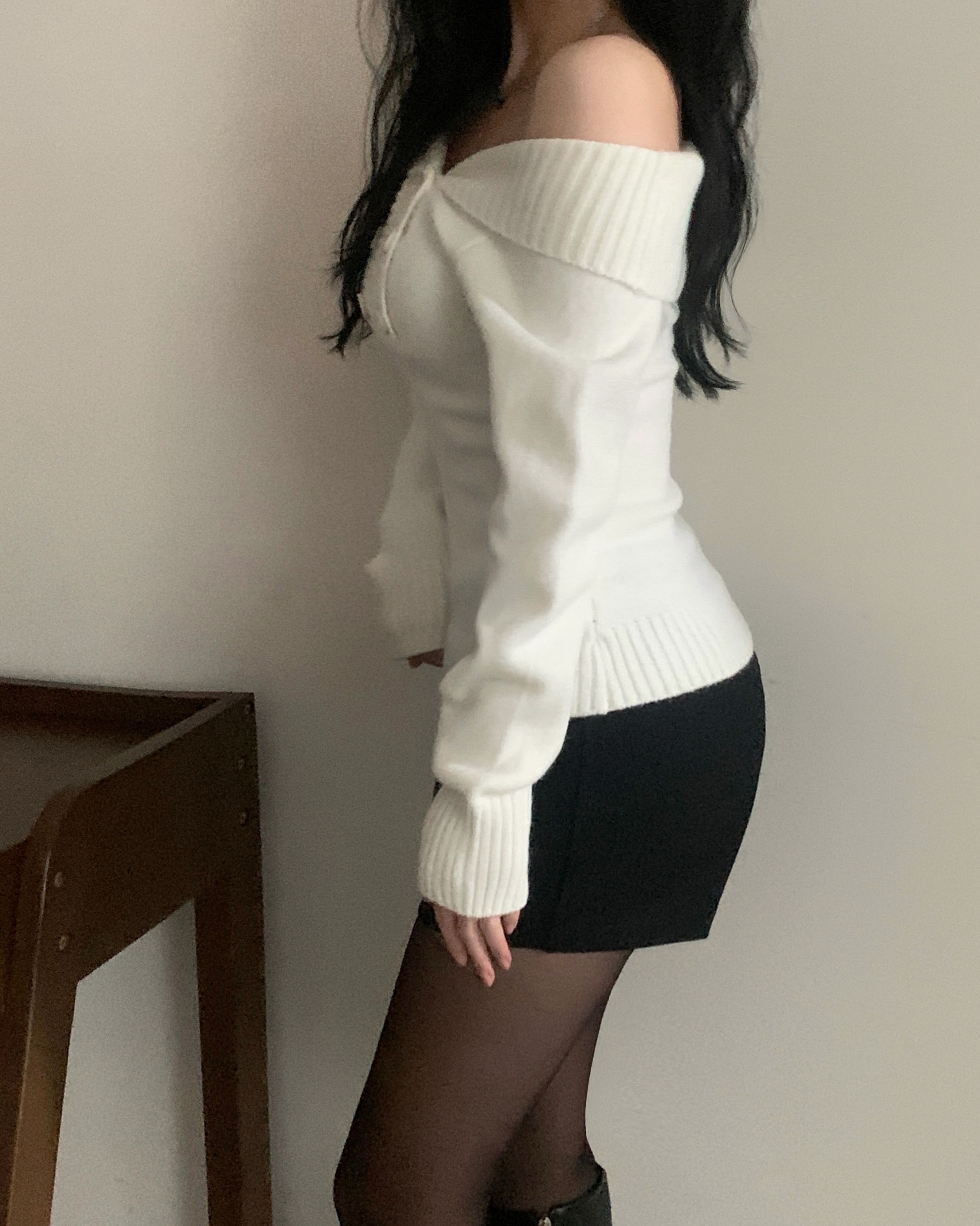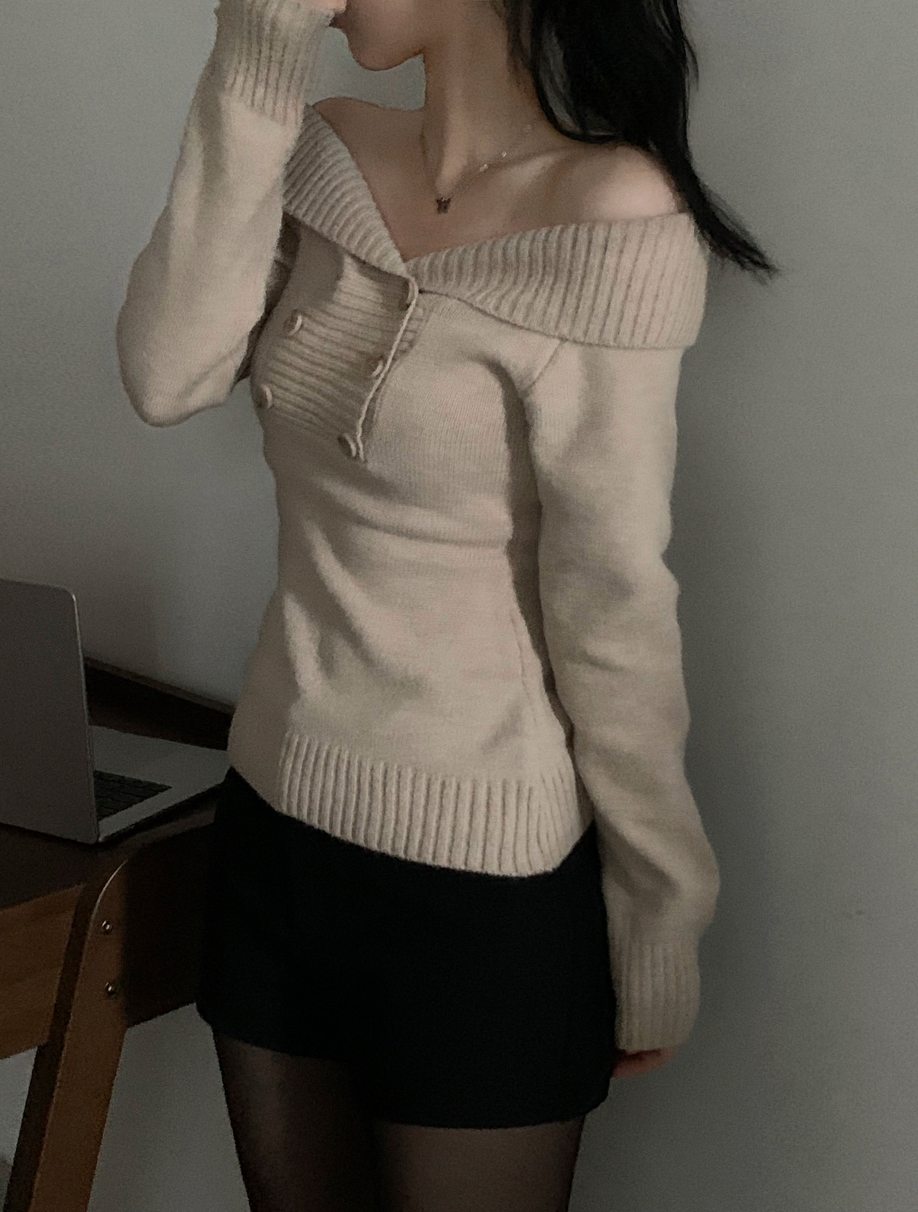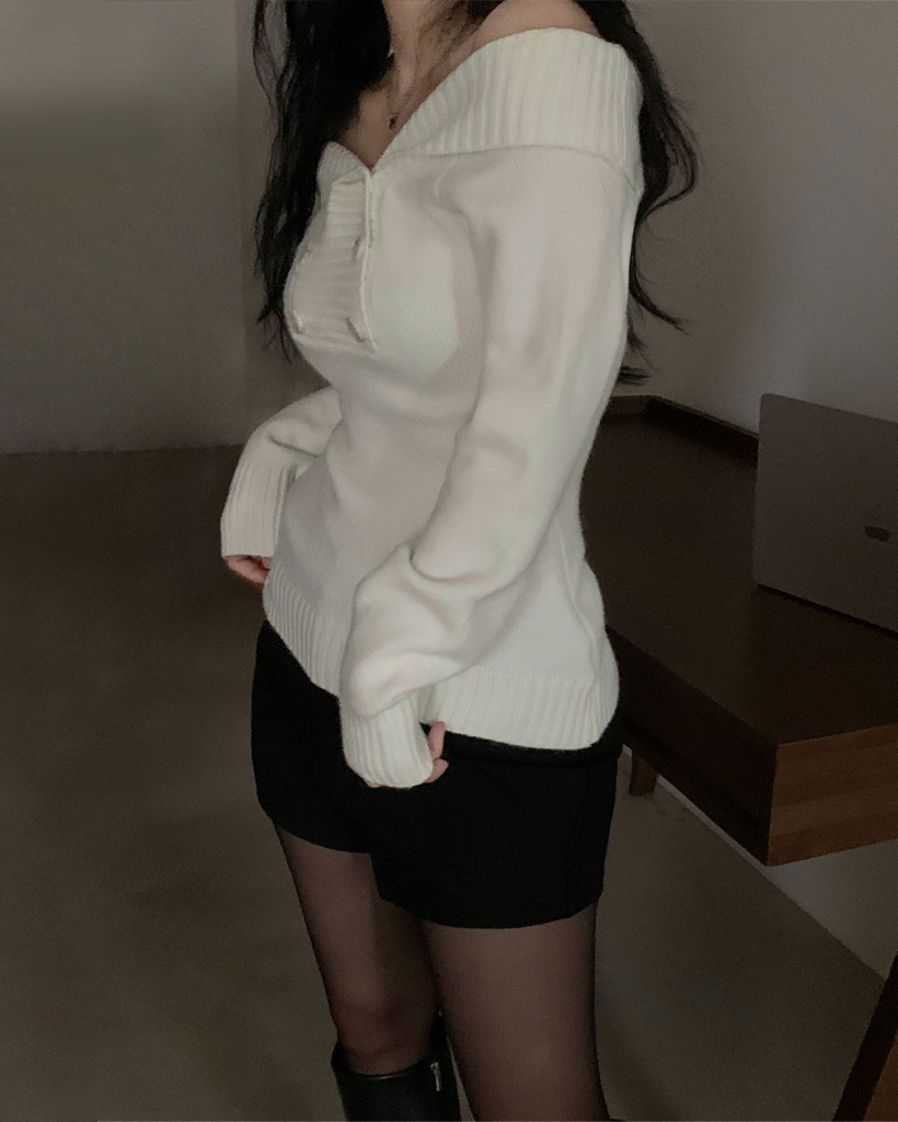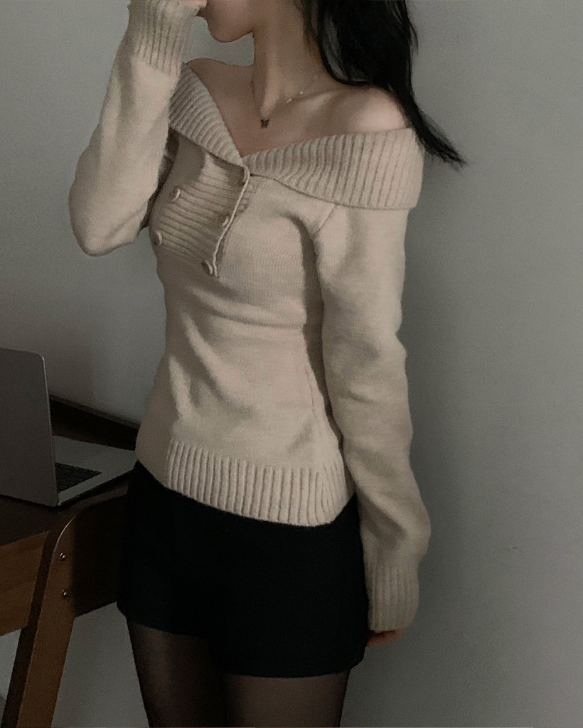 (3color) オフショルスリムニット