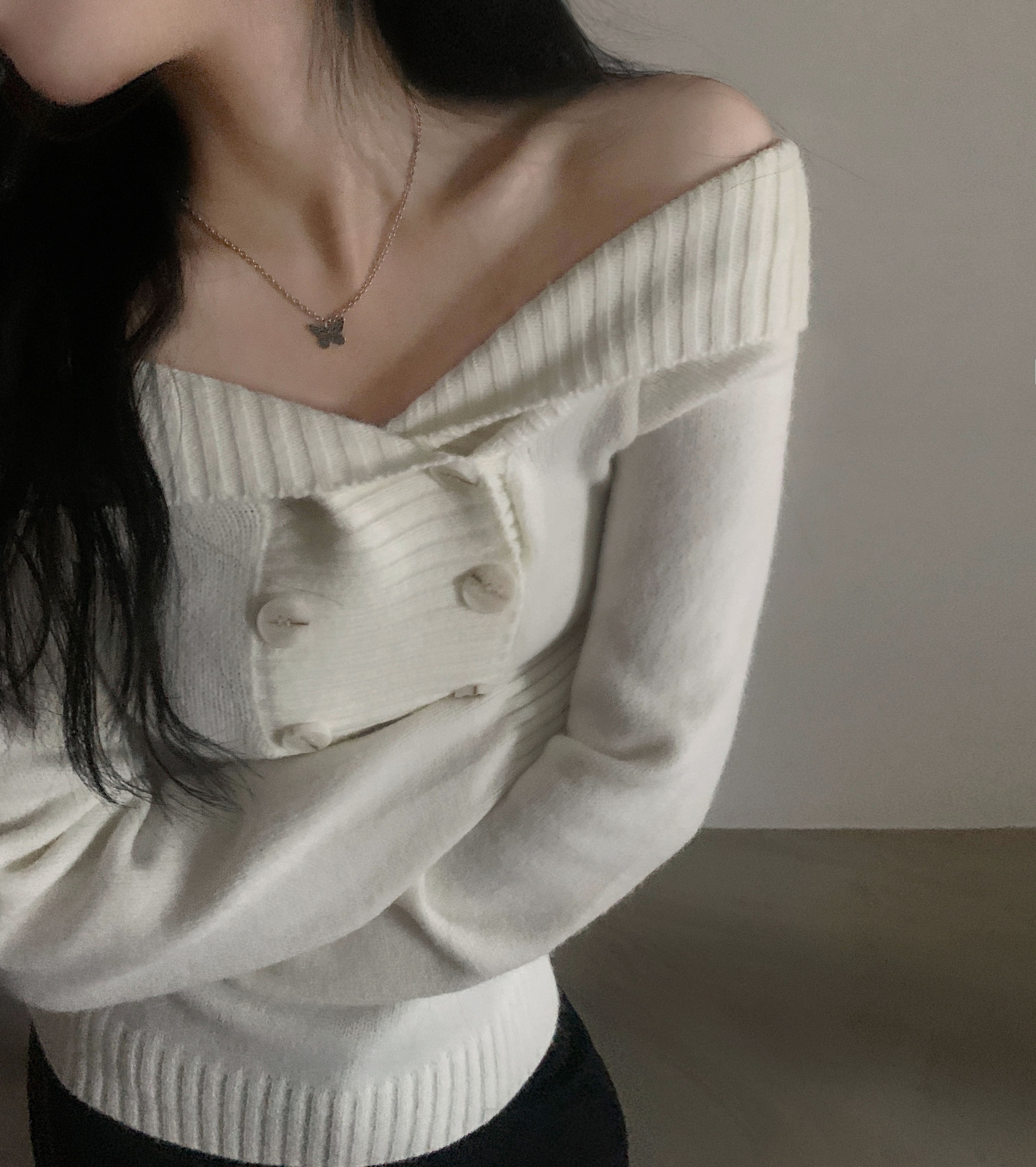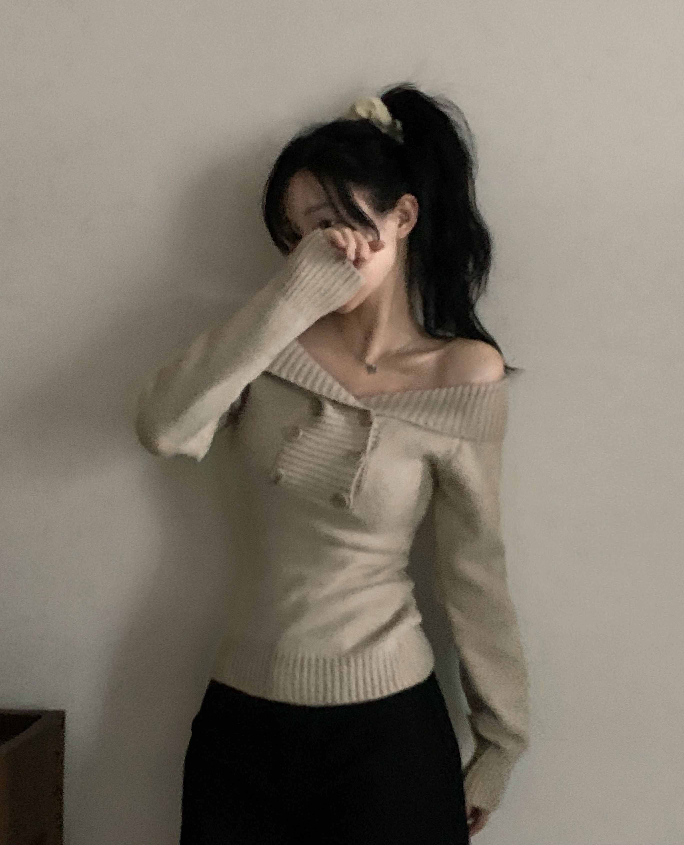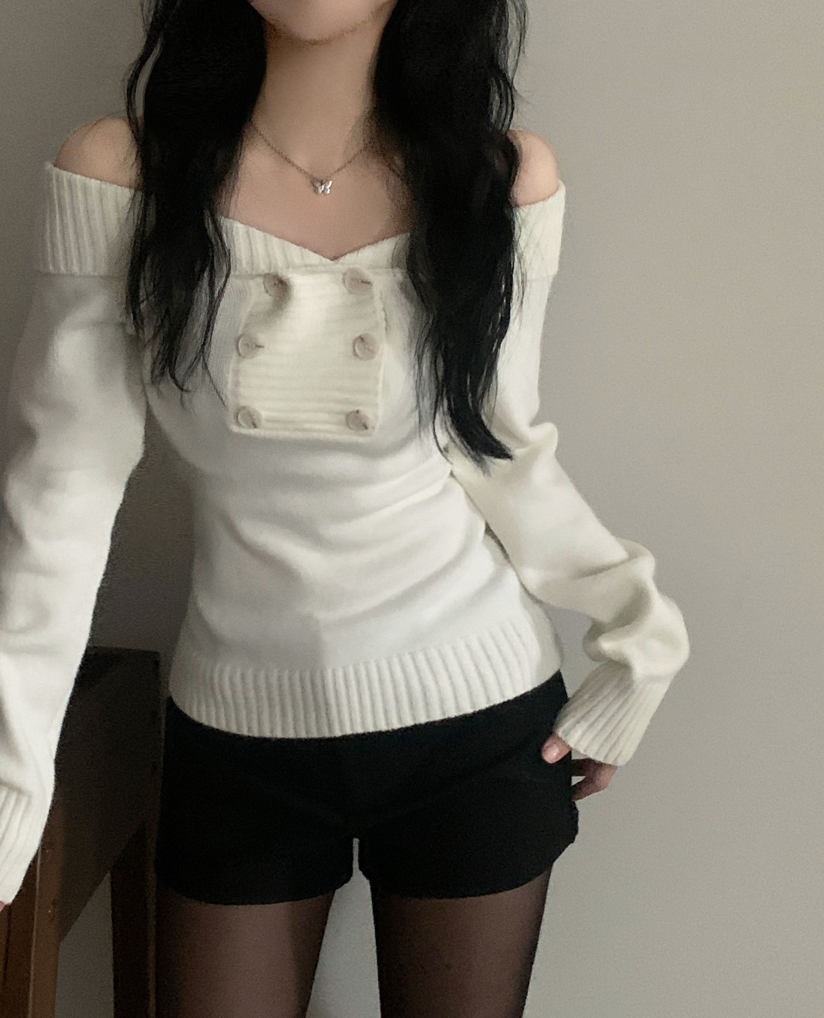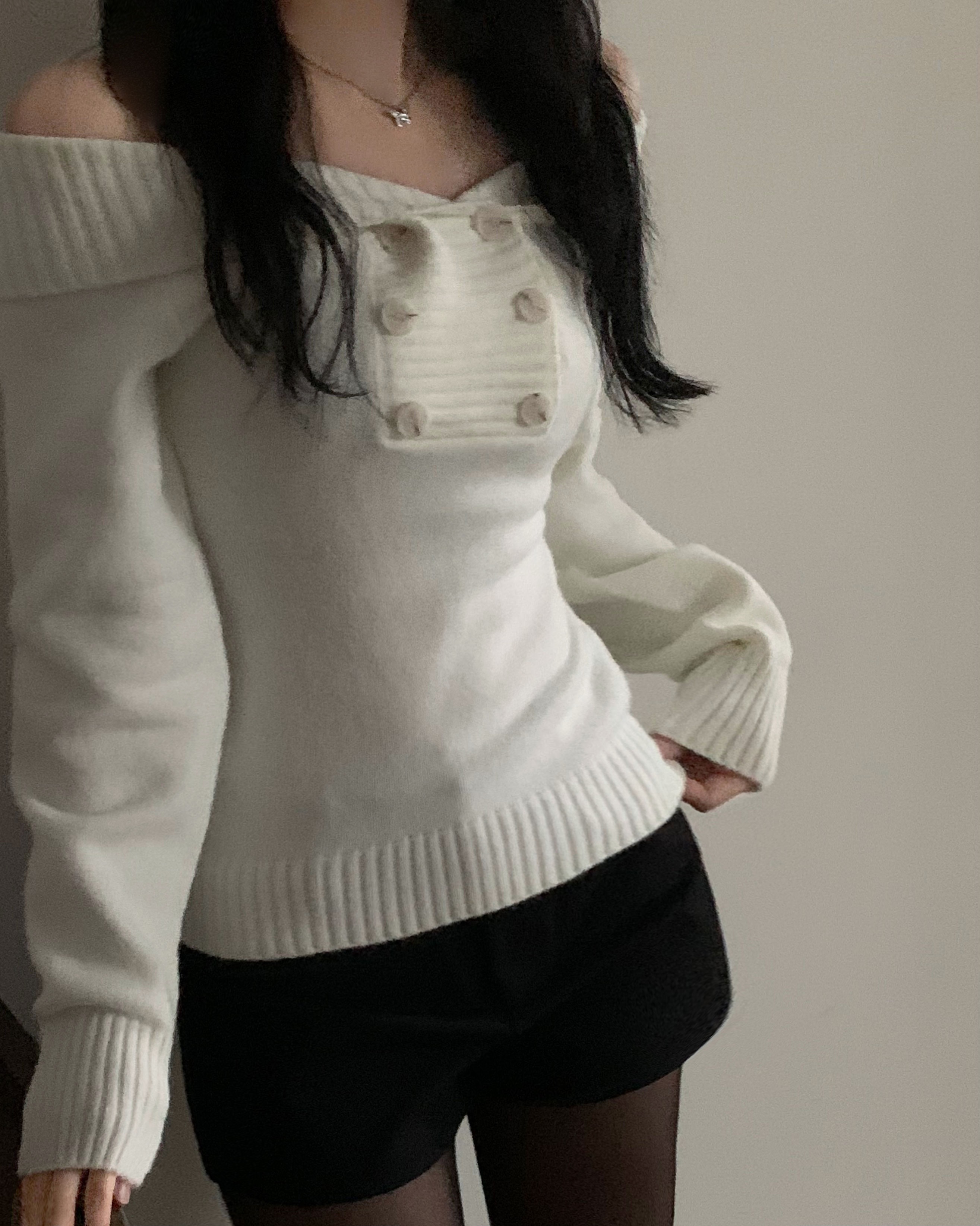 (3color) オフショルスリムニット