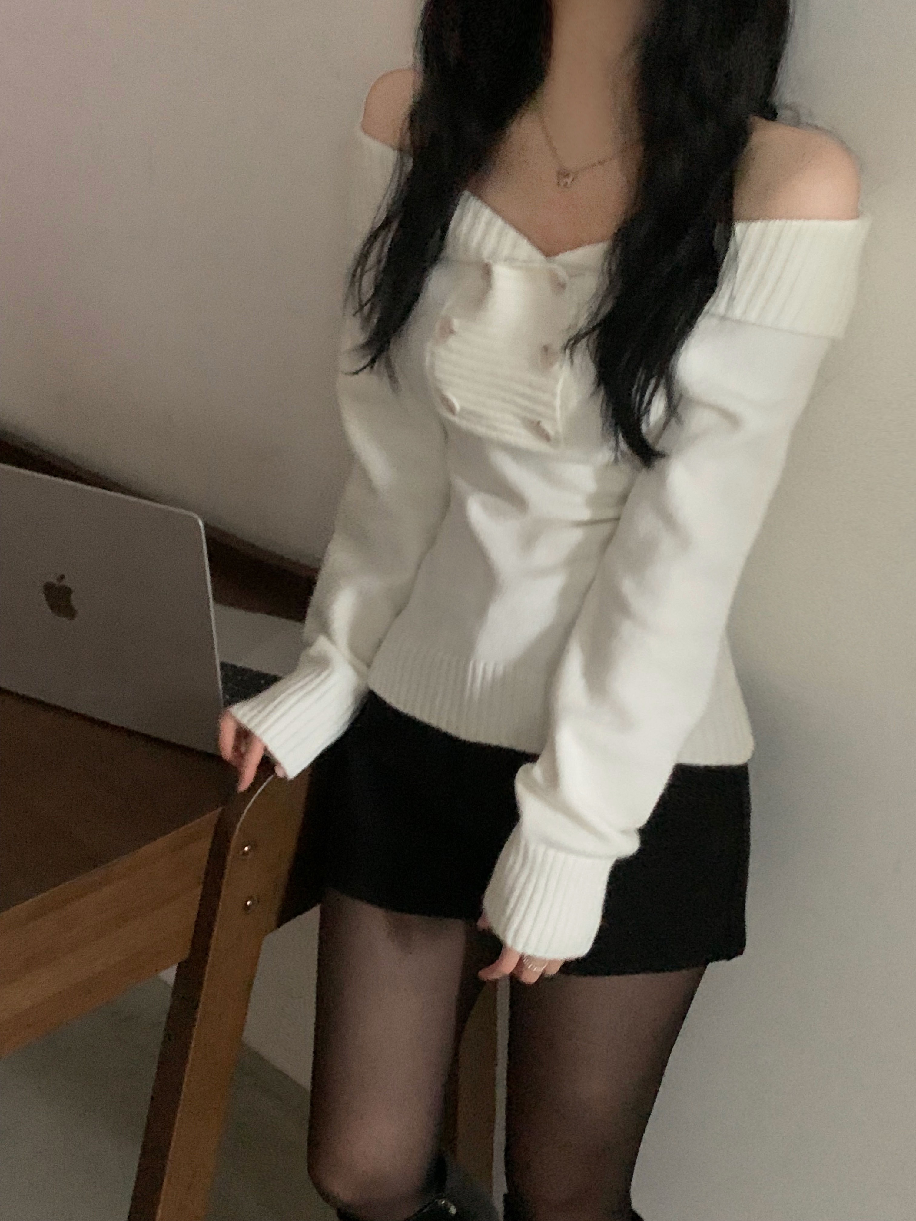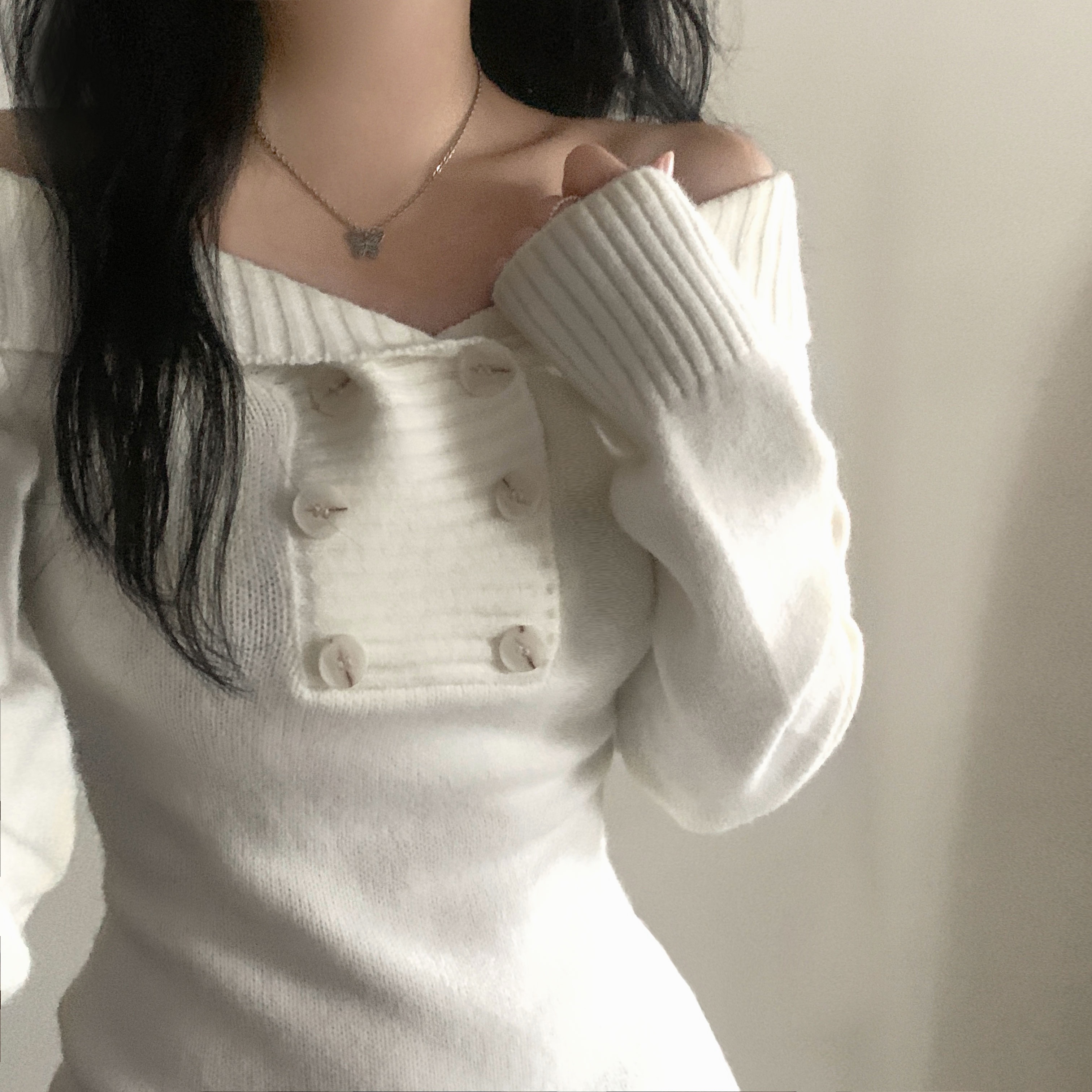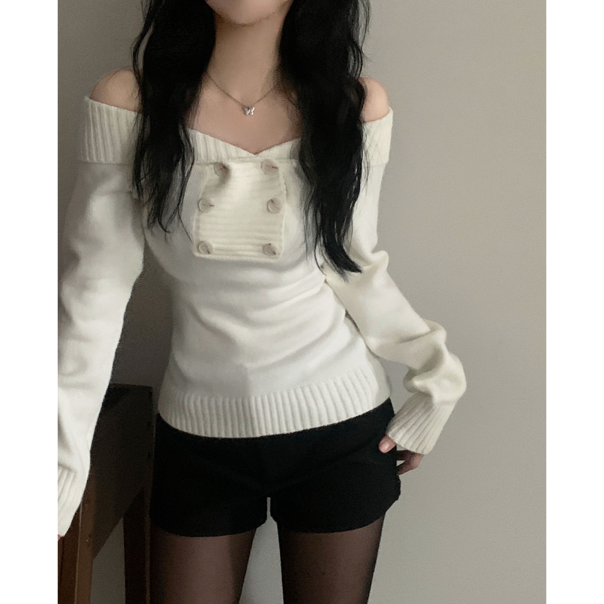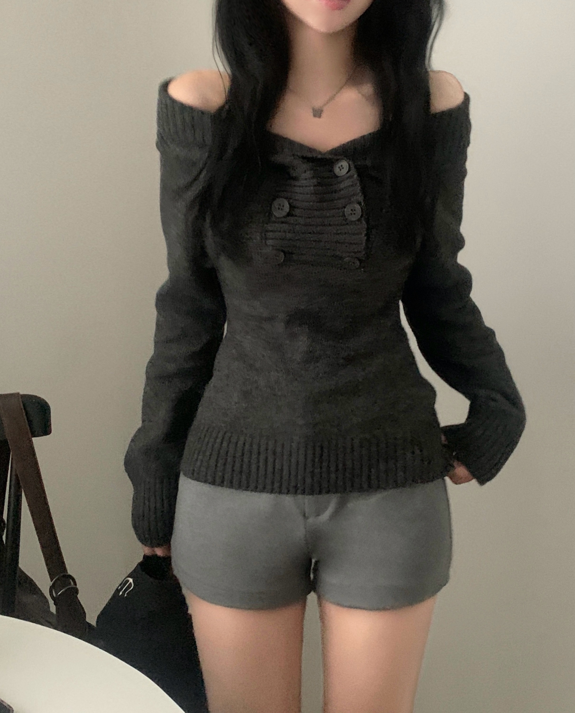 (3color) オフショルスリムニット