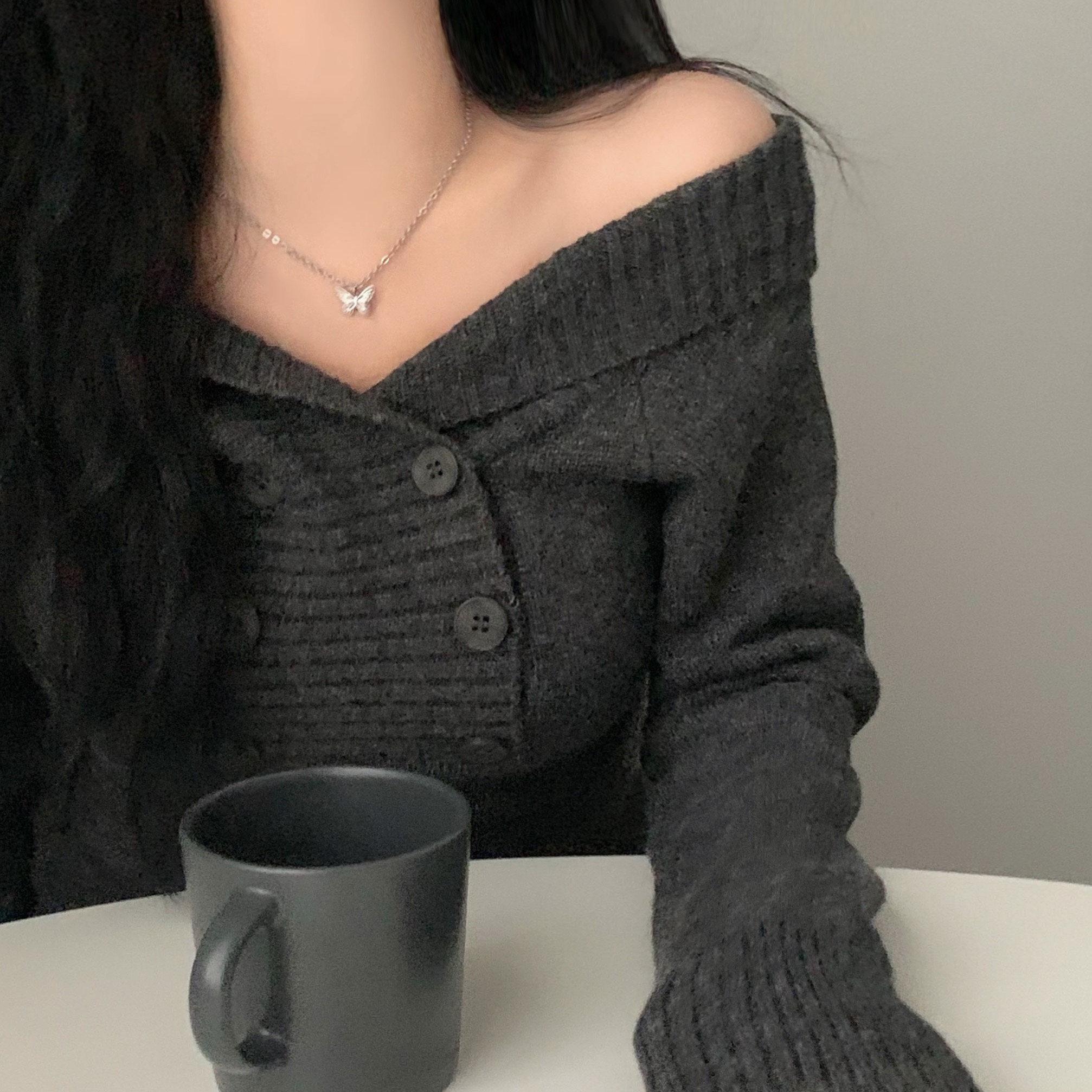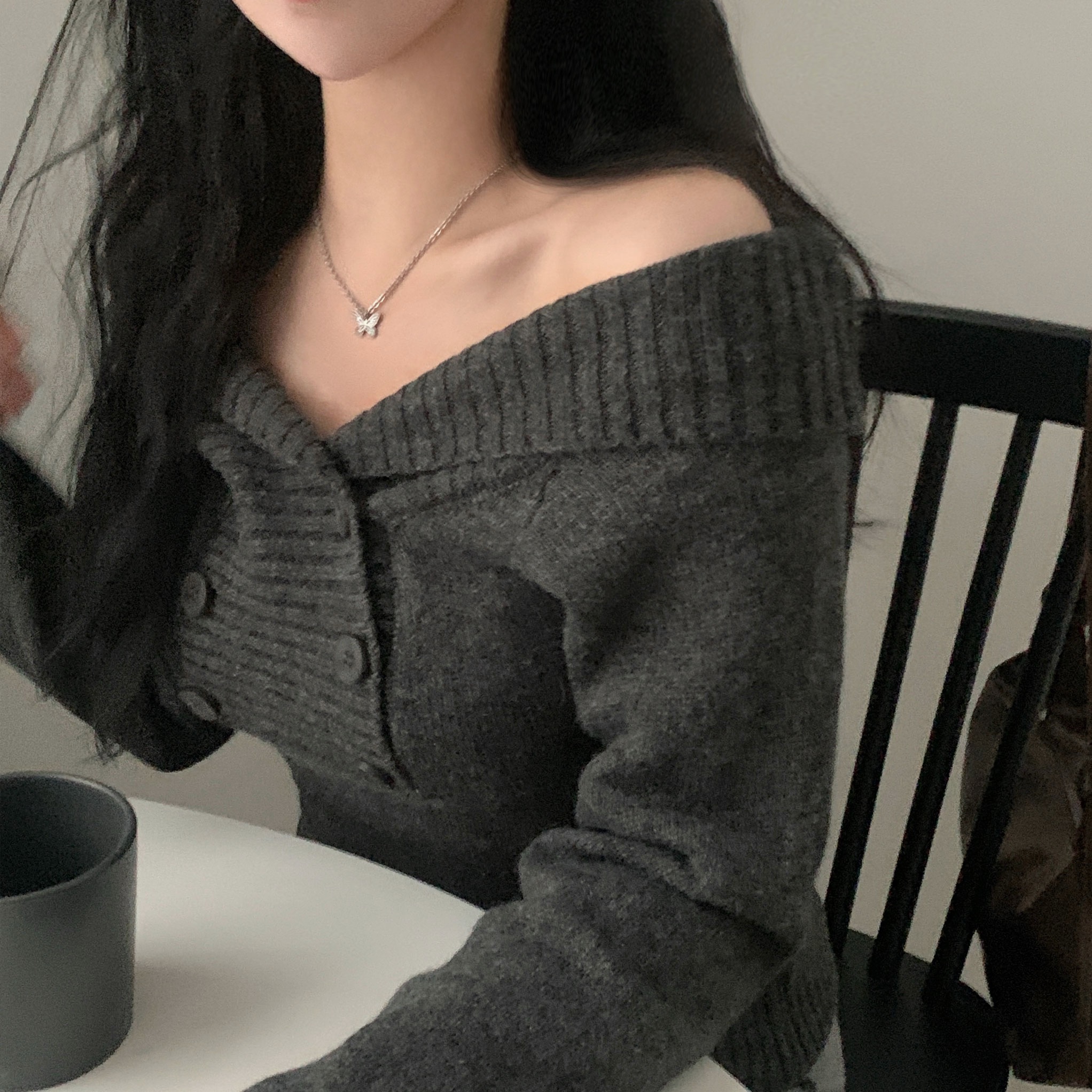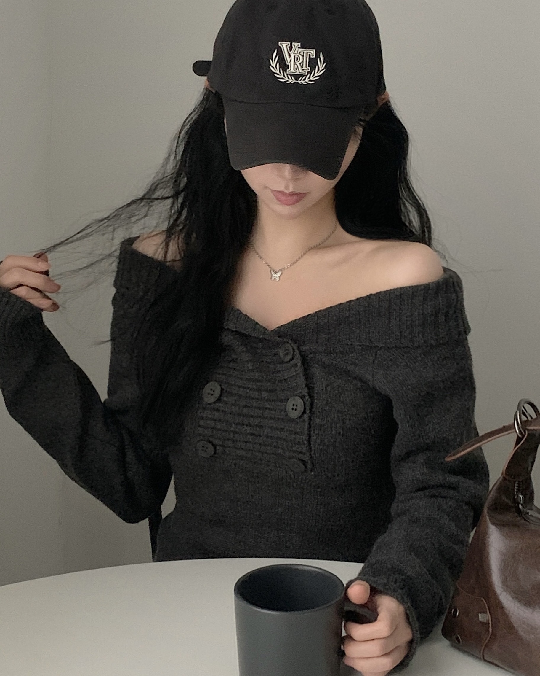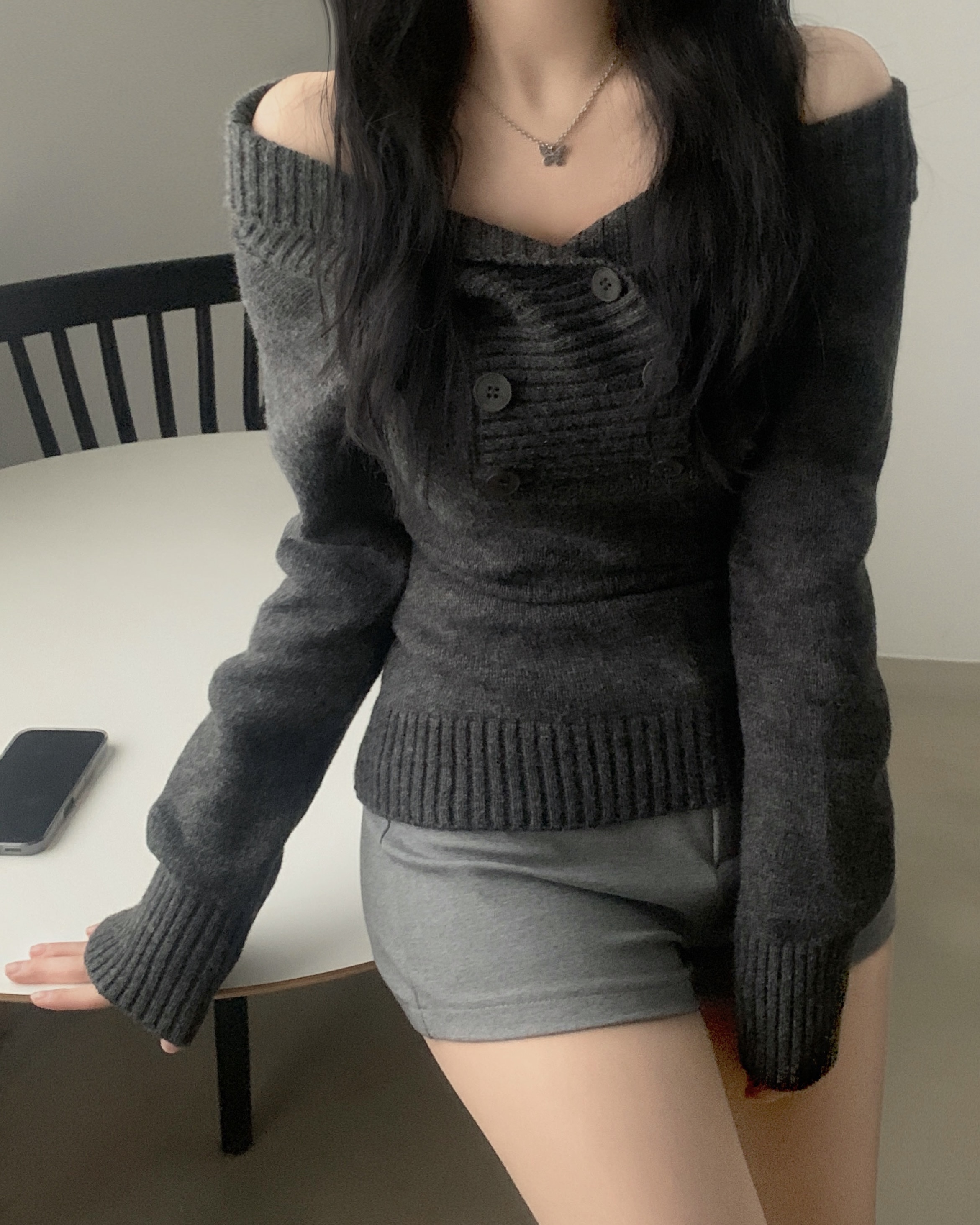 (3color) オフショルスリムニット