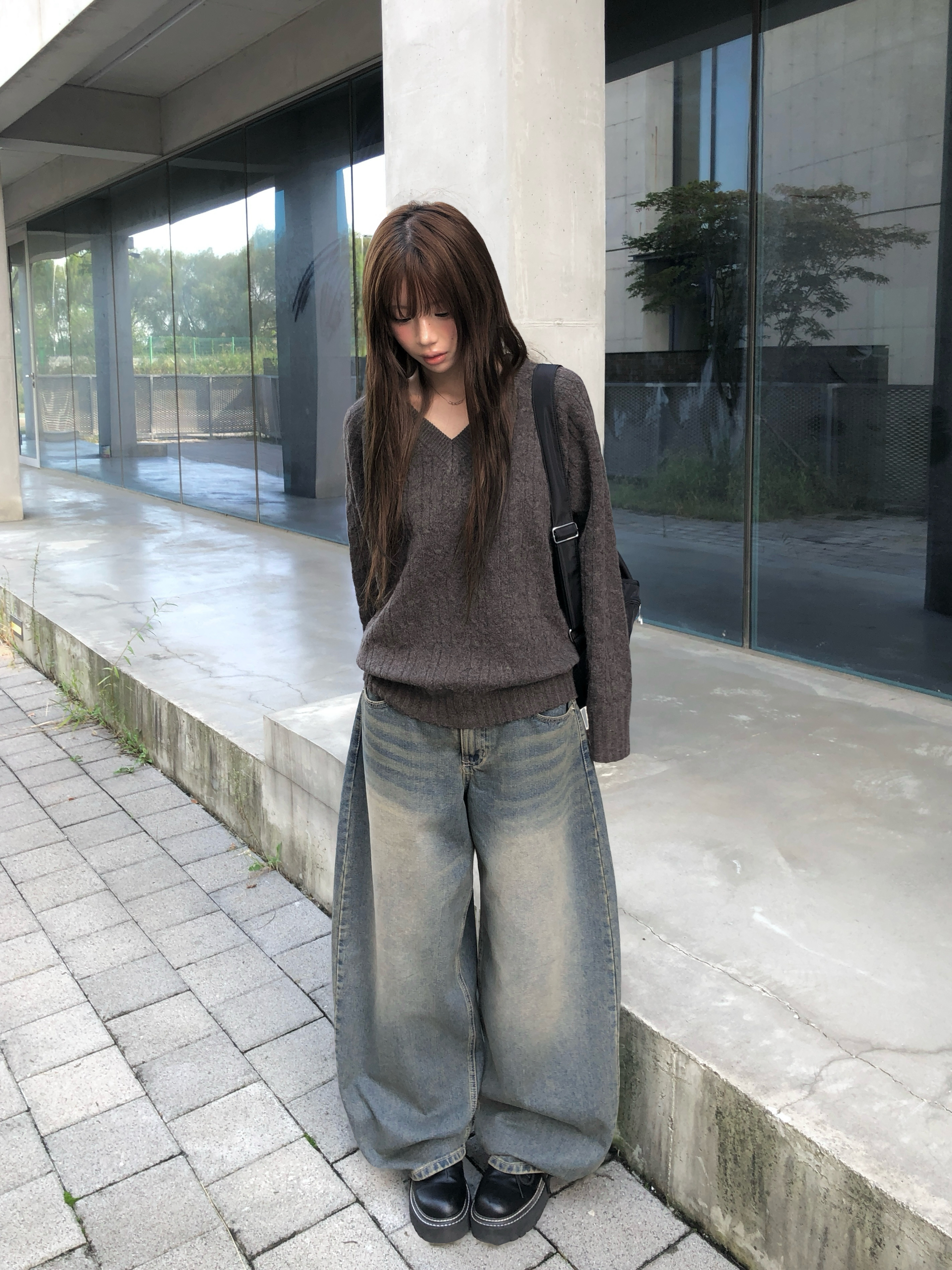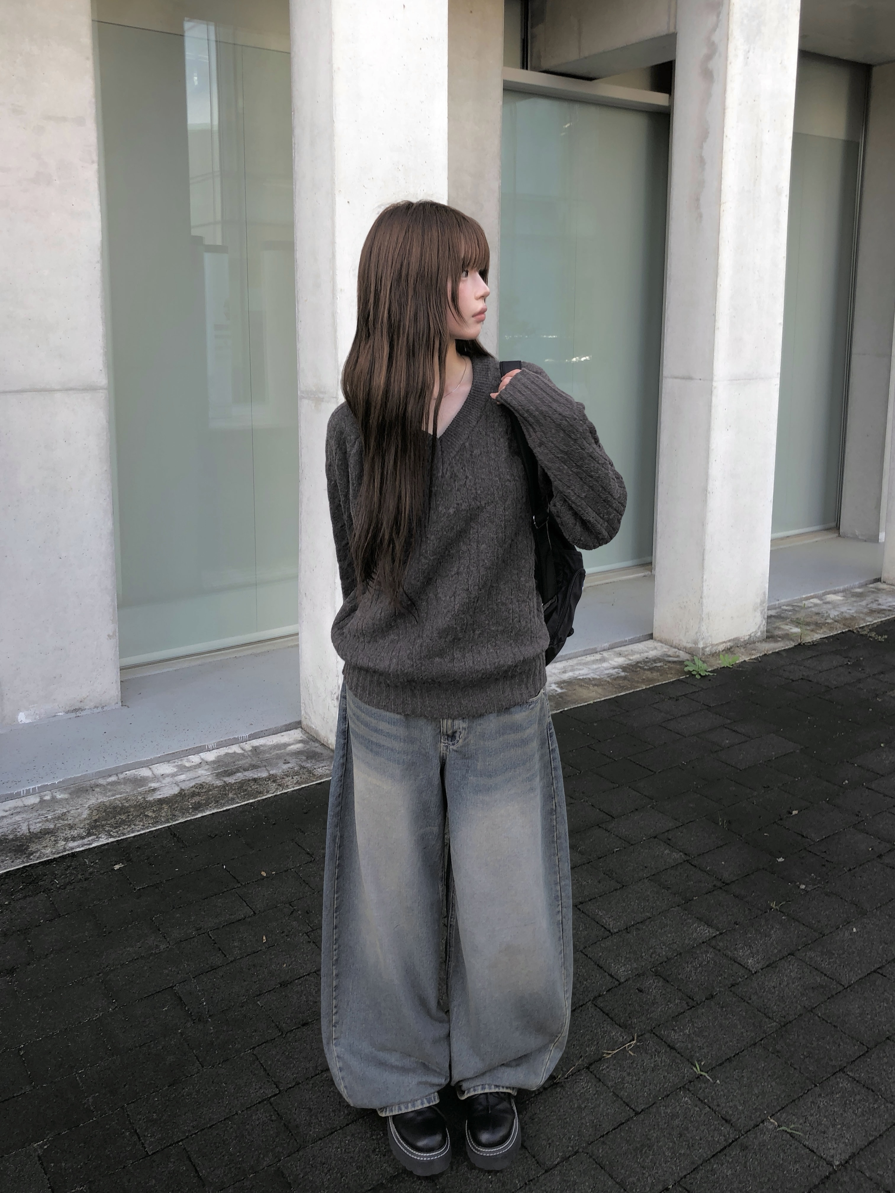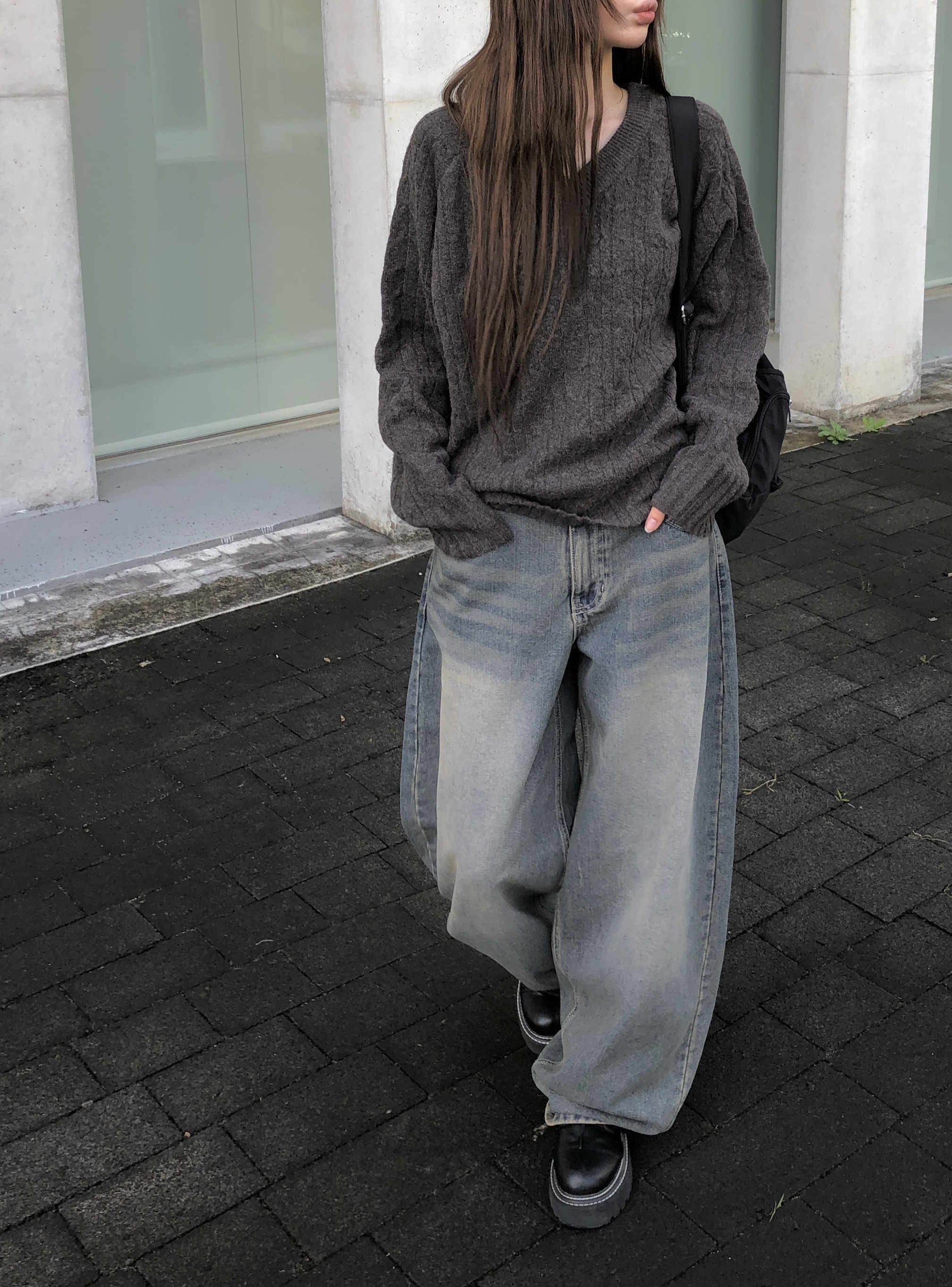 ビンテージウォッシングバルーンワイドデニムパンツ