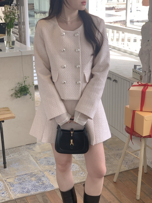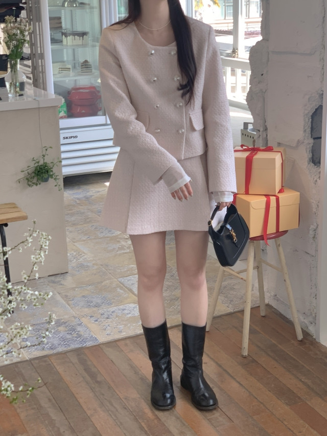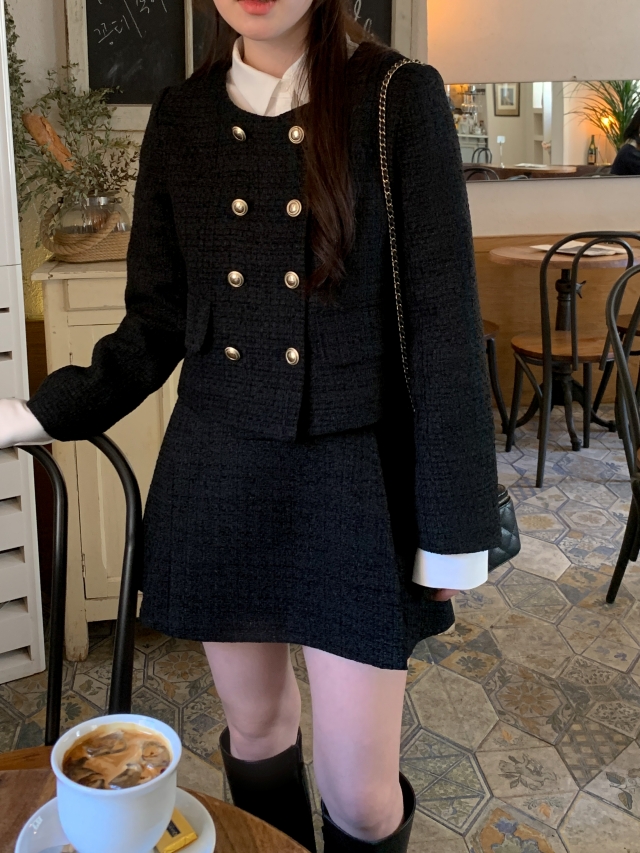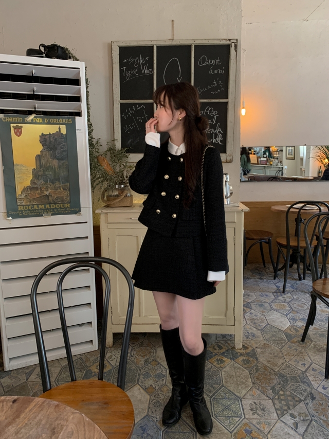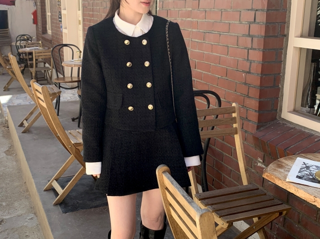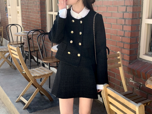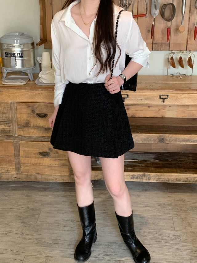 [original] Aラインタック入りミニツイードスカート(2c)