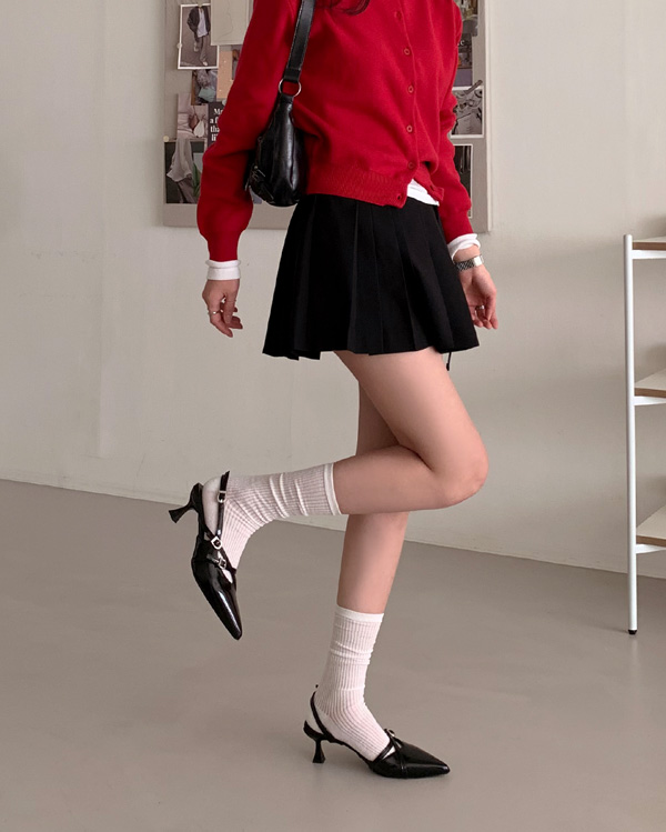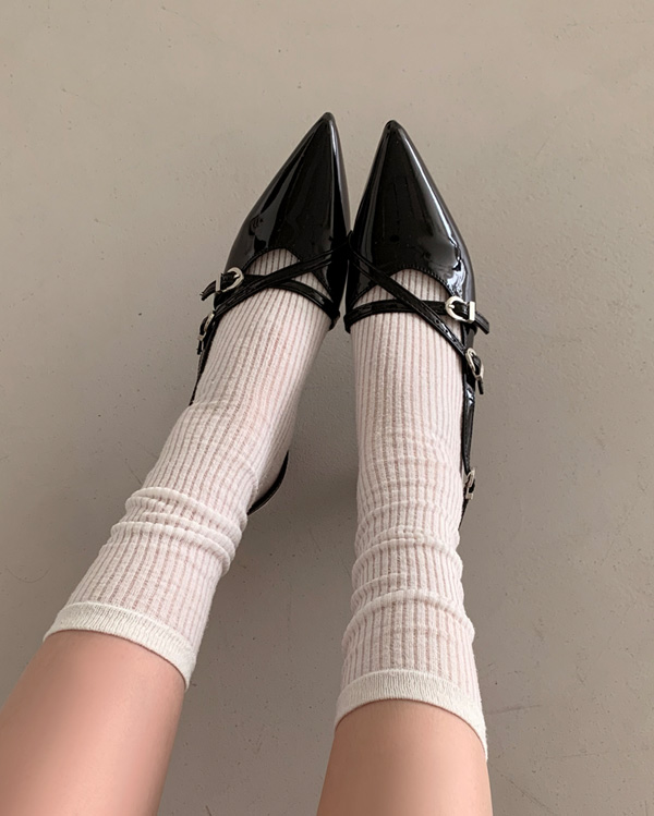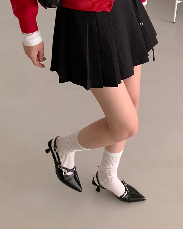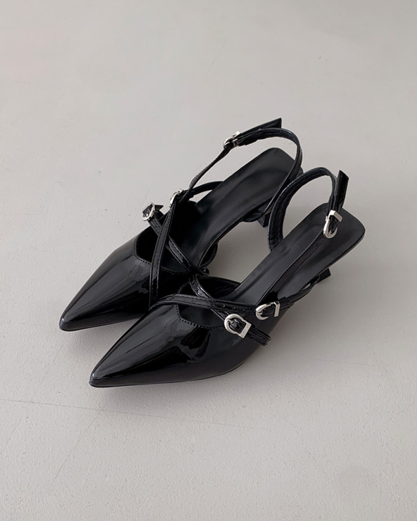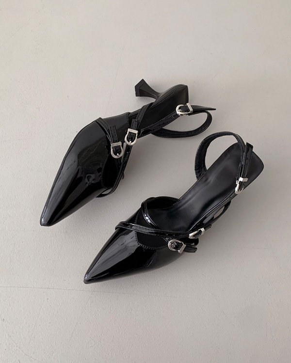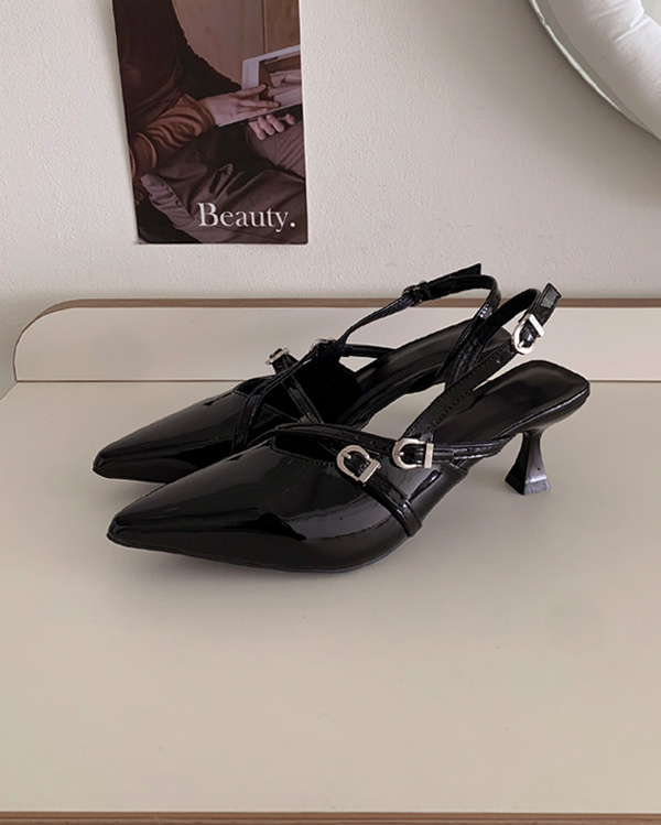 エナメル バックル ポインテッドトゥ メリージェーン スリングバック パンプス
