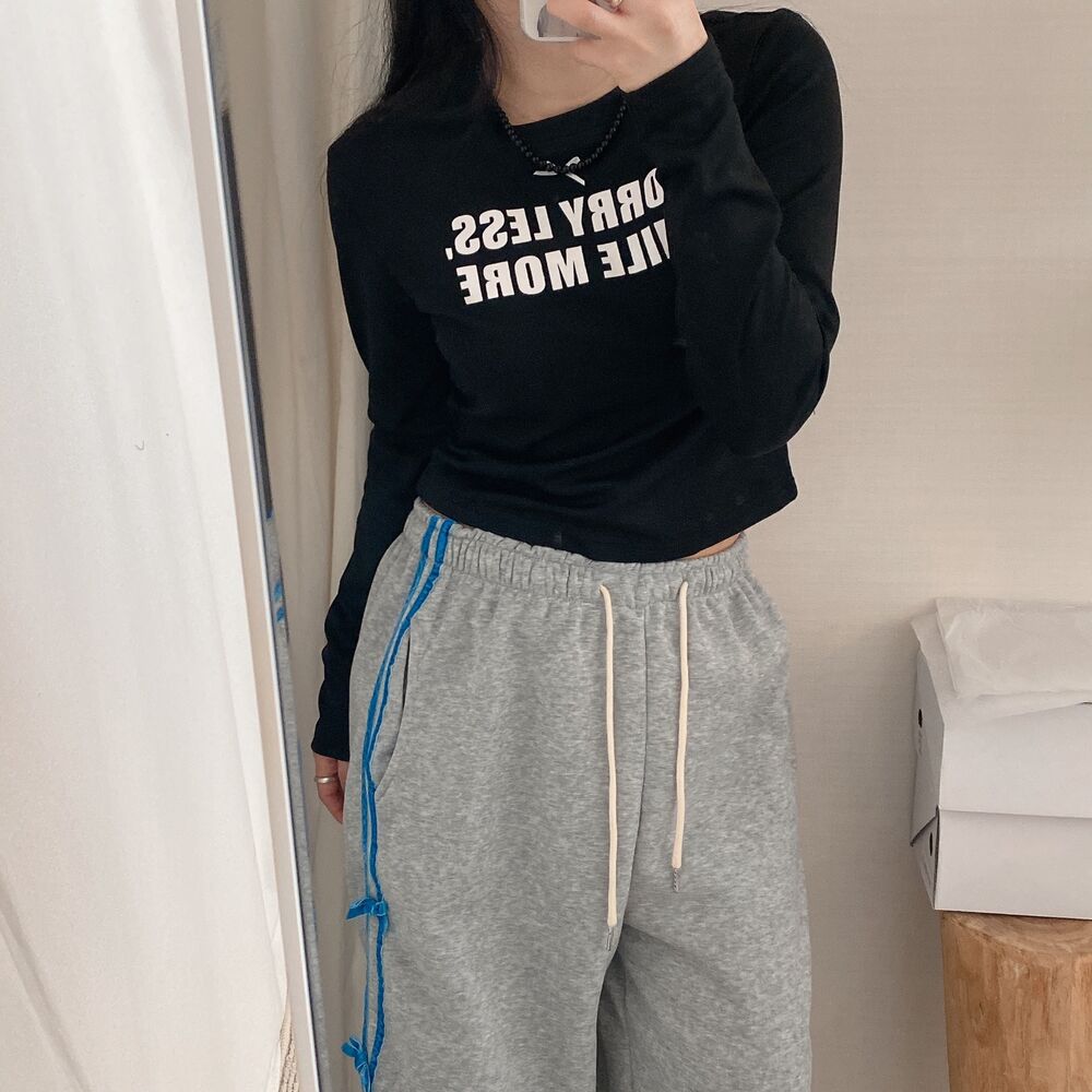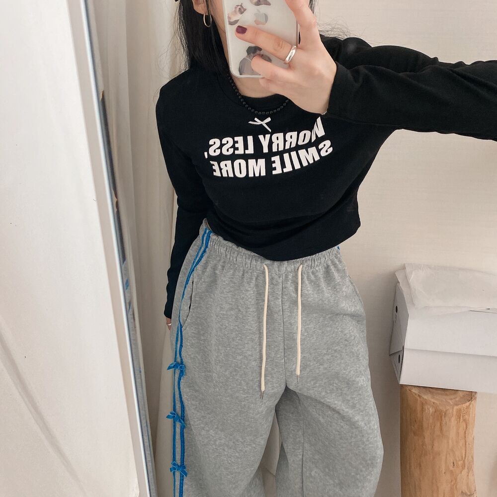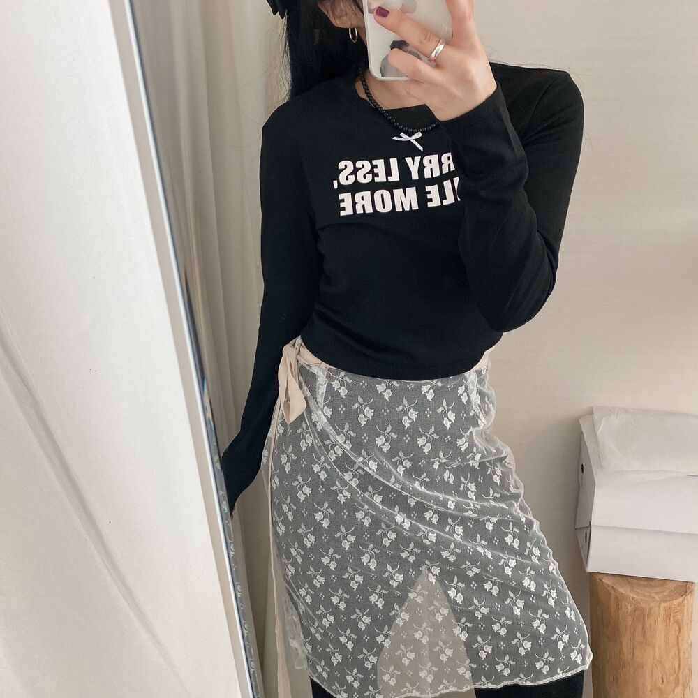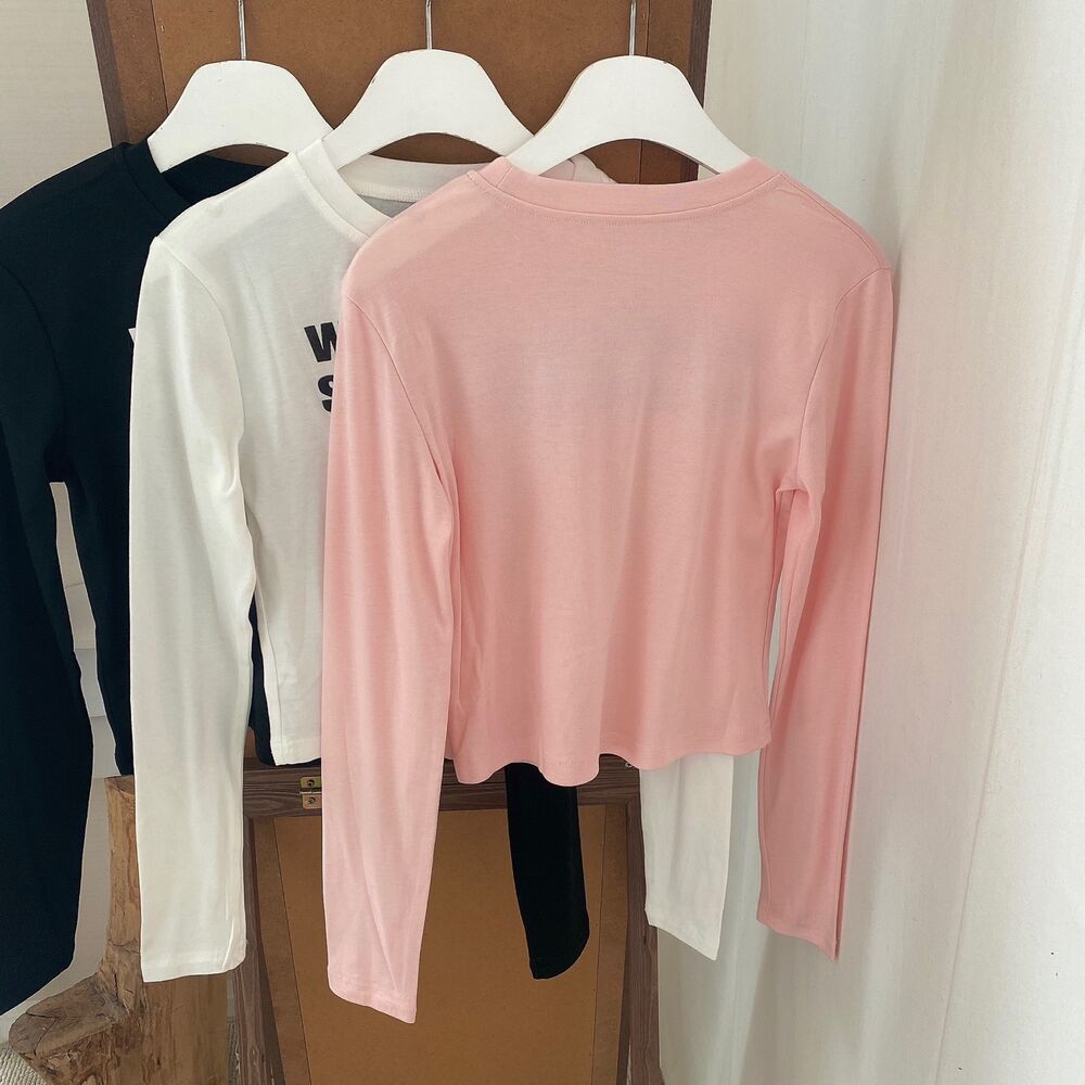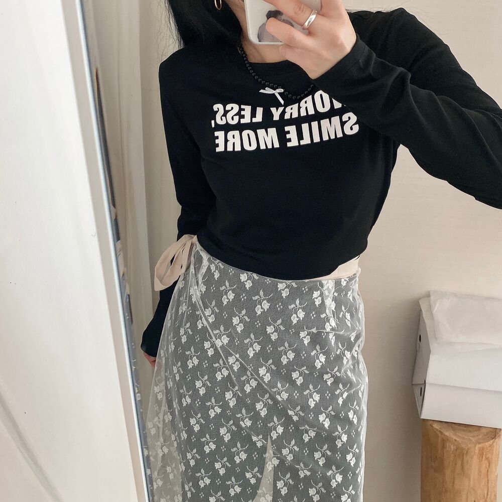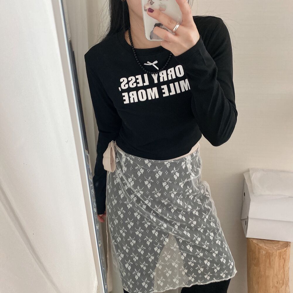 リボンレタリングスリムTシャツ