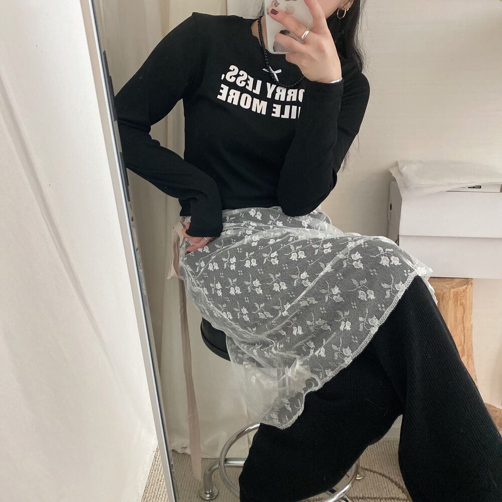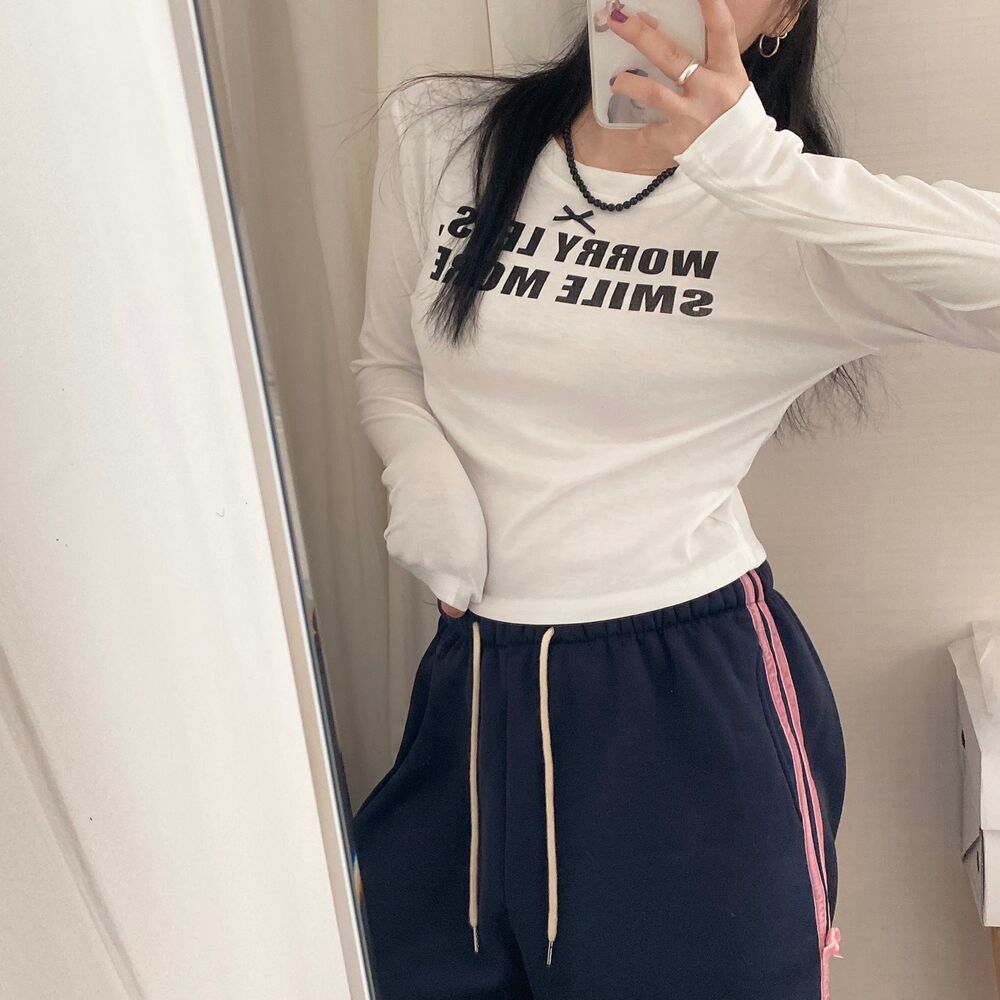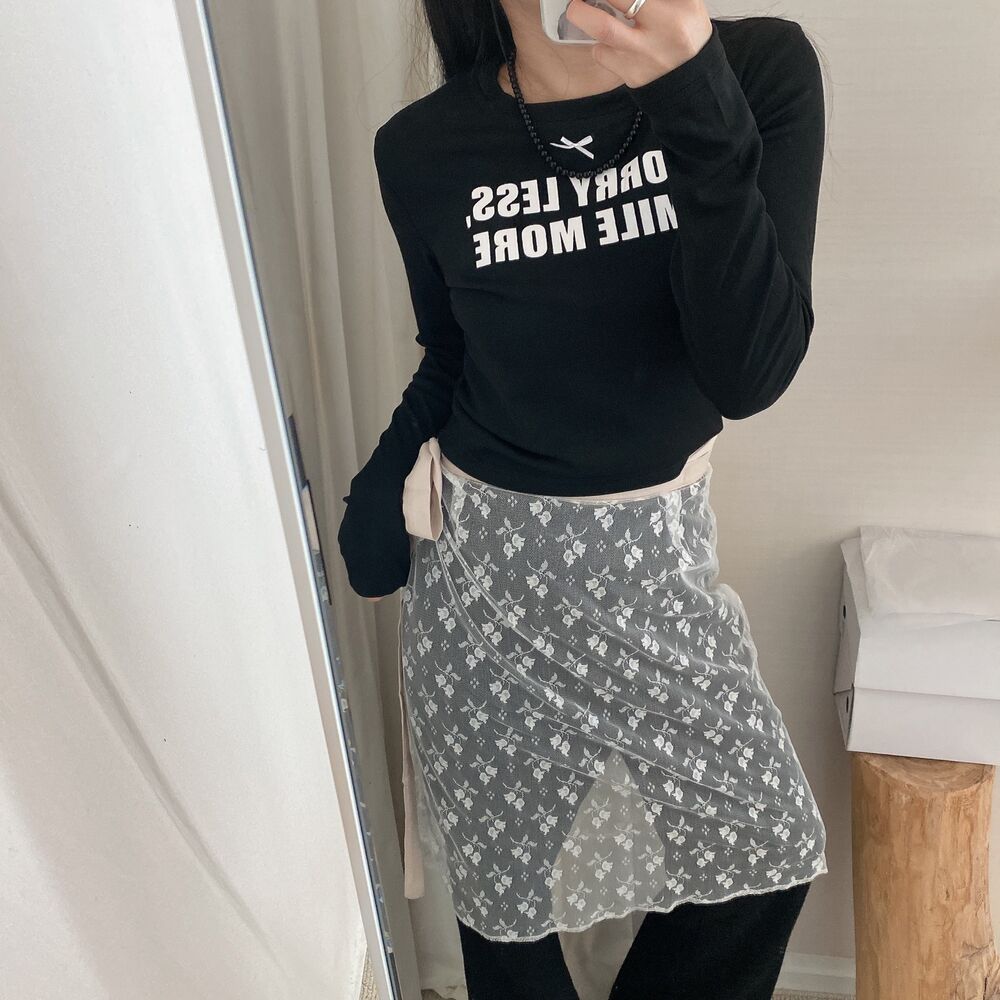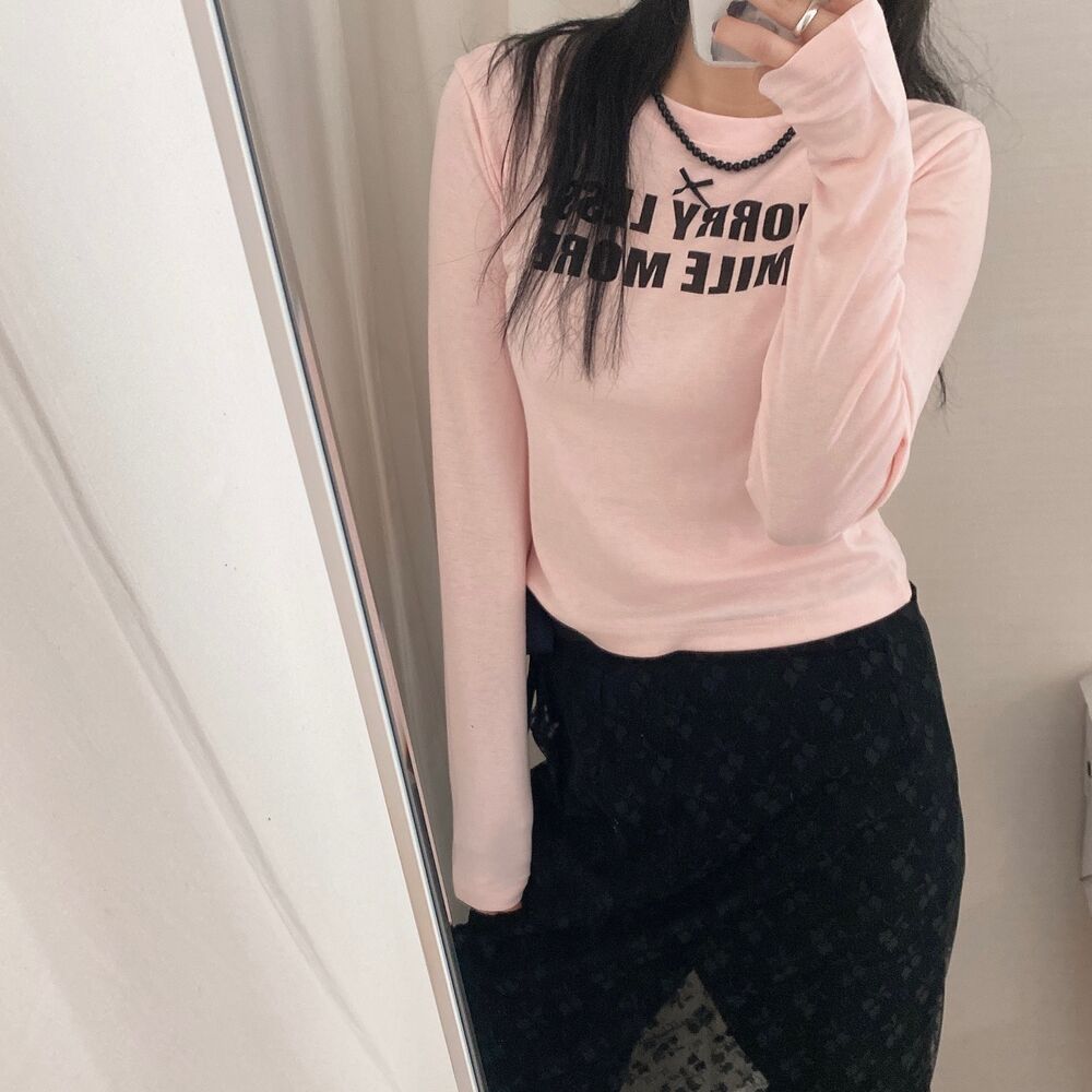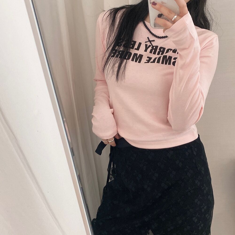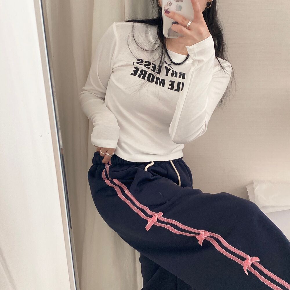 リボンレタリングスリムTシャツ