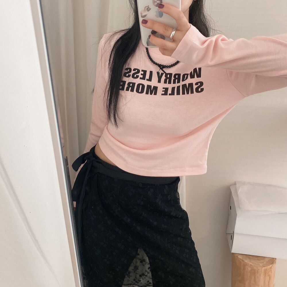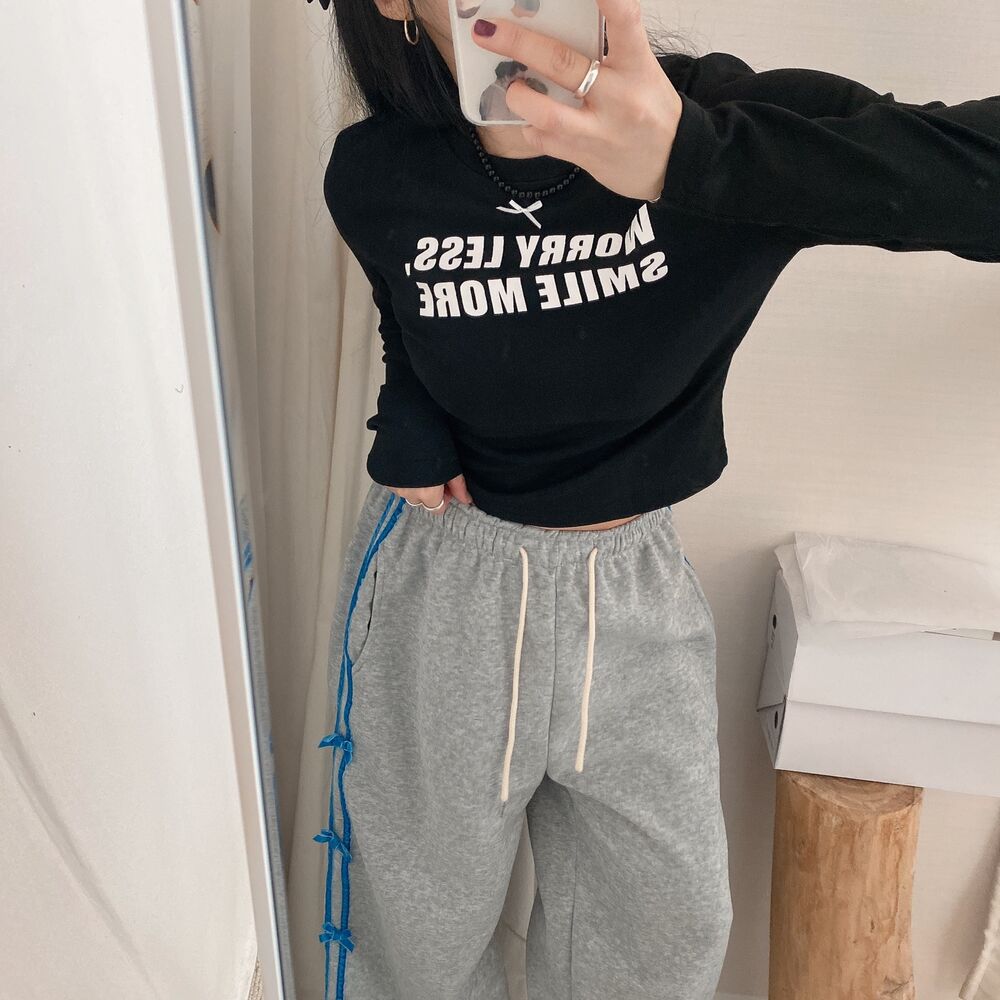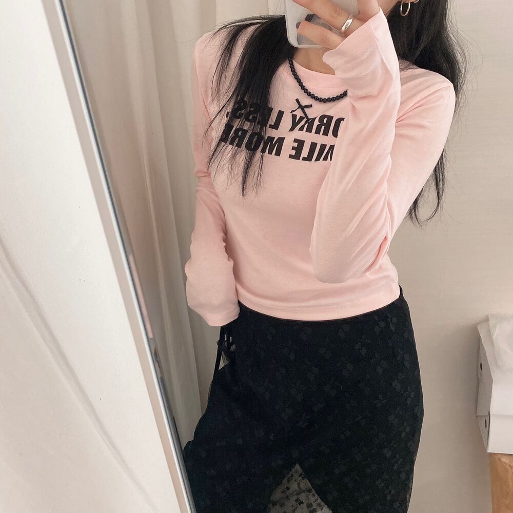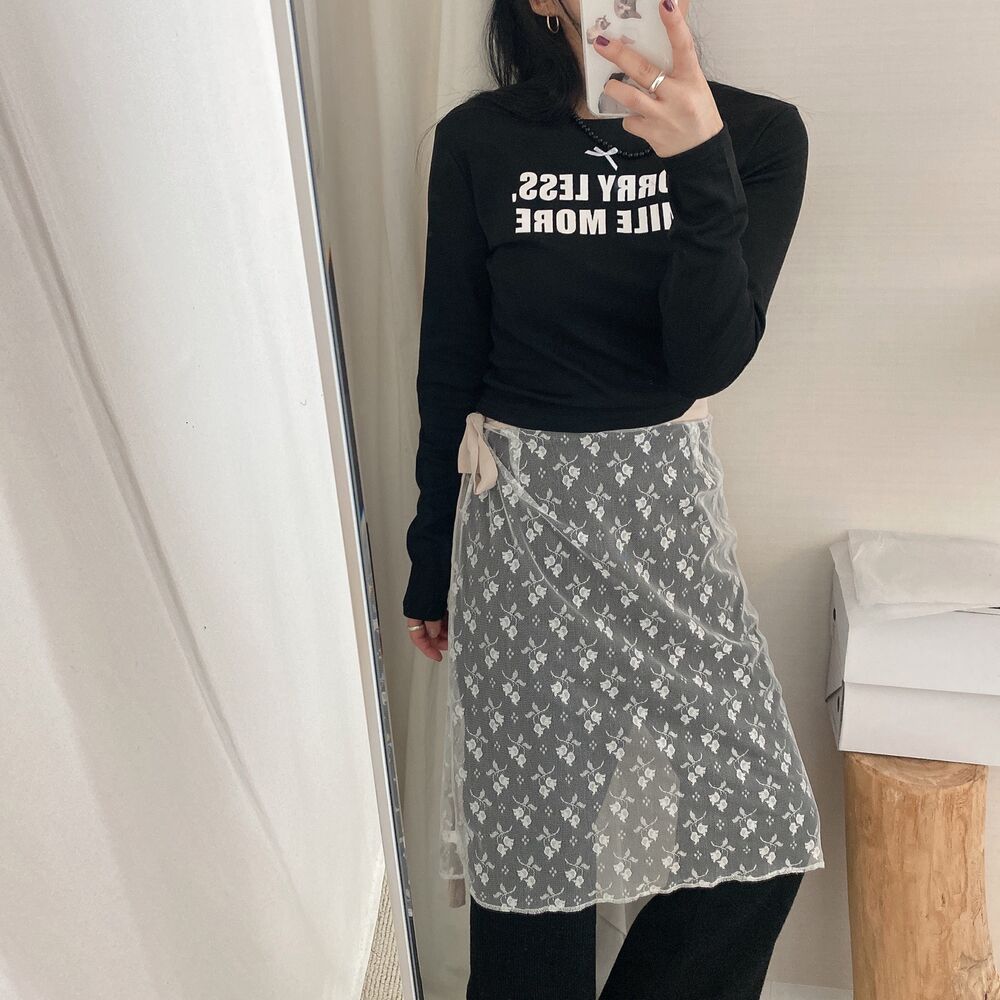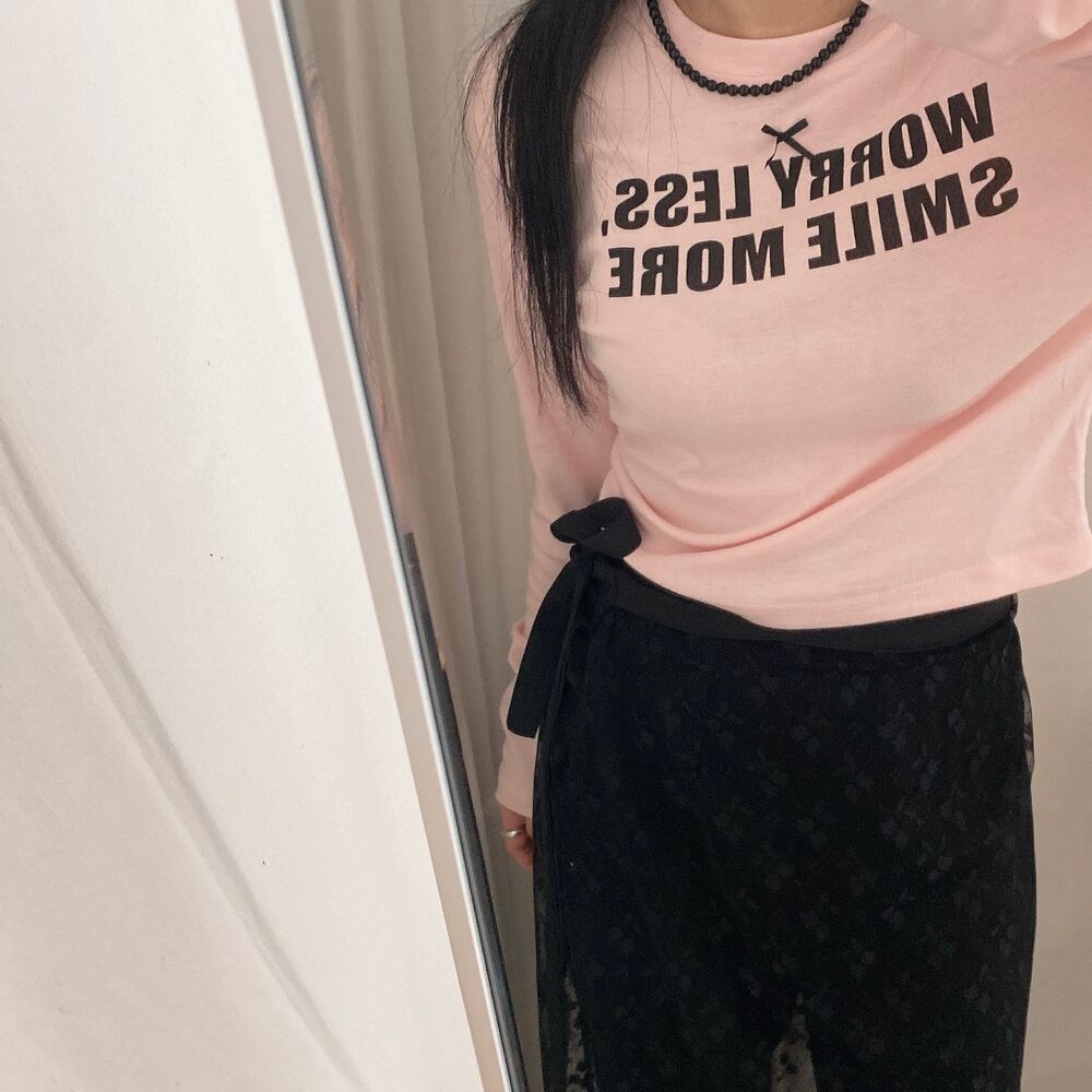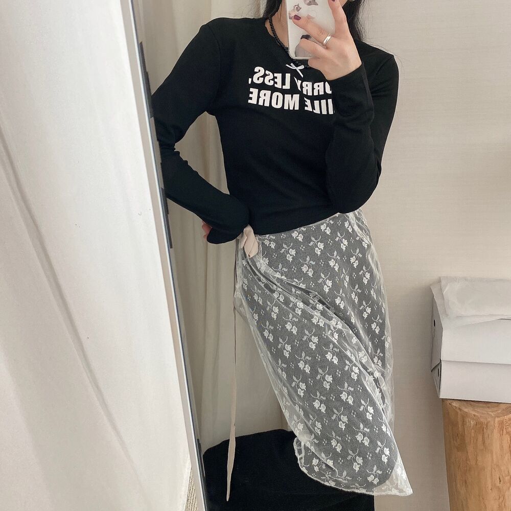 リボンレタリングスリムTシャツ