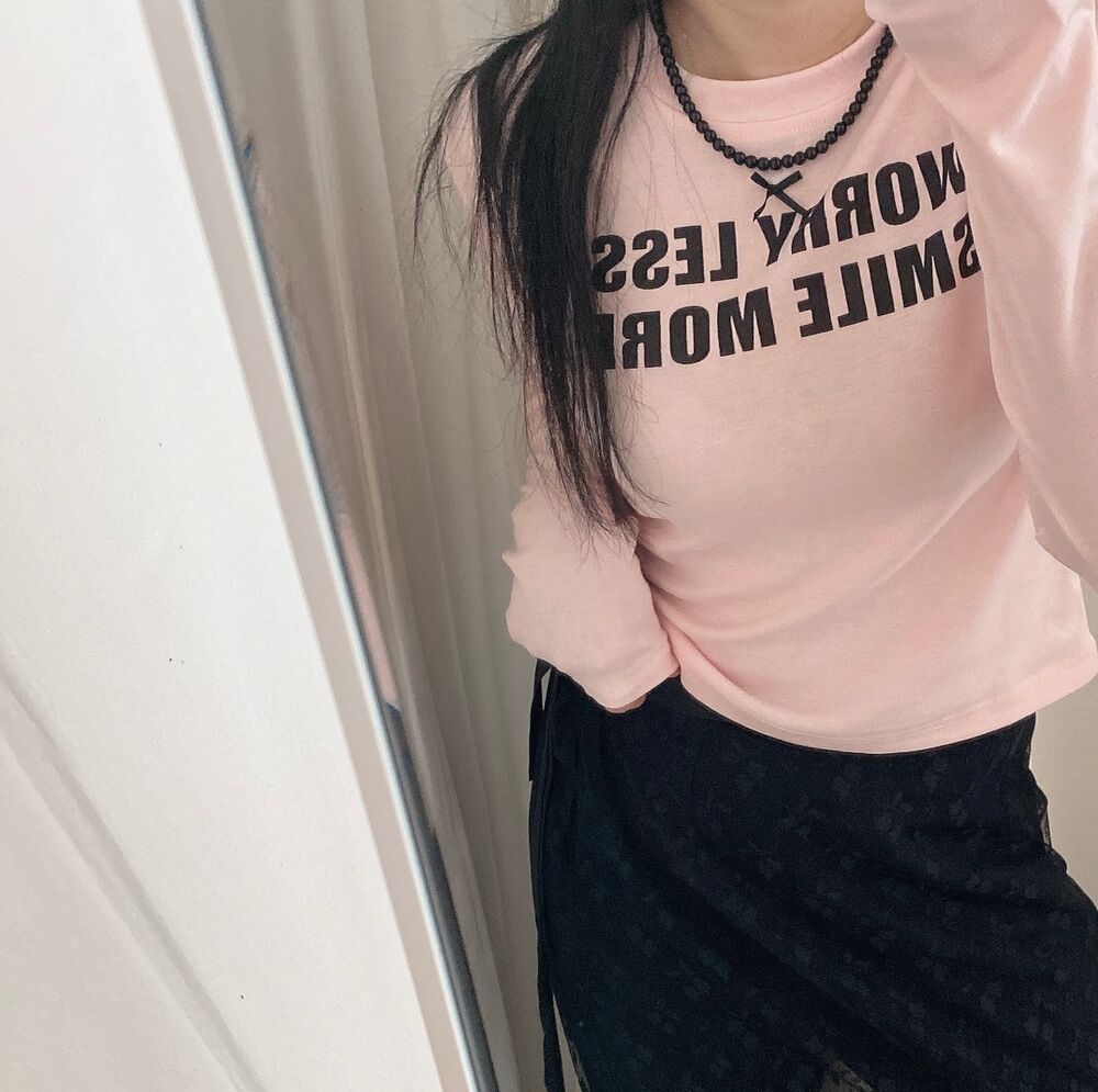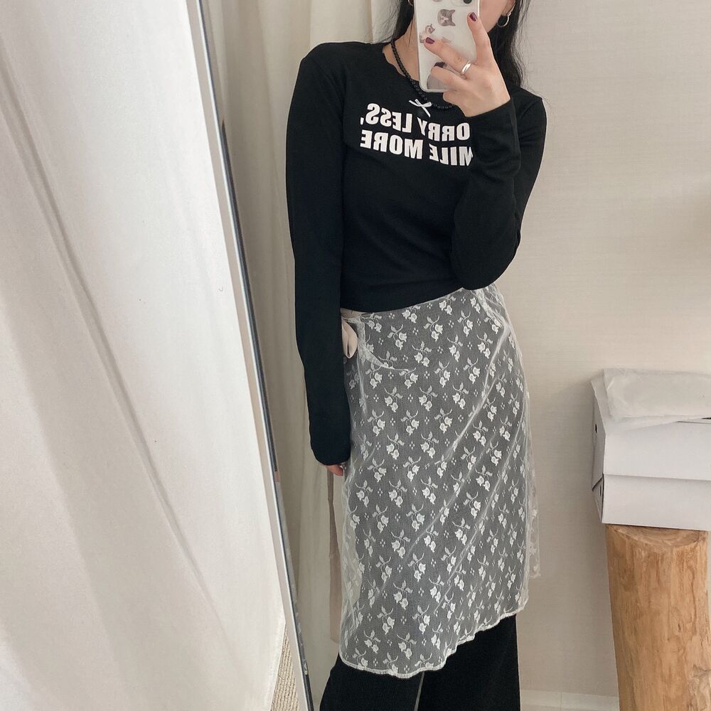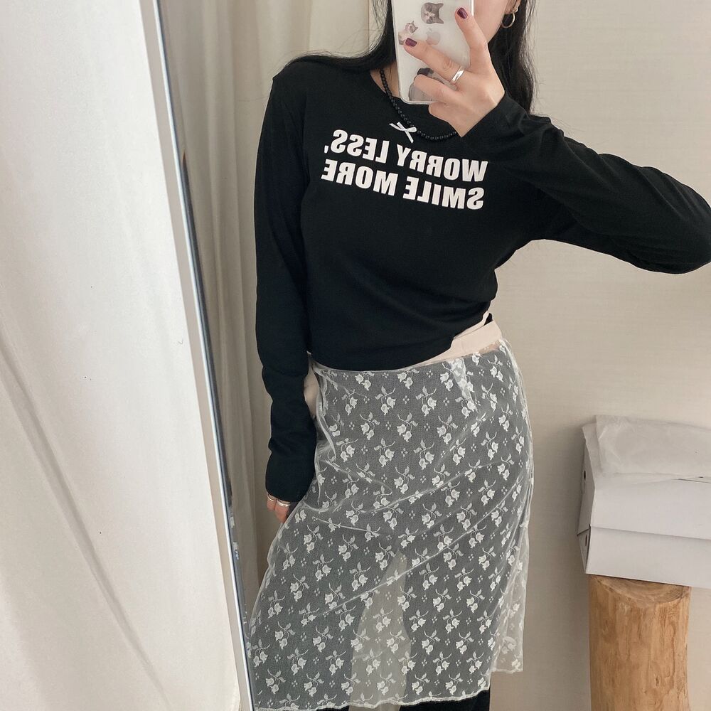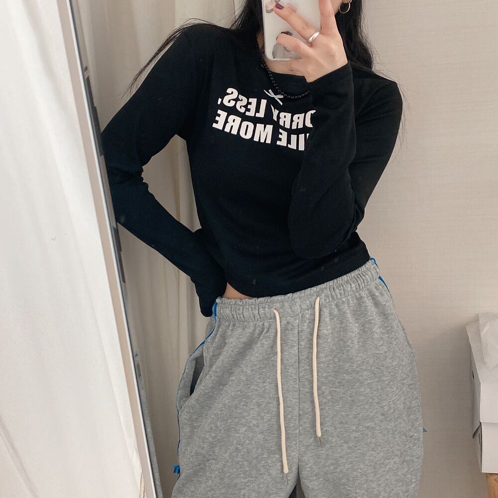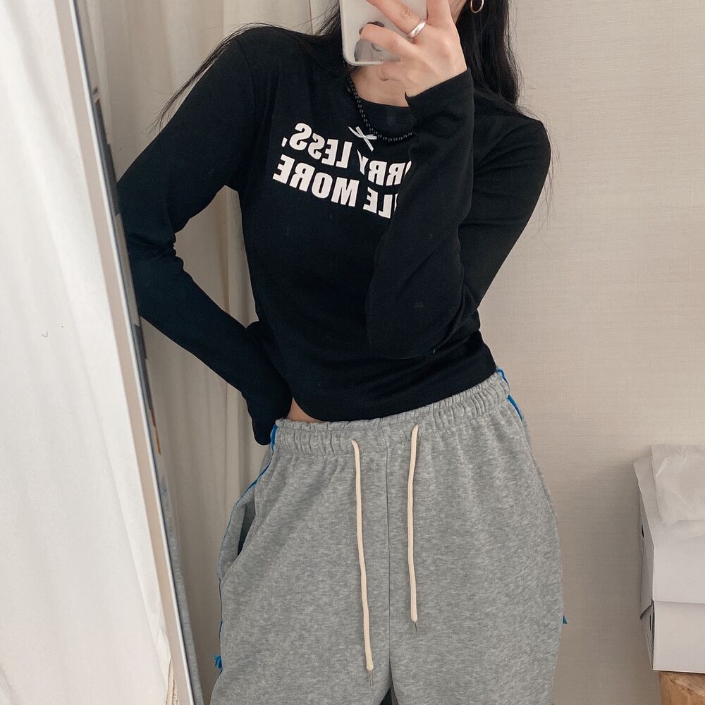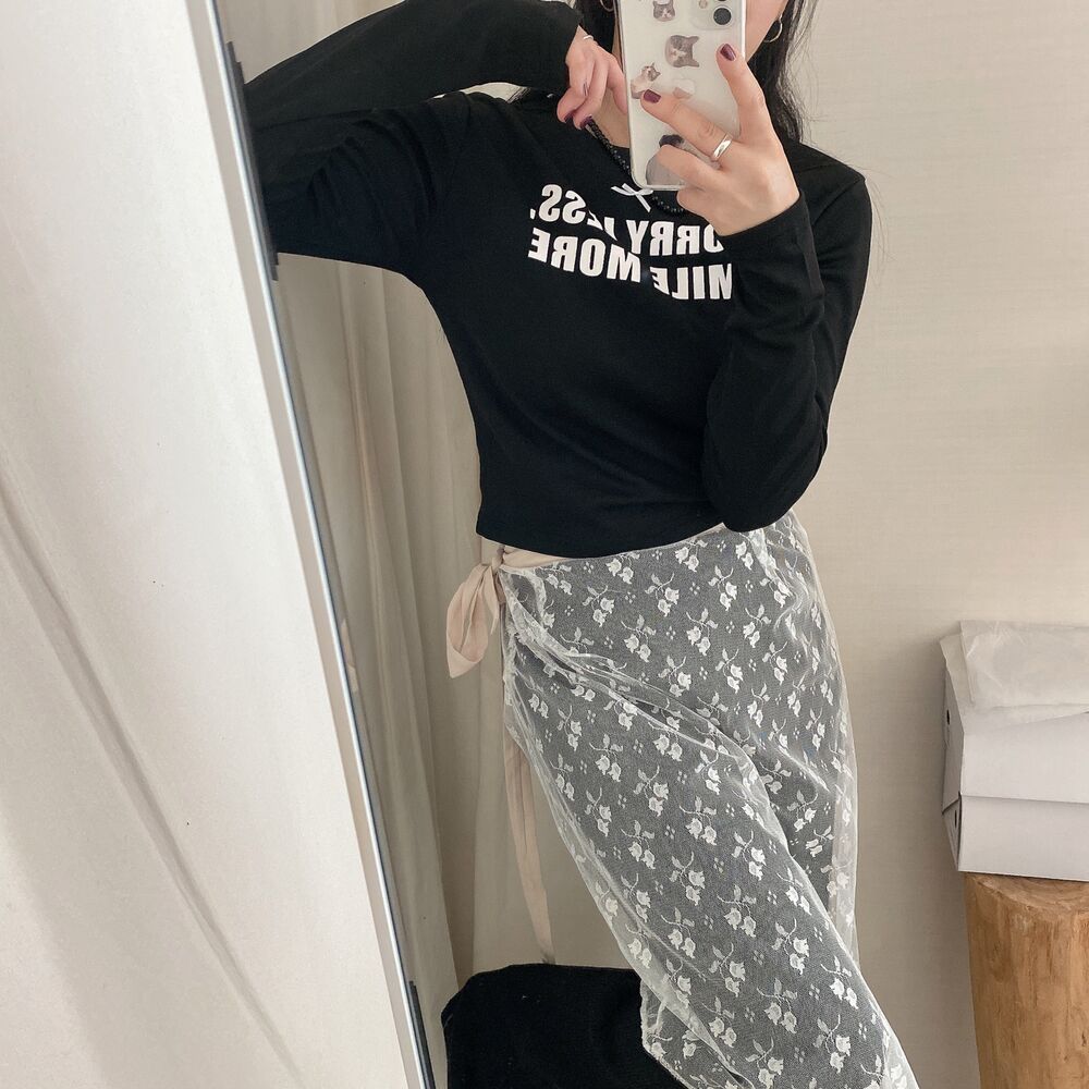 リボンレタリングスリムTシャツ