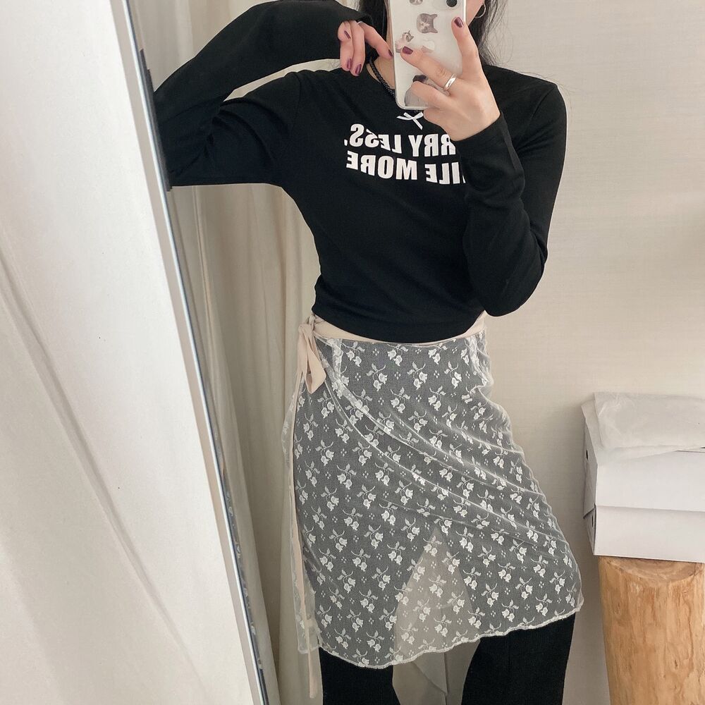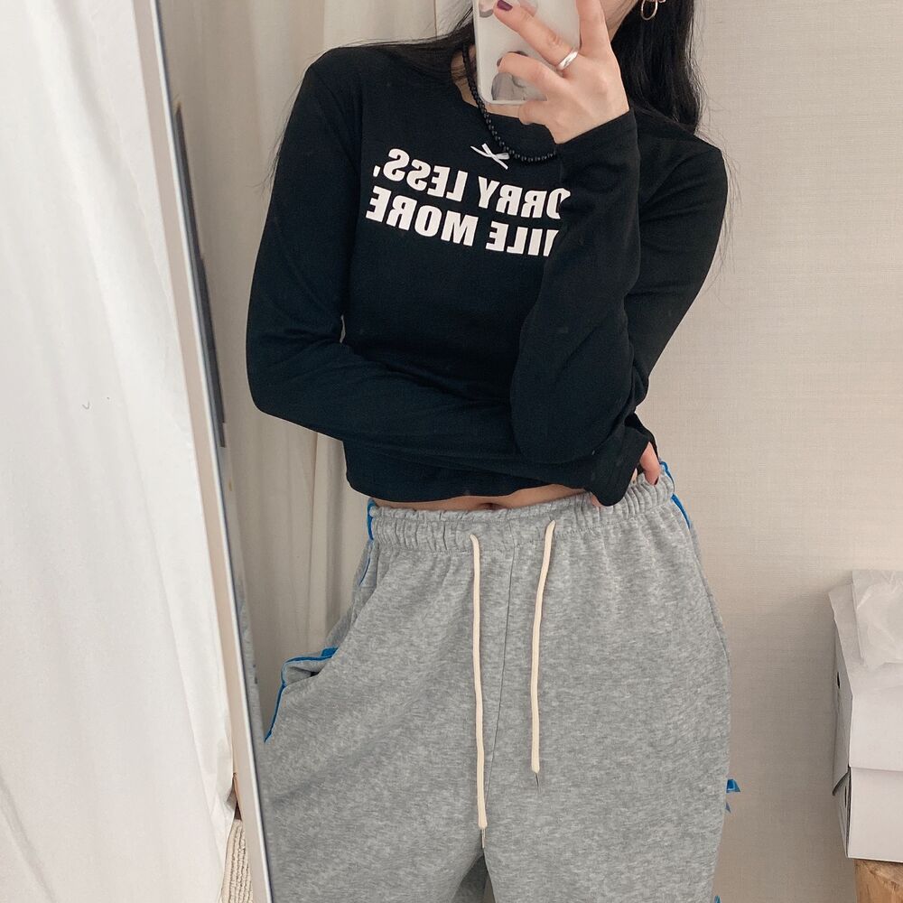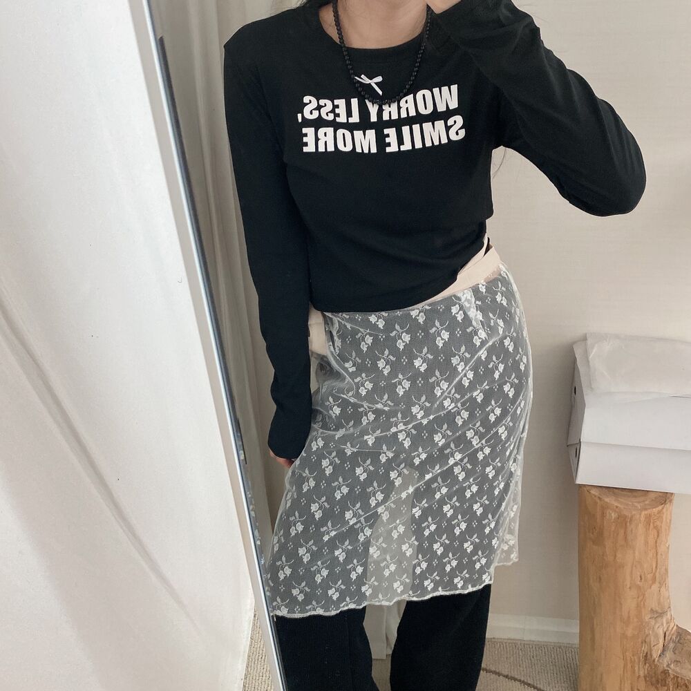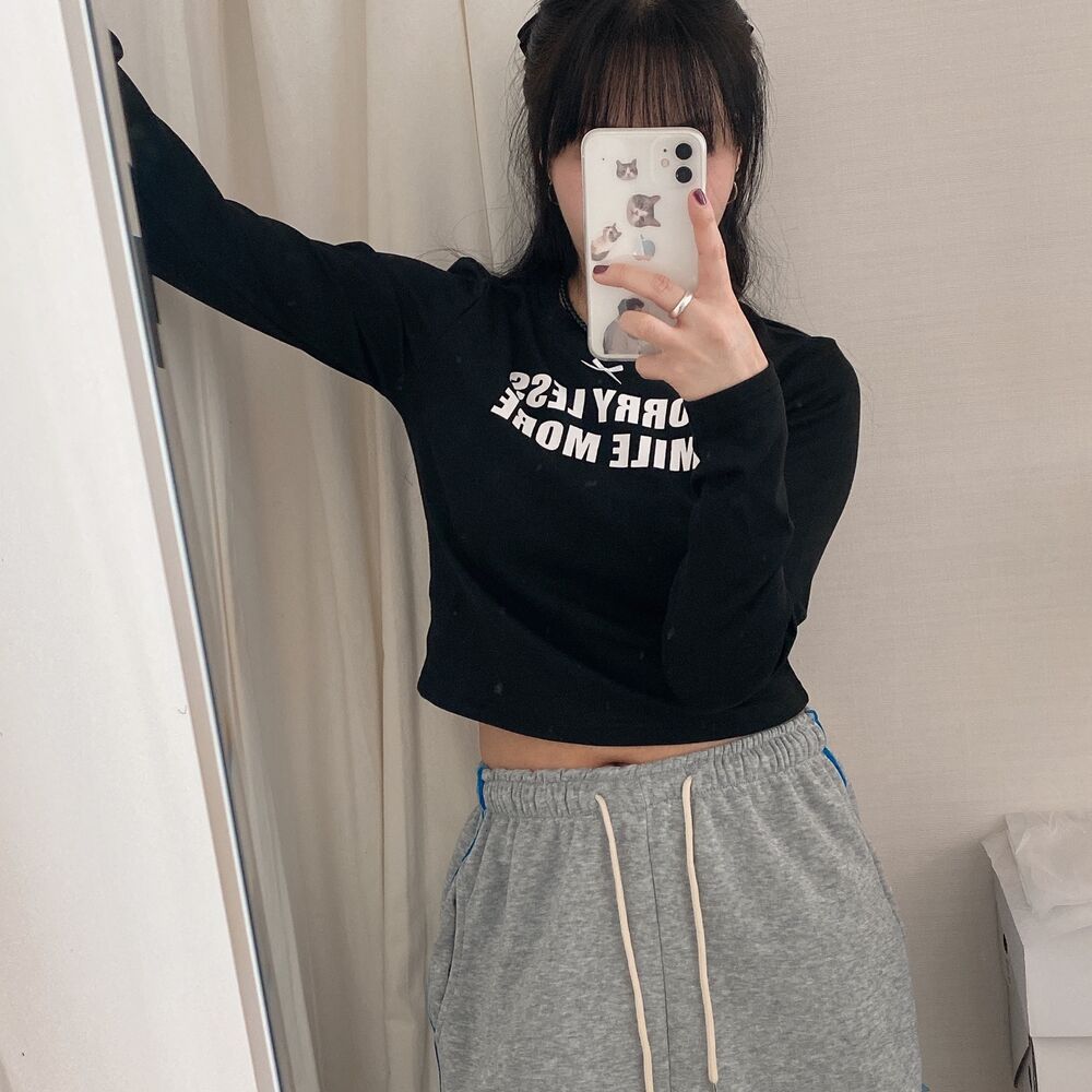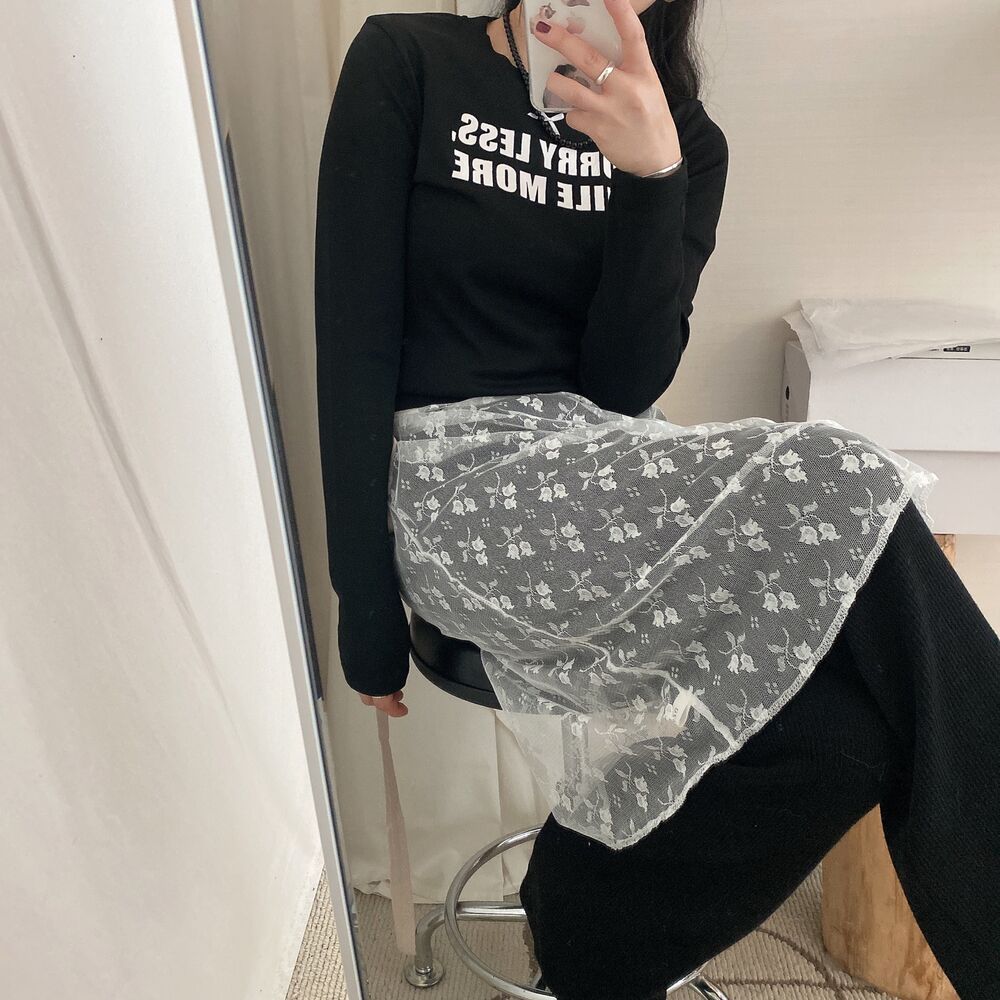 リボンレタリングスリムTシャツ