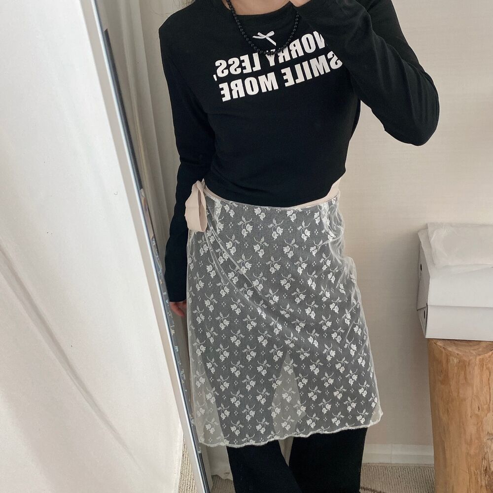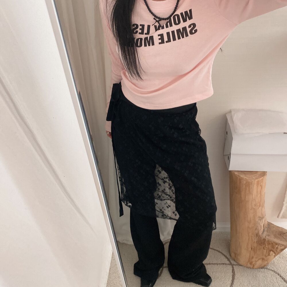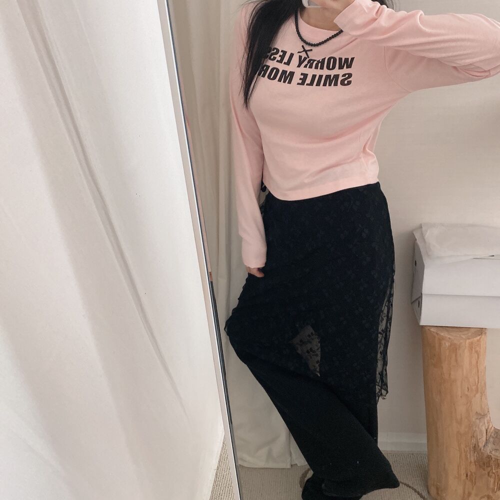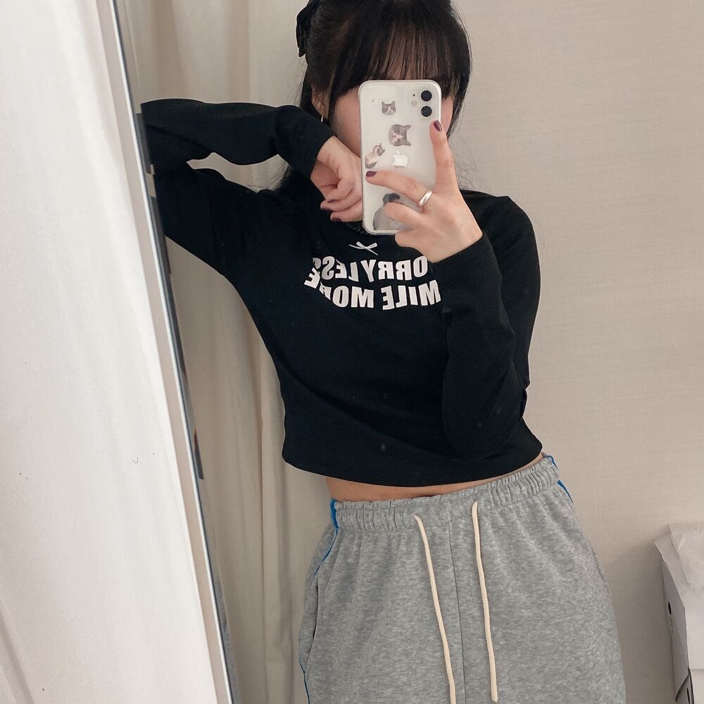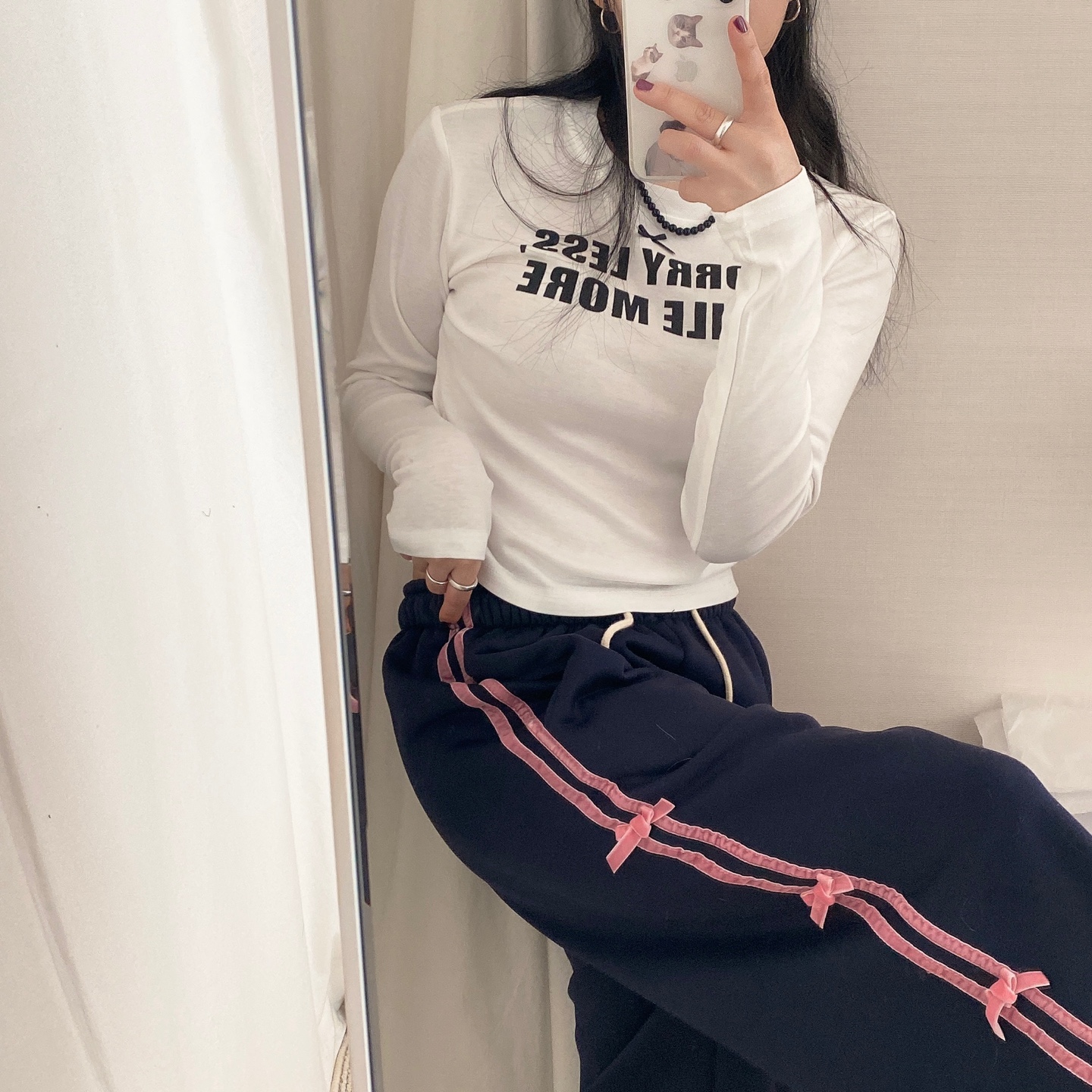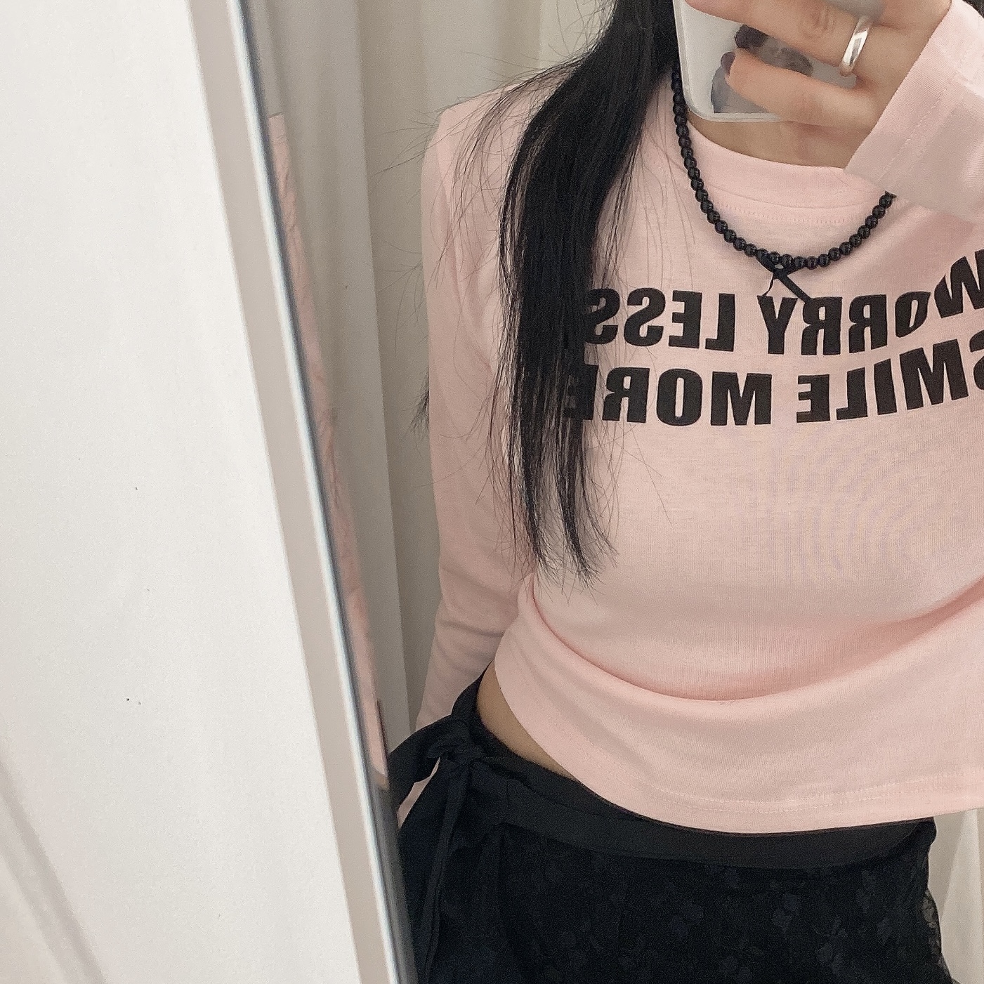 リボンレタリングスリムTシャツ