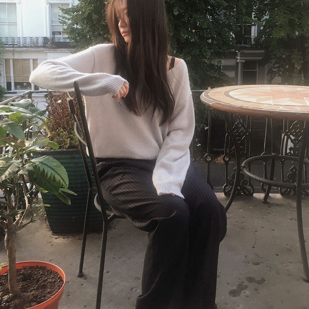-#SLOWMADE. 여리핏 심볼하트 브이넥니트