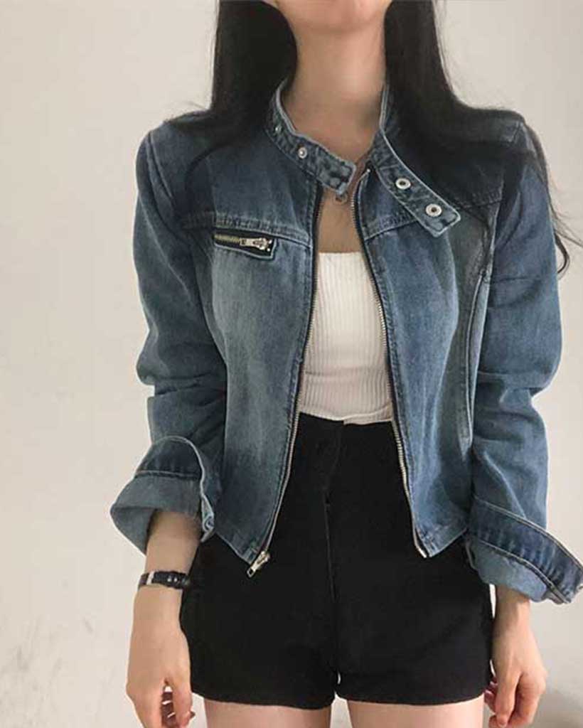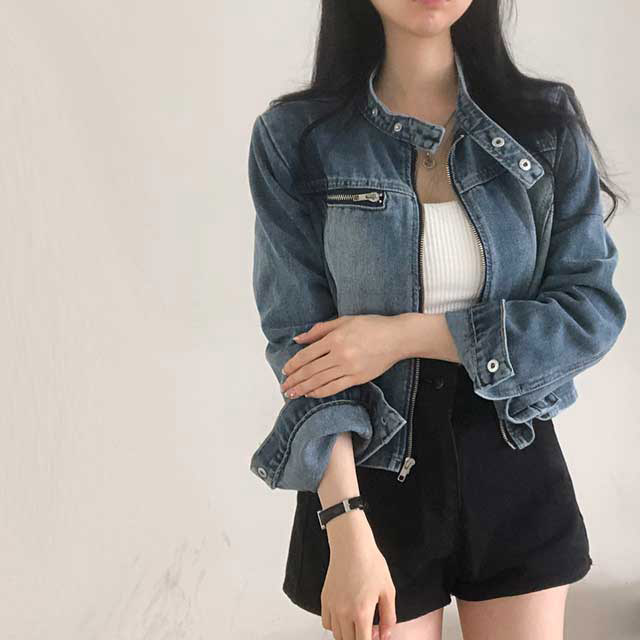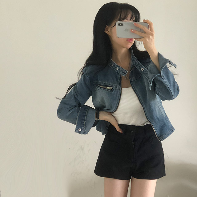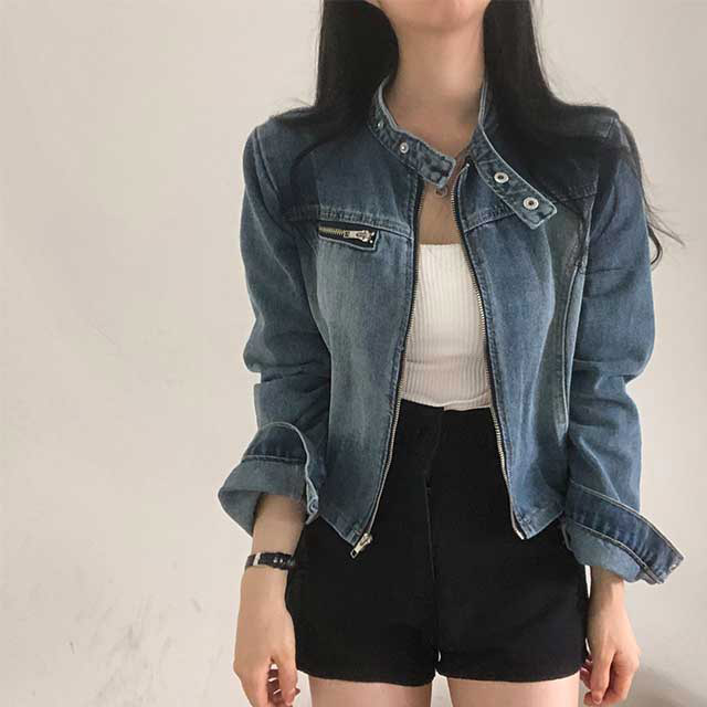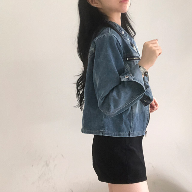 ウォッシュデニムクロップドジャケット