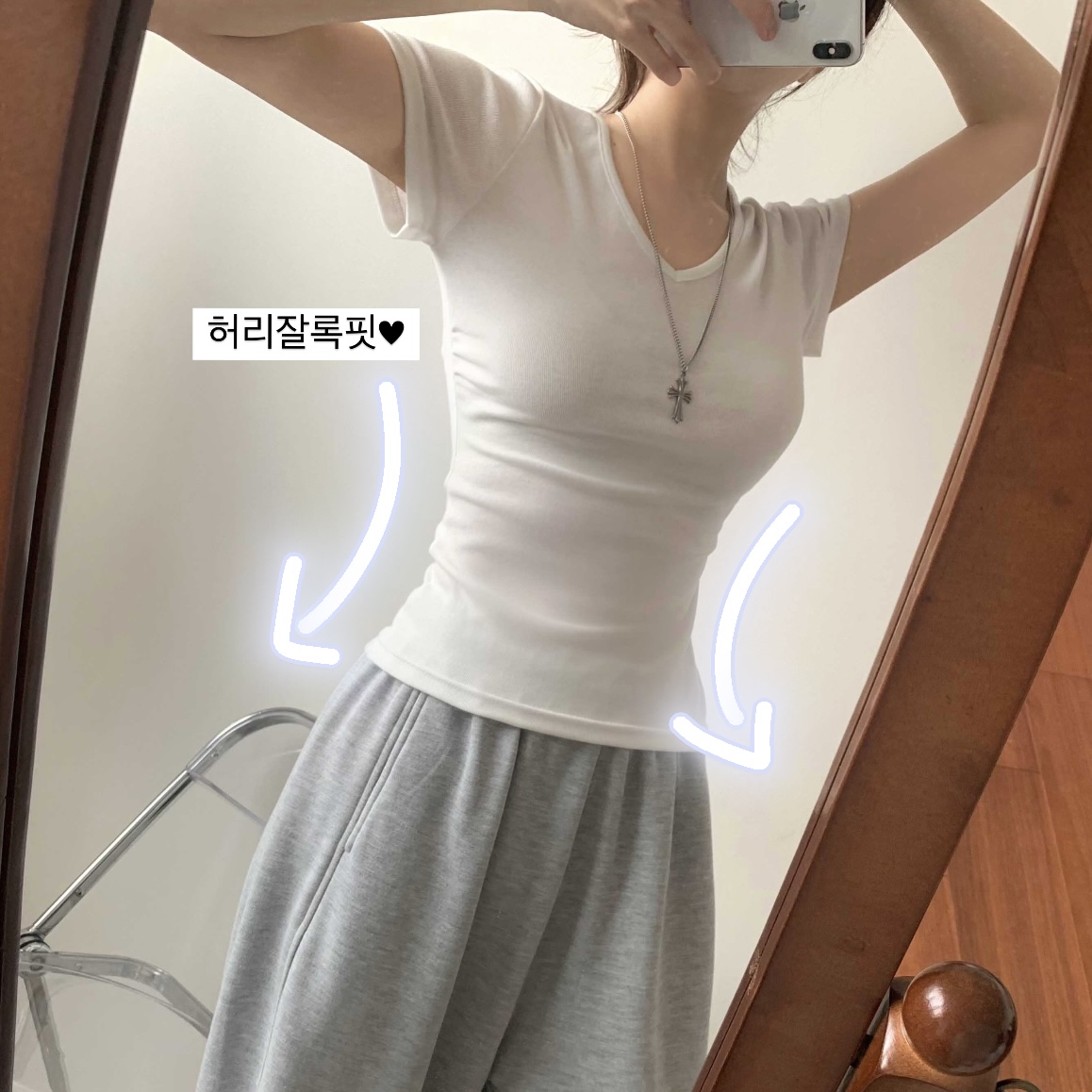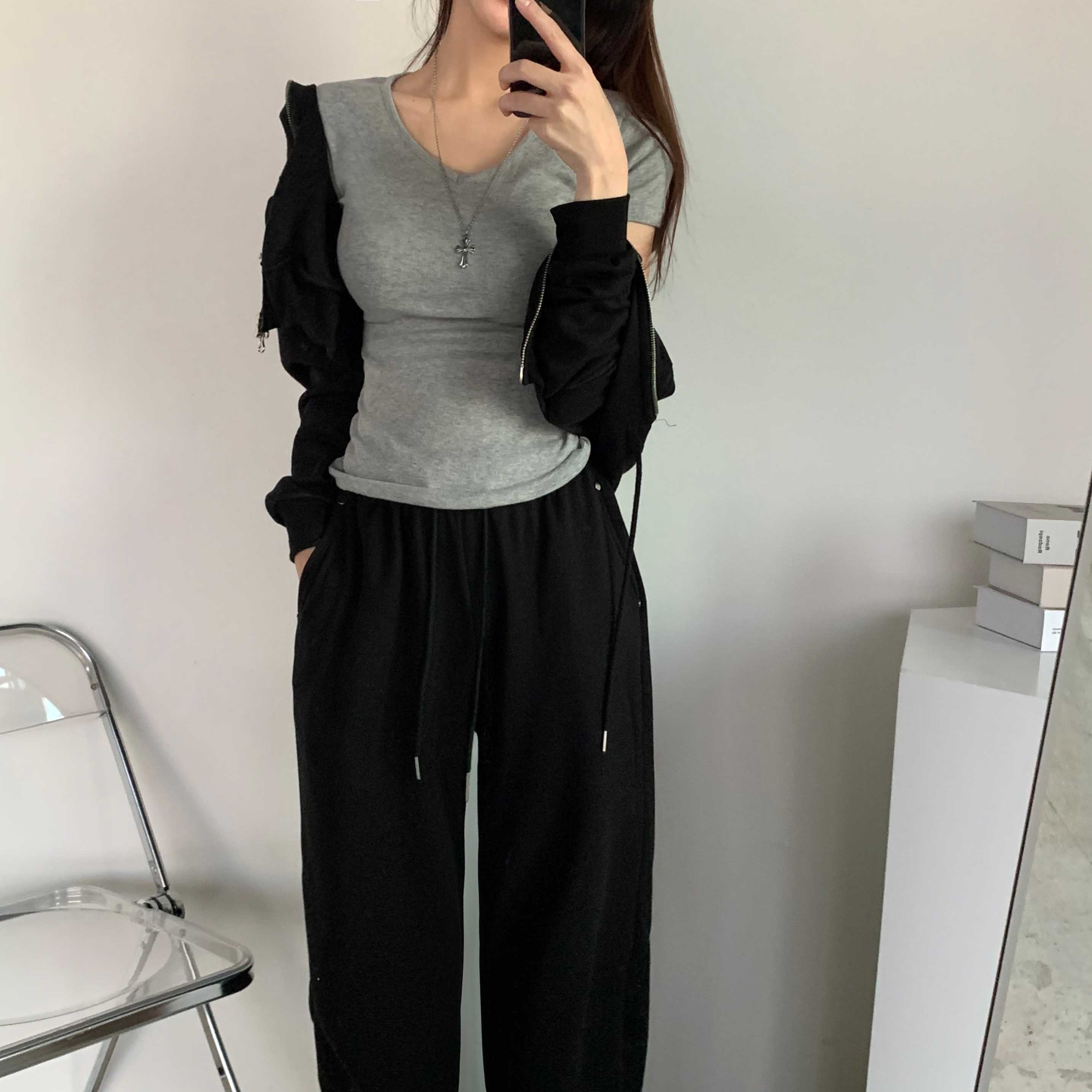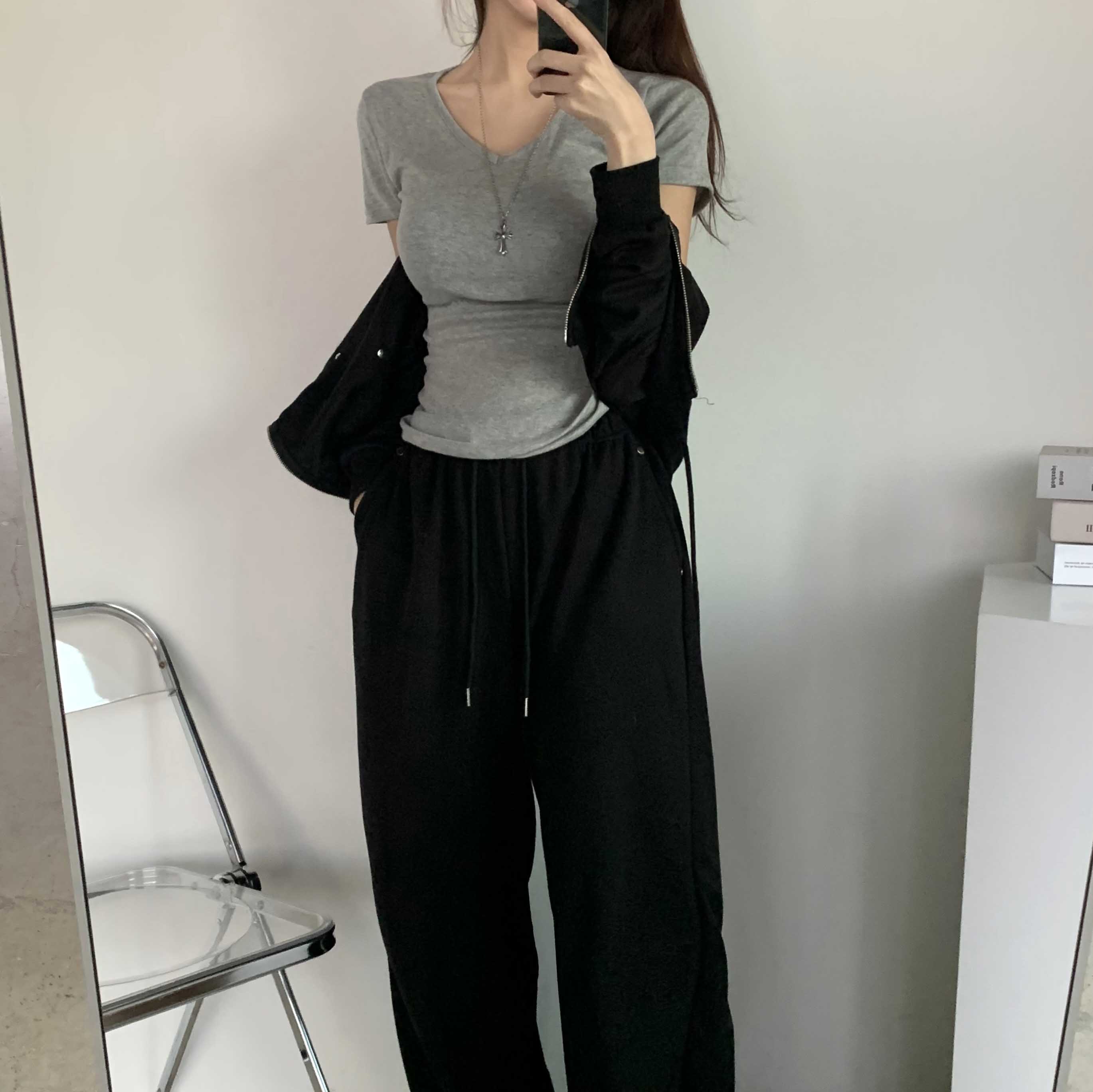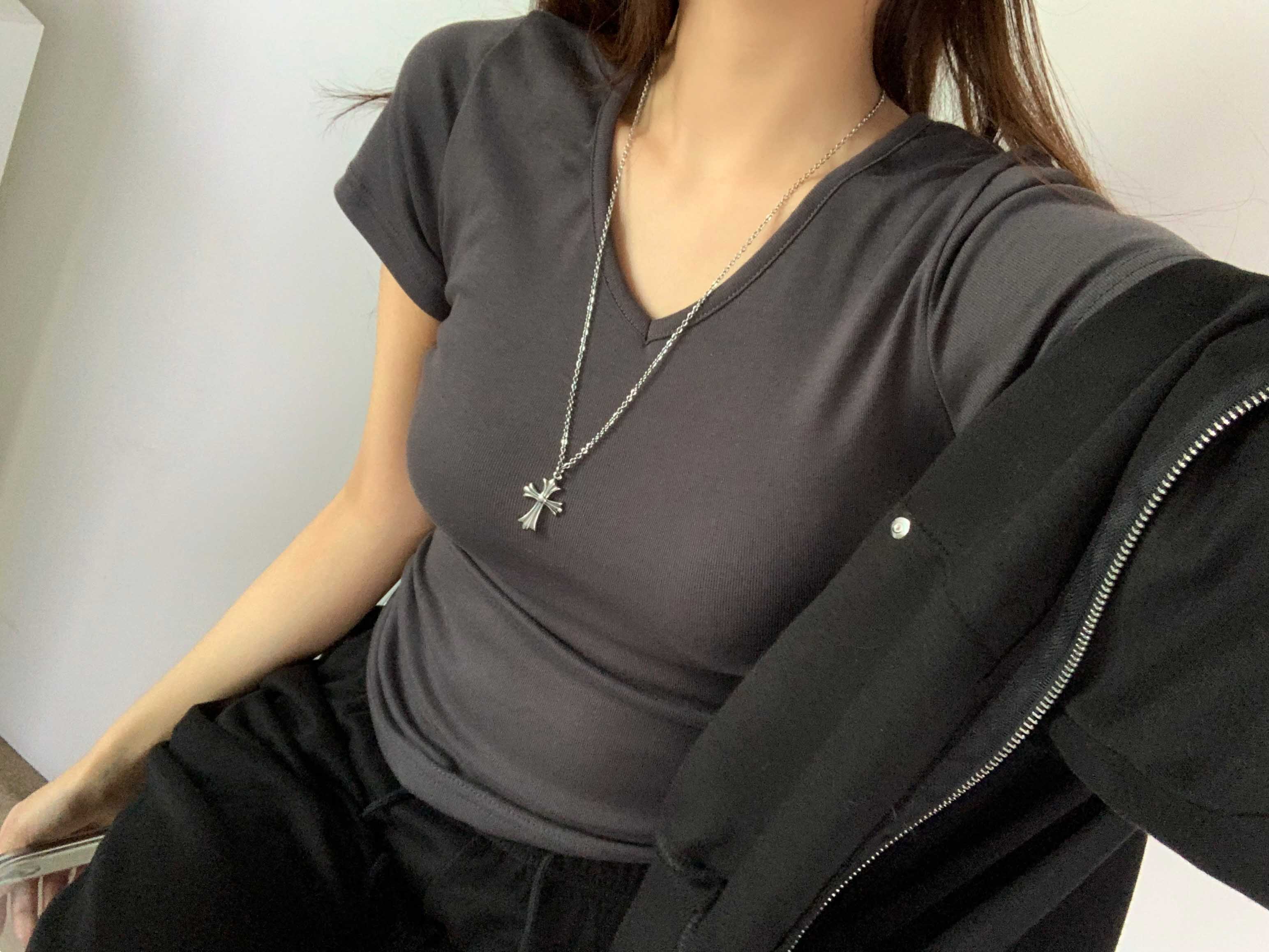 [6color]サイドシャーリングVネックスリム半袖Tシャツ