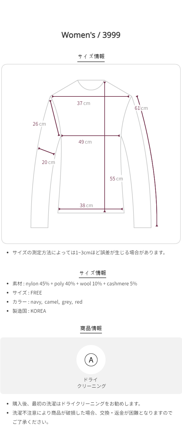 商品準備期間:注文確定後3~5営業日以内に入庫予定