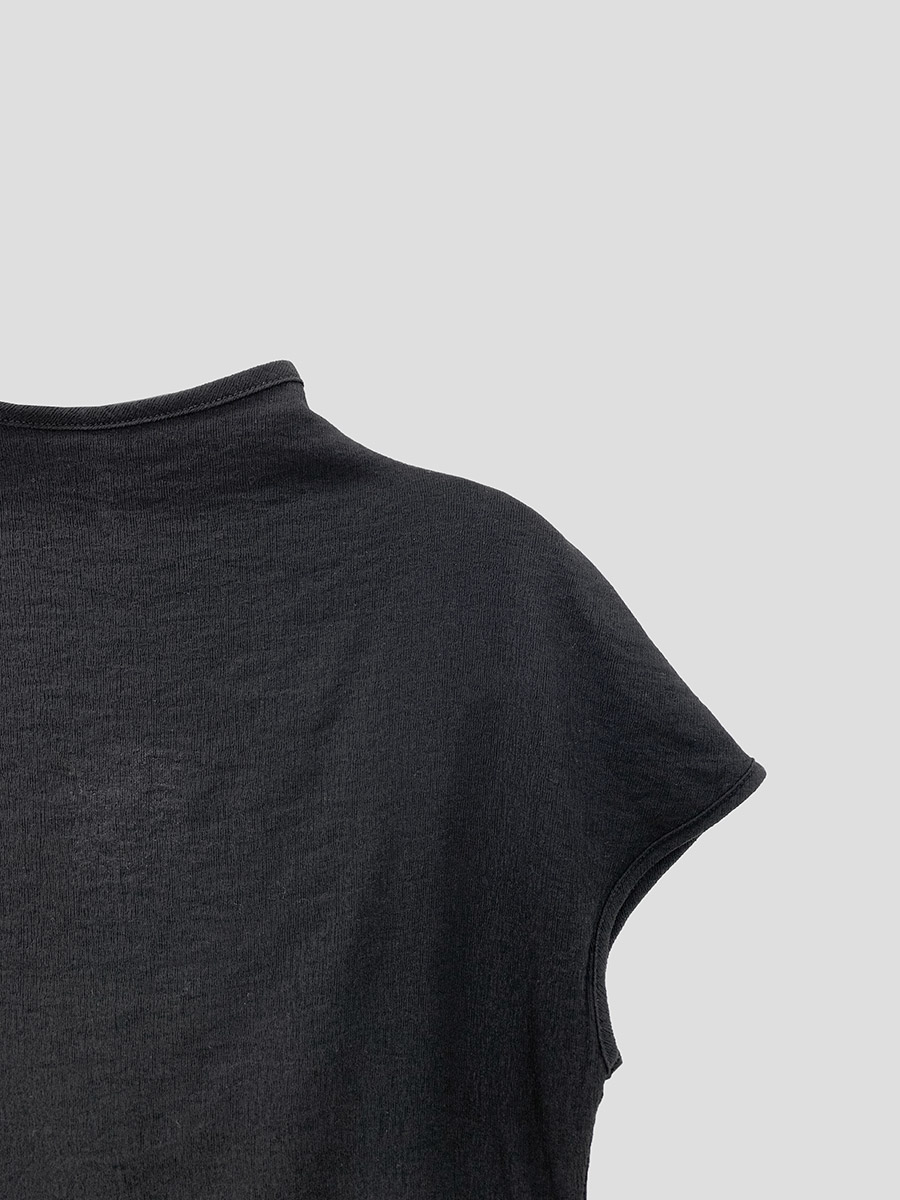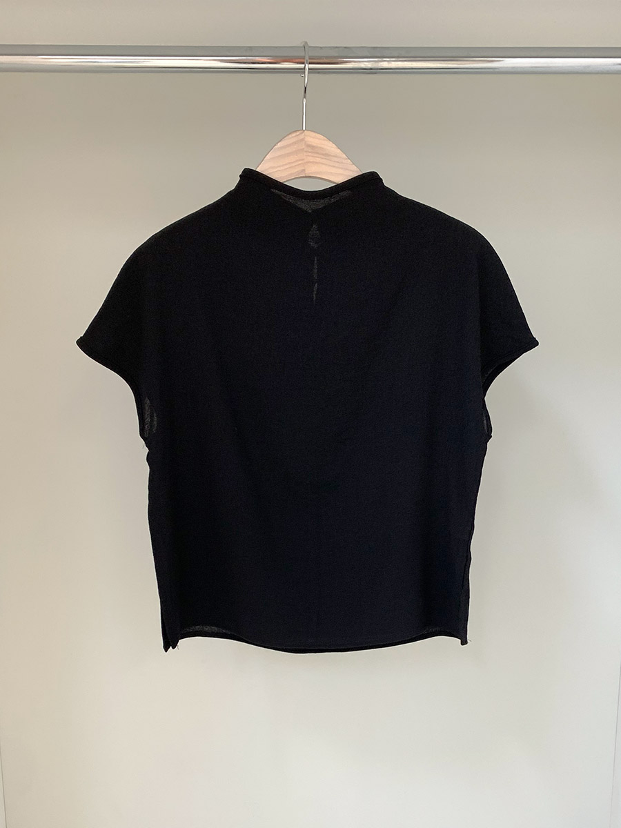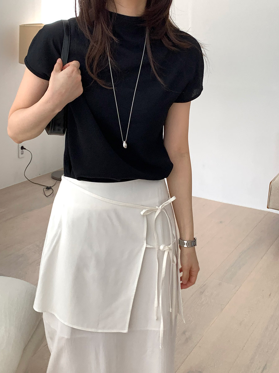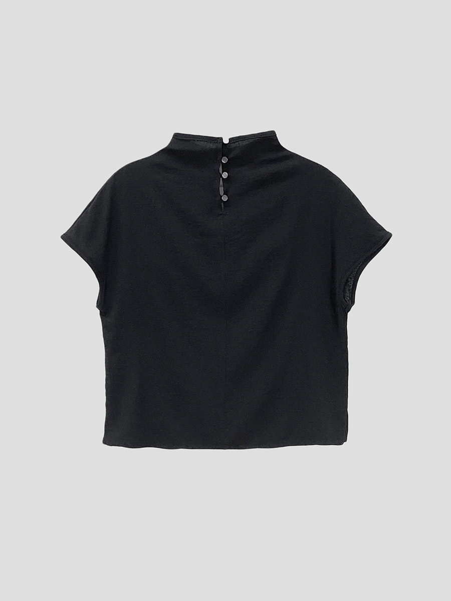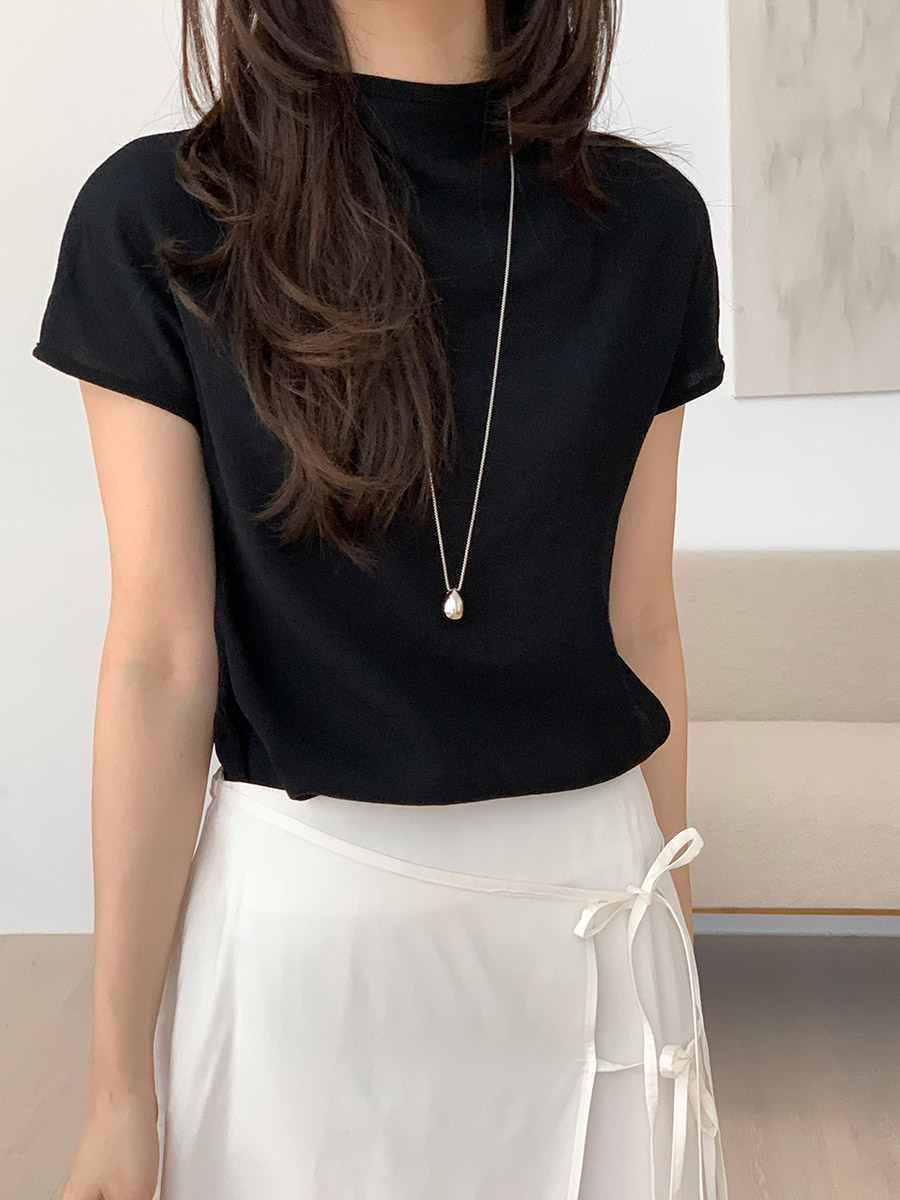 ハーフネックシースルーラグランリンクル半袖ブラウス