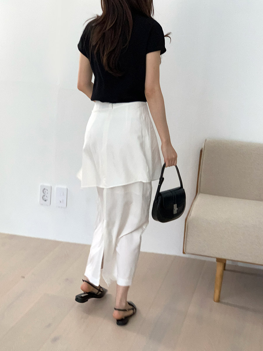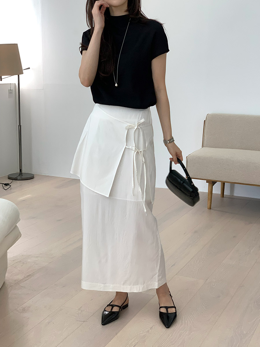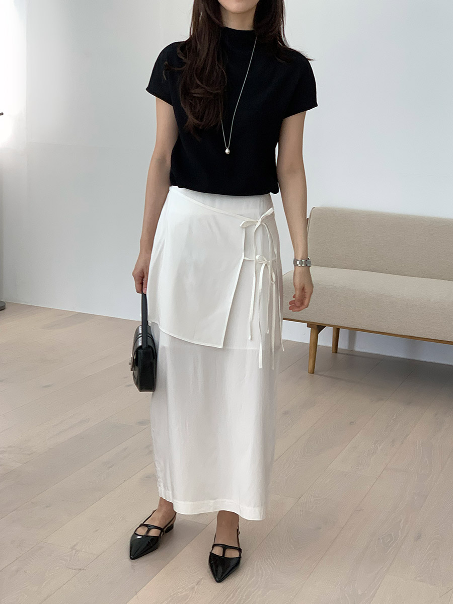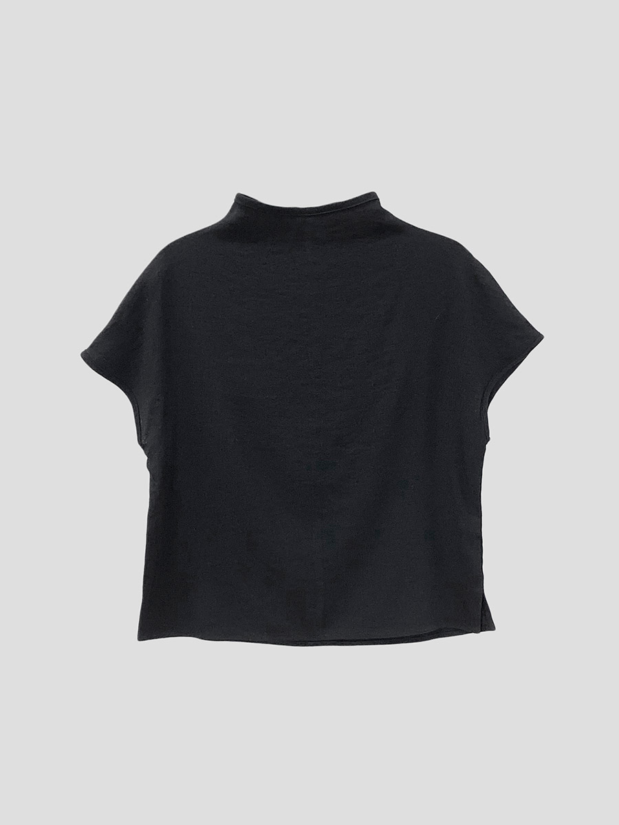 ハーフネックシースルーラグランリンクル半袖ブラウス