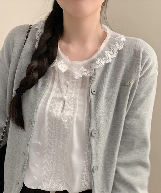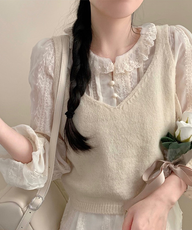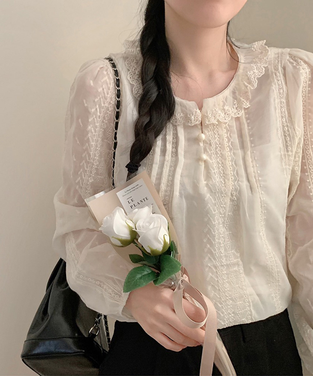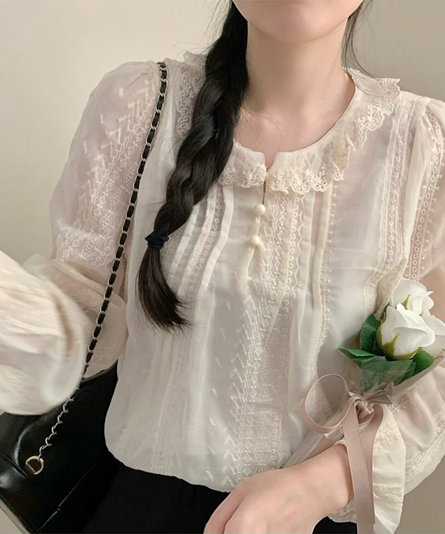 (2color) レース襟シアーブラウス