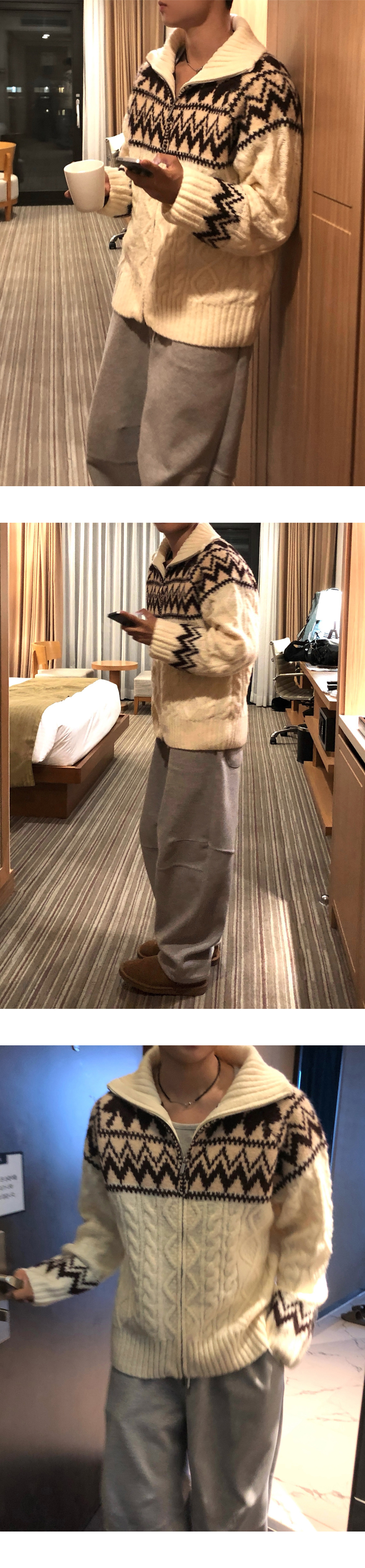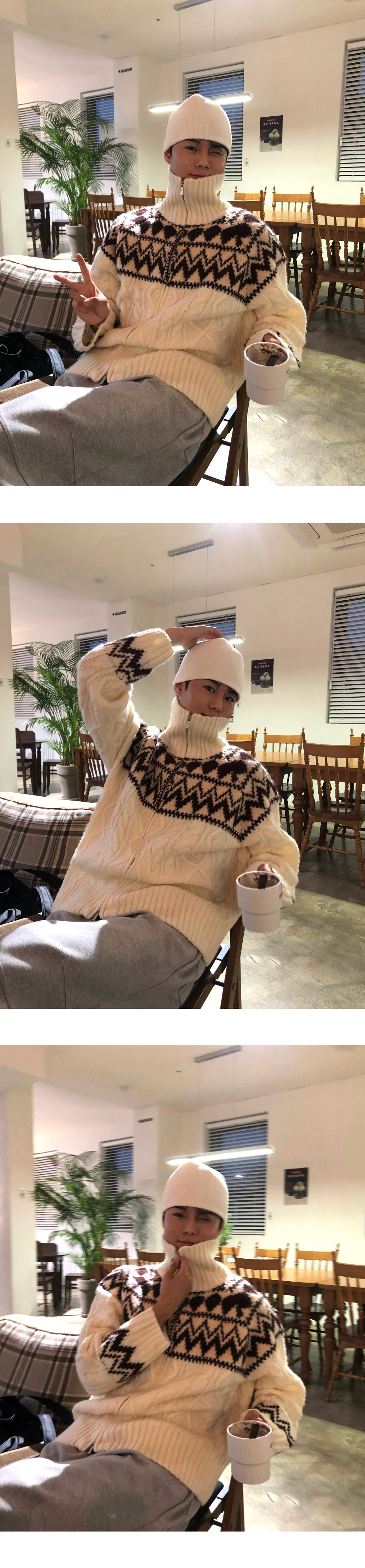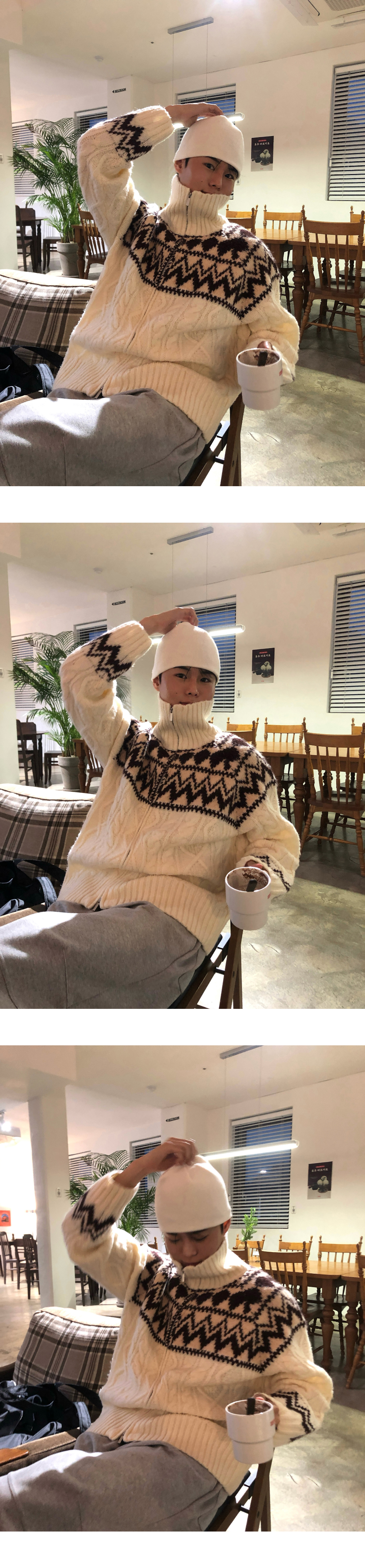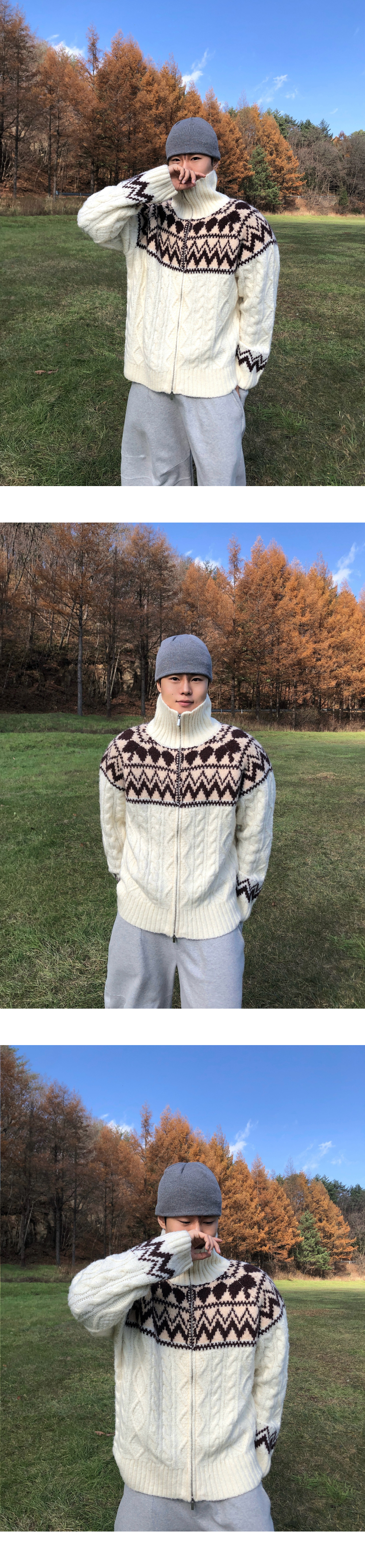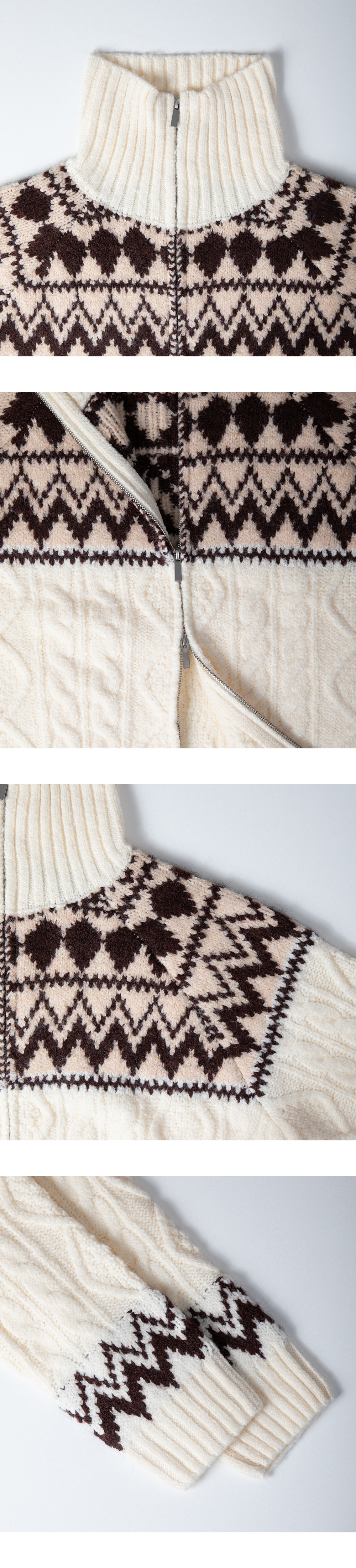 (3 color) ウール ハンドメイド ニット ジップアップ