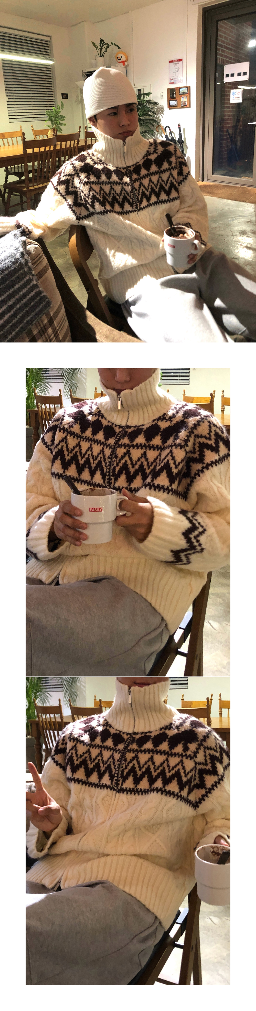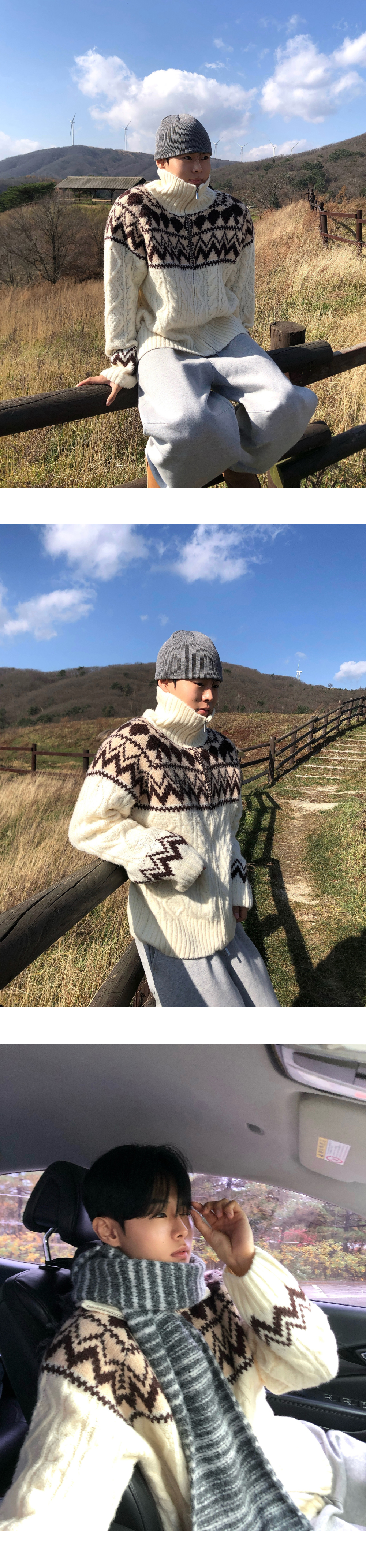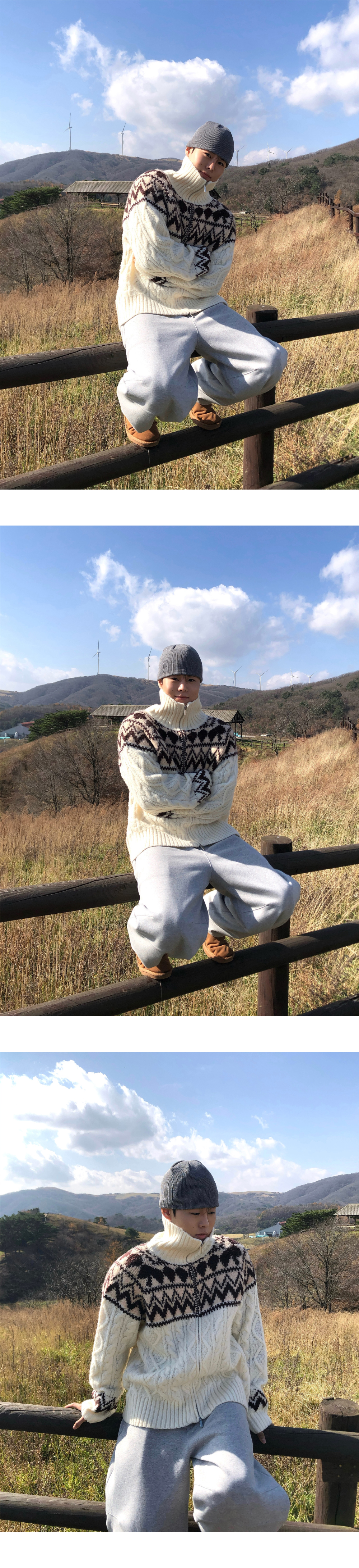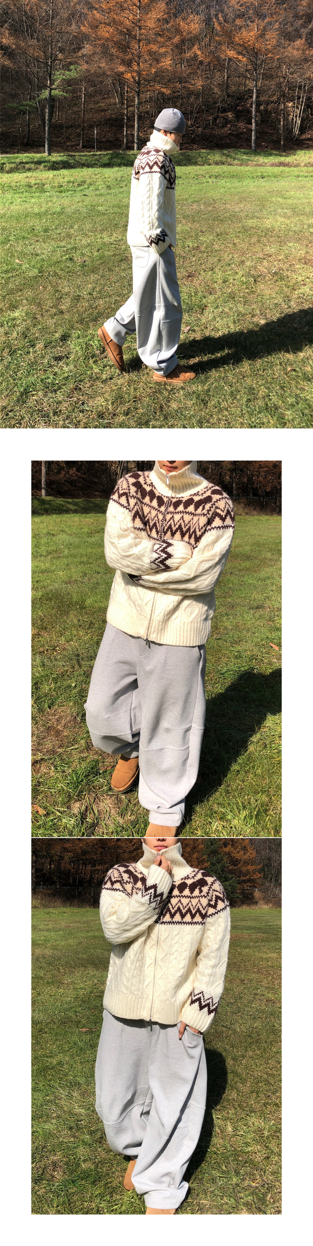 (3 color) ウール ハンドメイド ニット ジップアップ