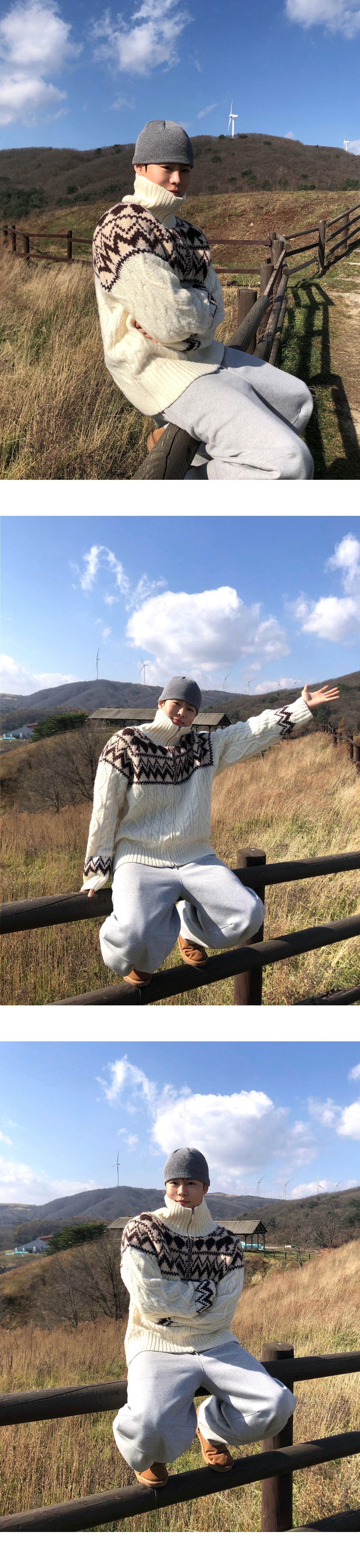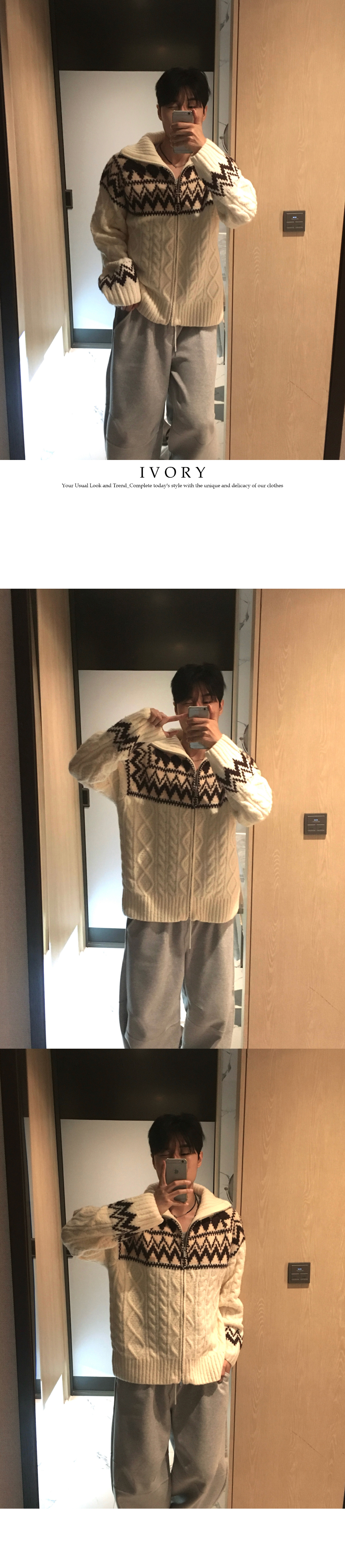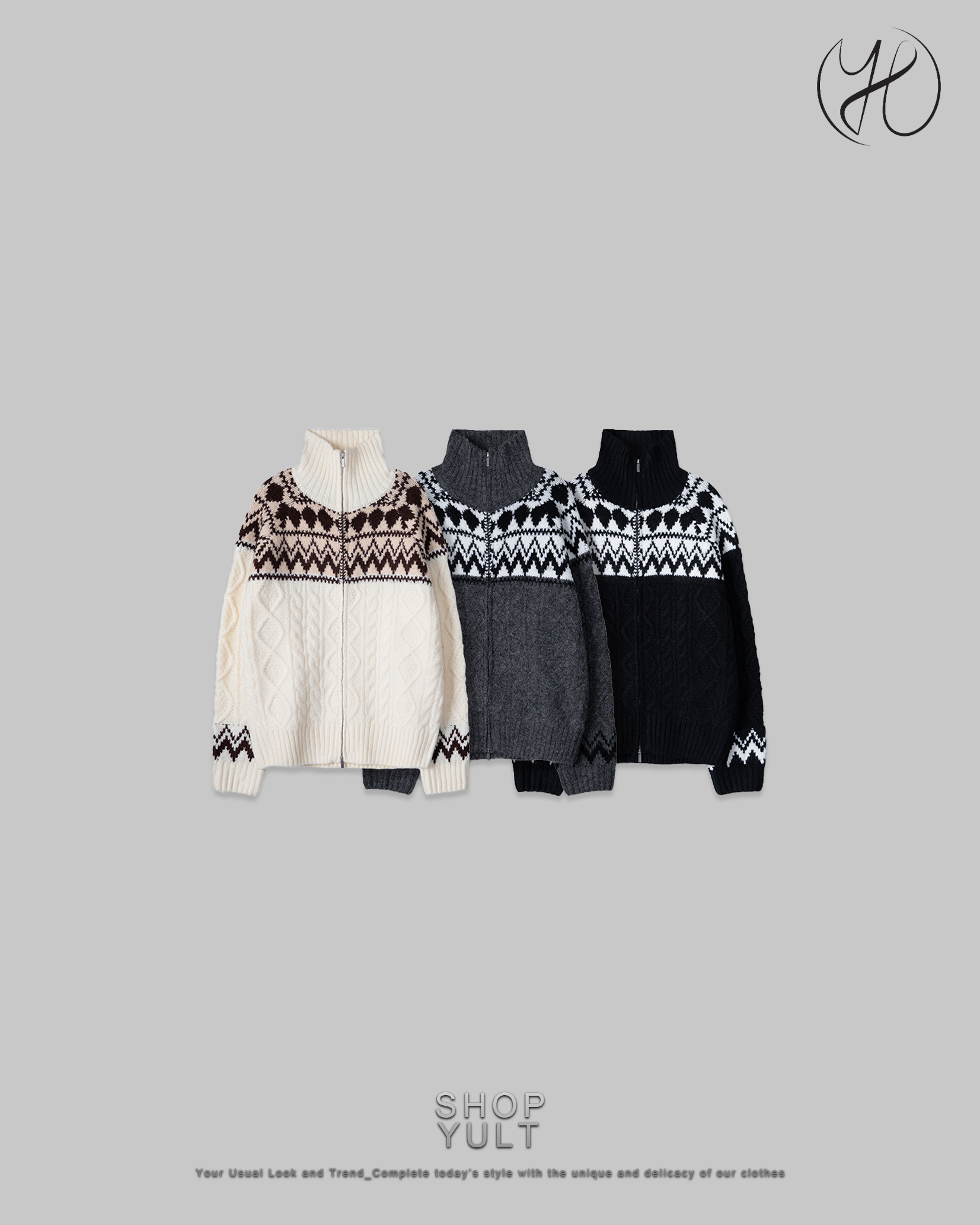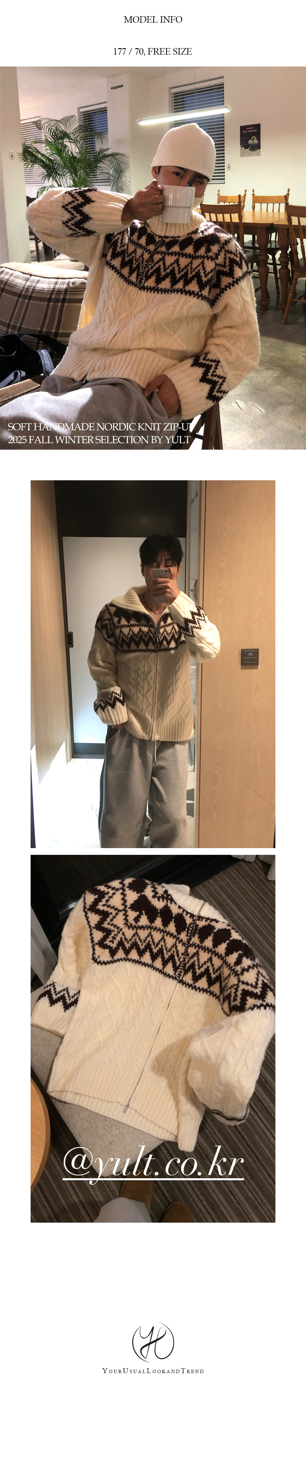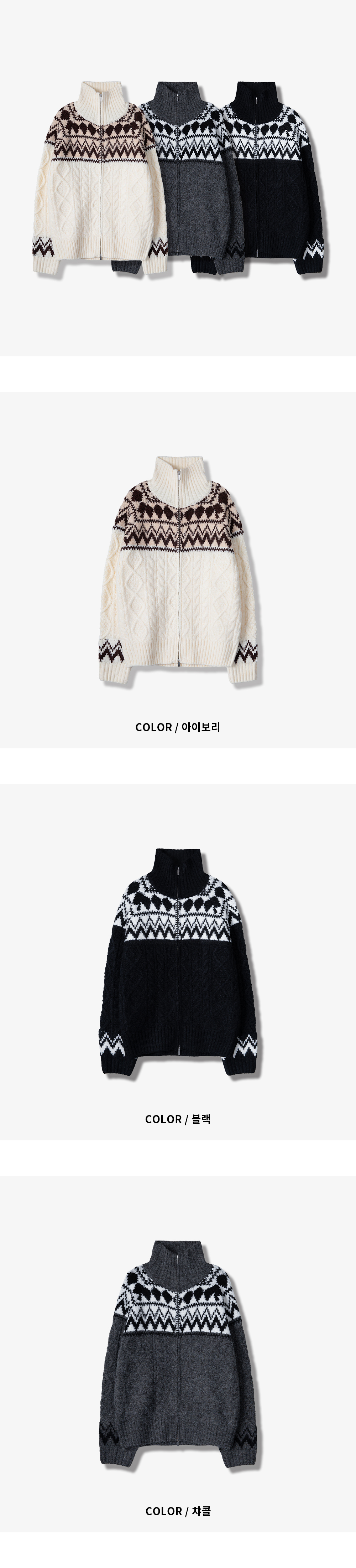 (3 color) ウール ハンドメイド ニット ジップアップ
