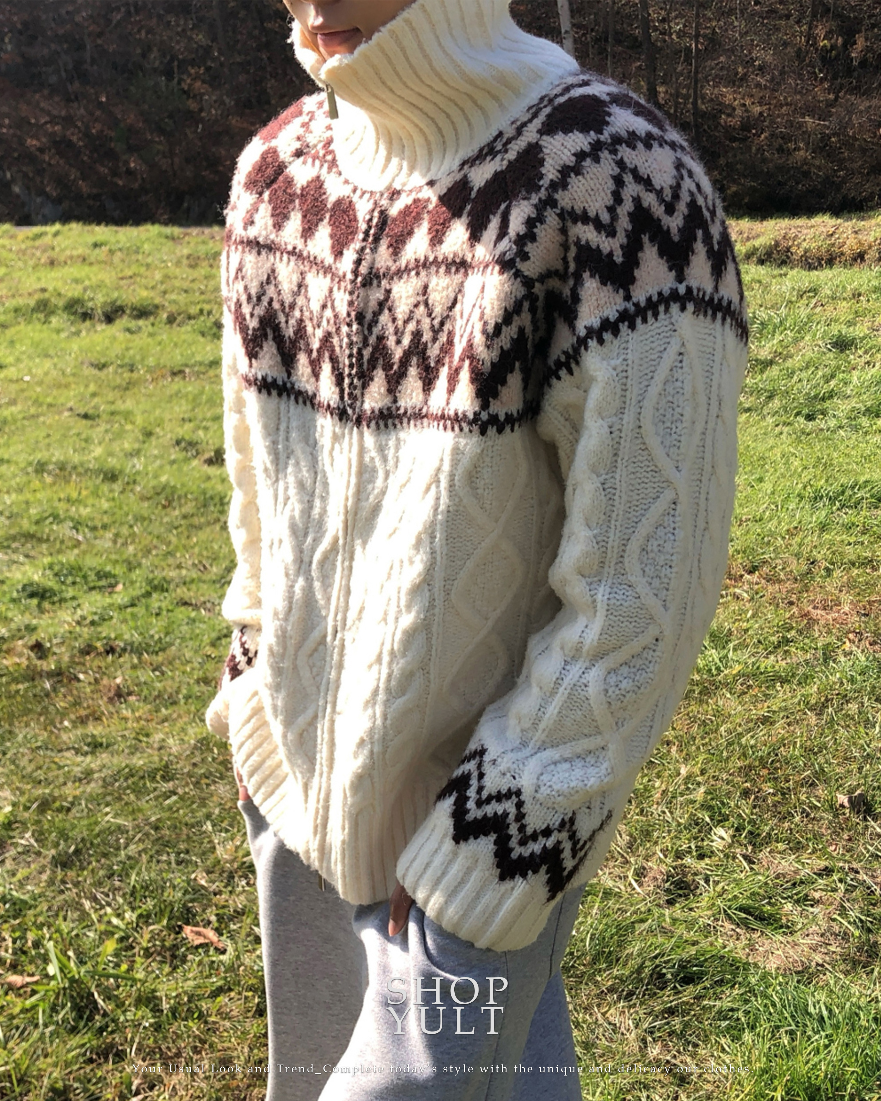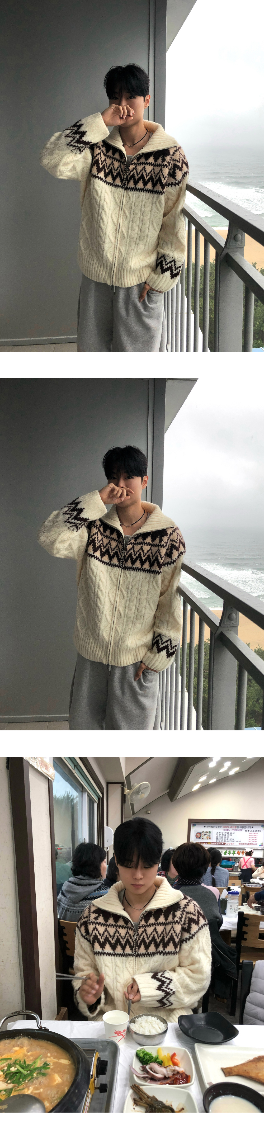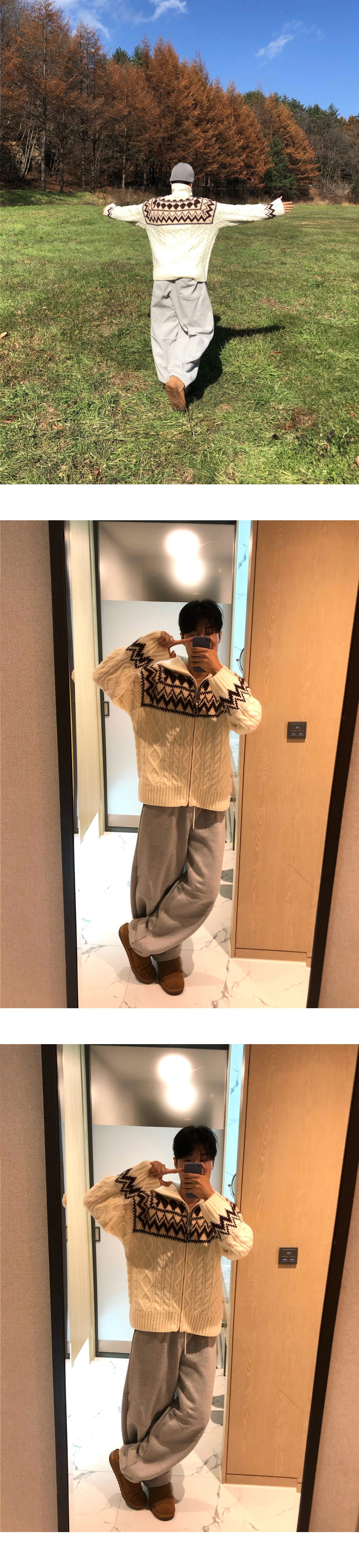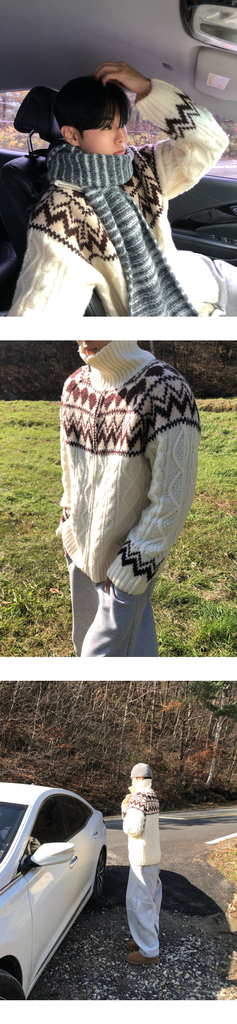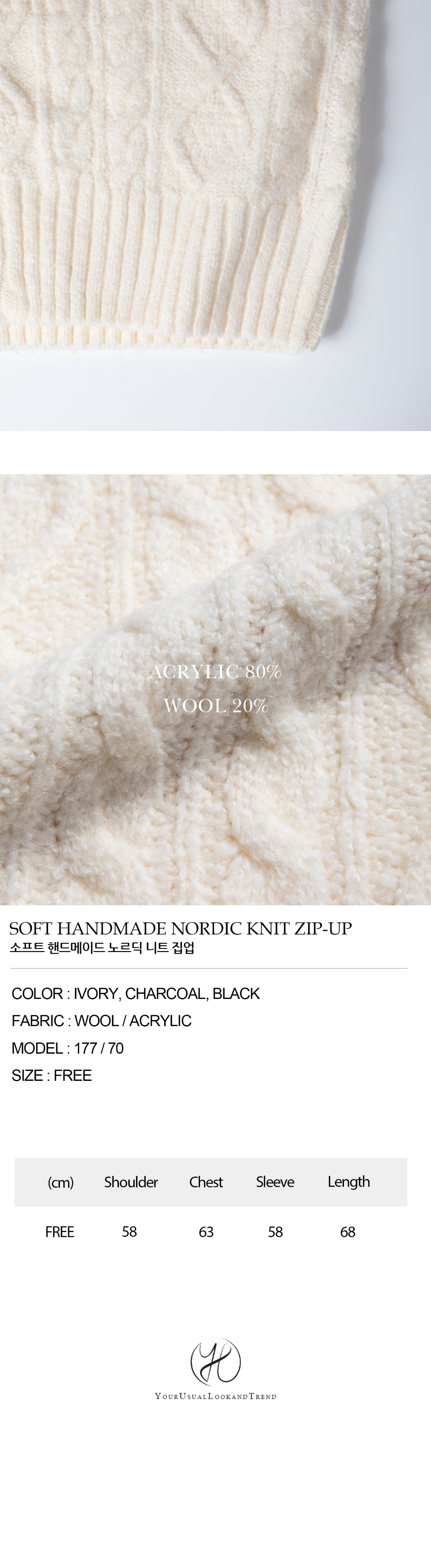 (3 color) ウール ハンドメイド ニット ジップアップ