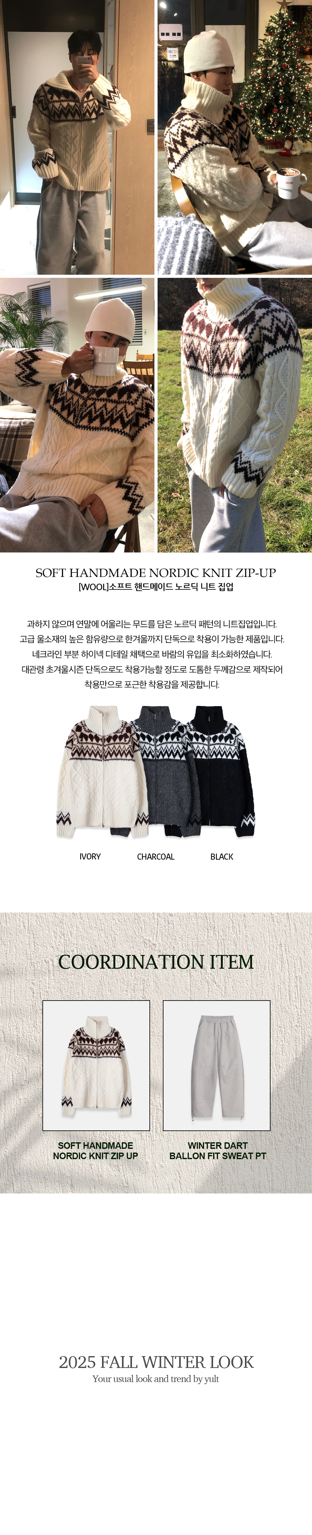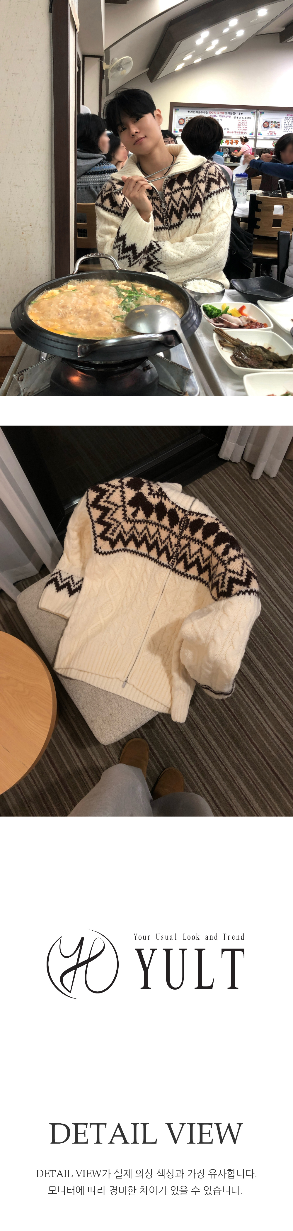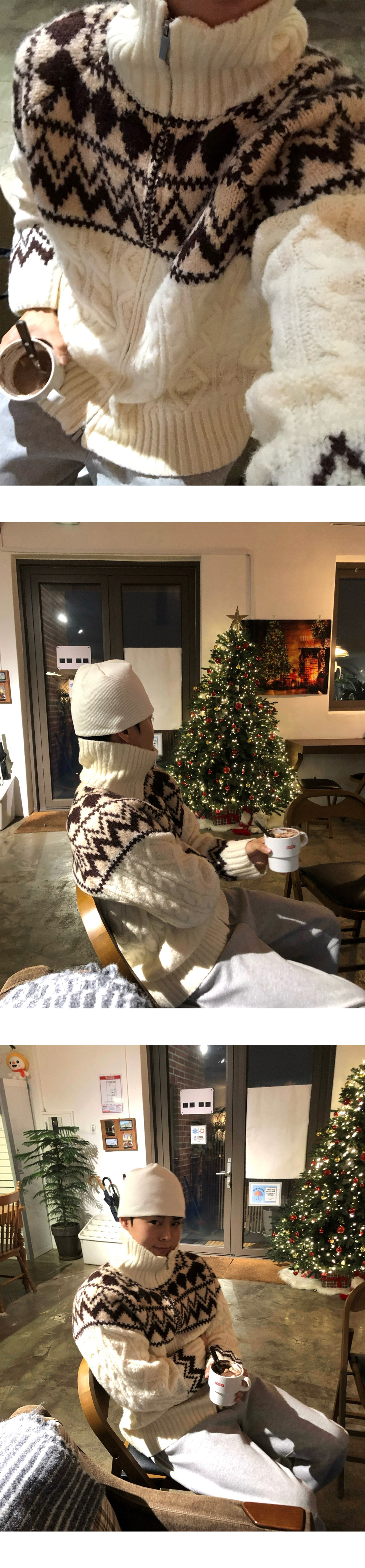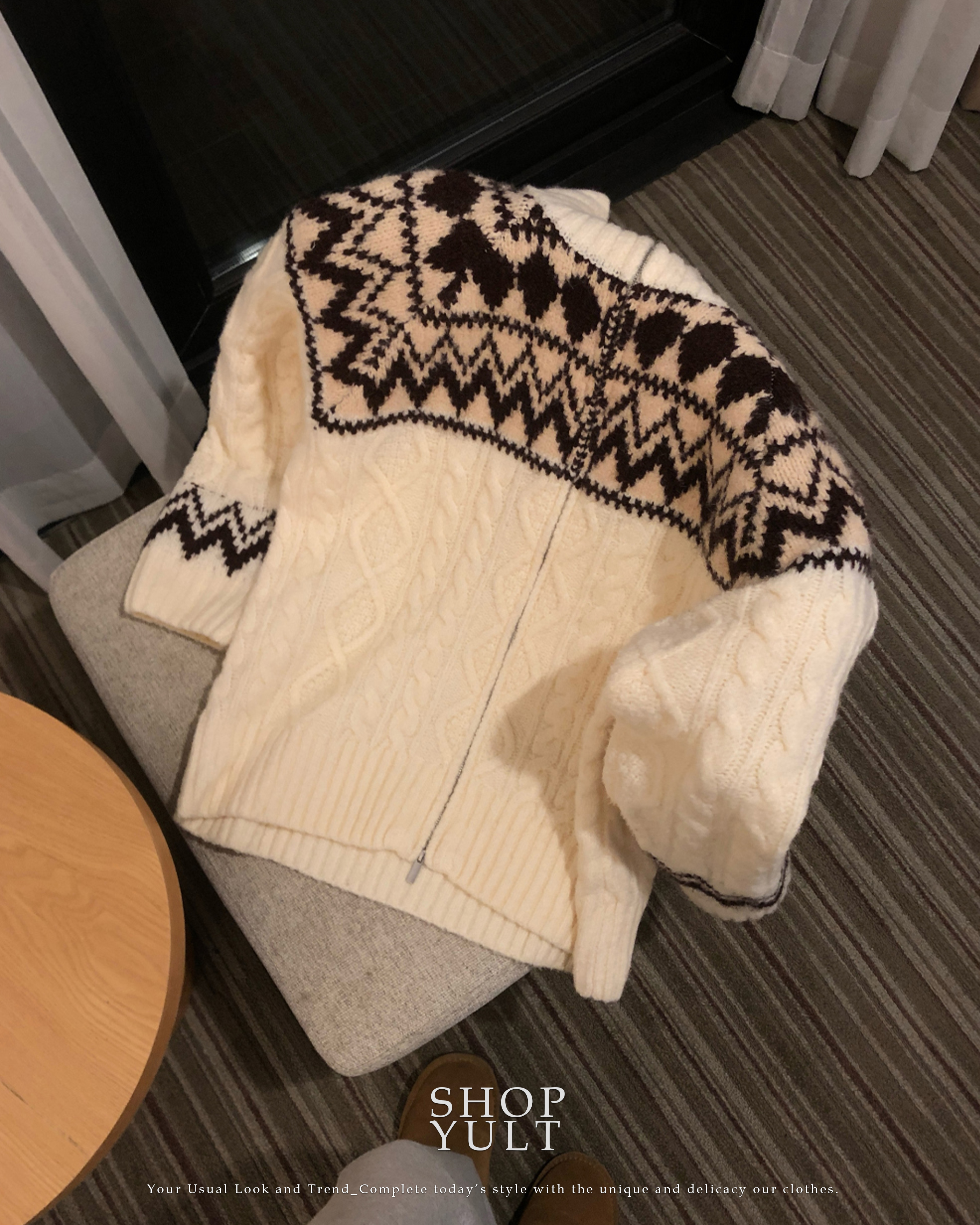 (3 color) ウール ハンドメイド ニット ジップアップ