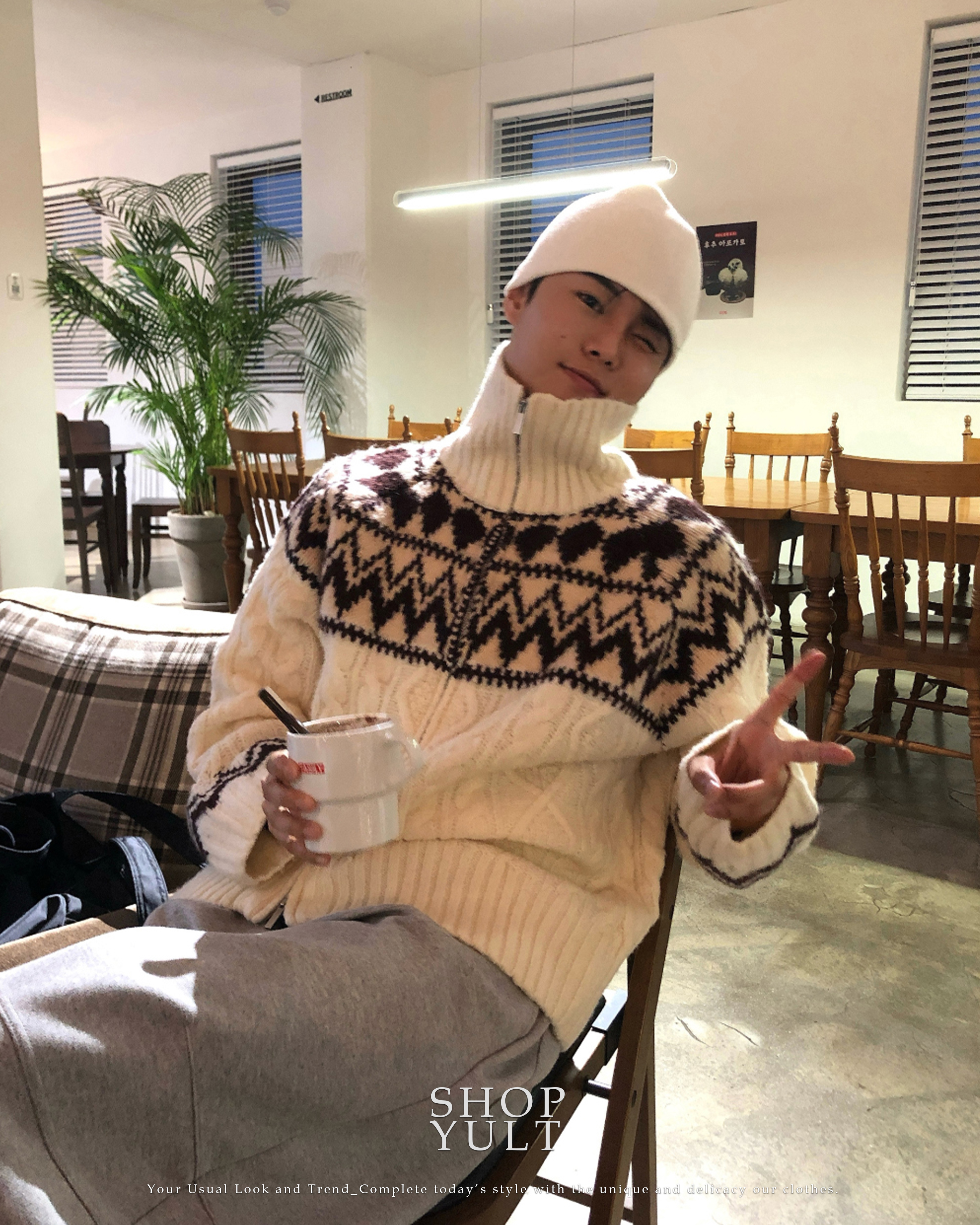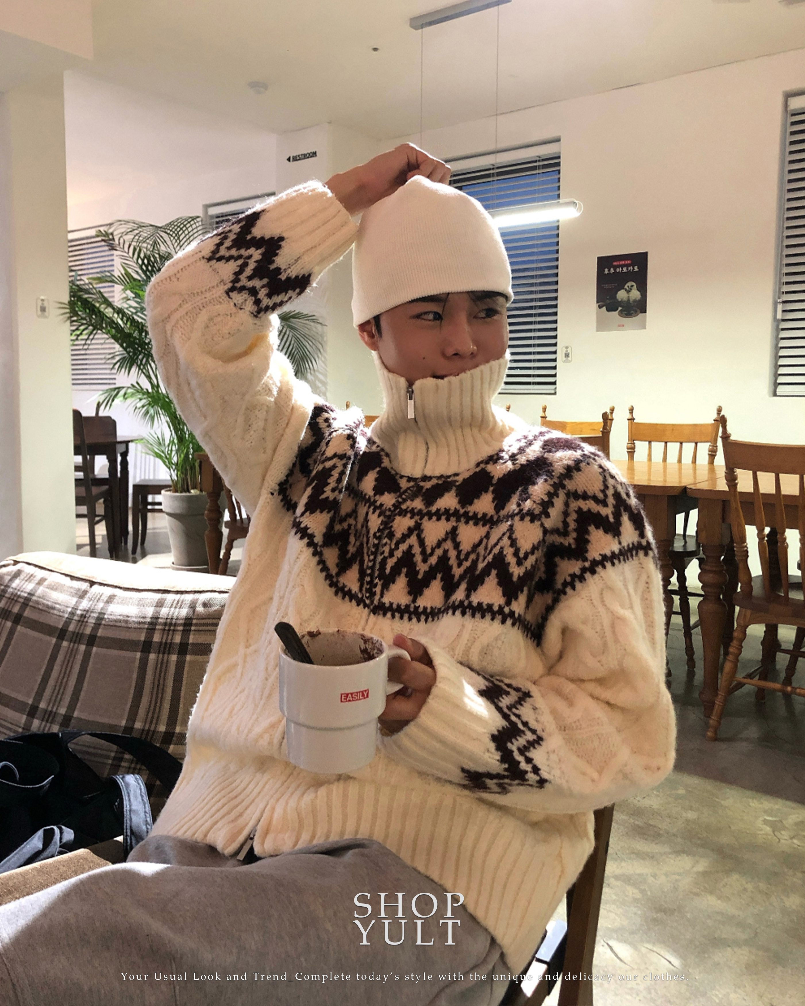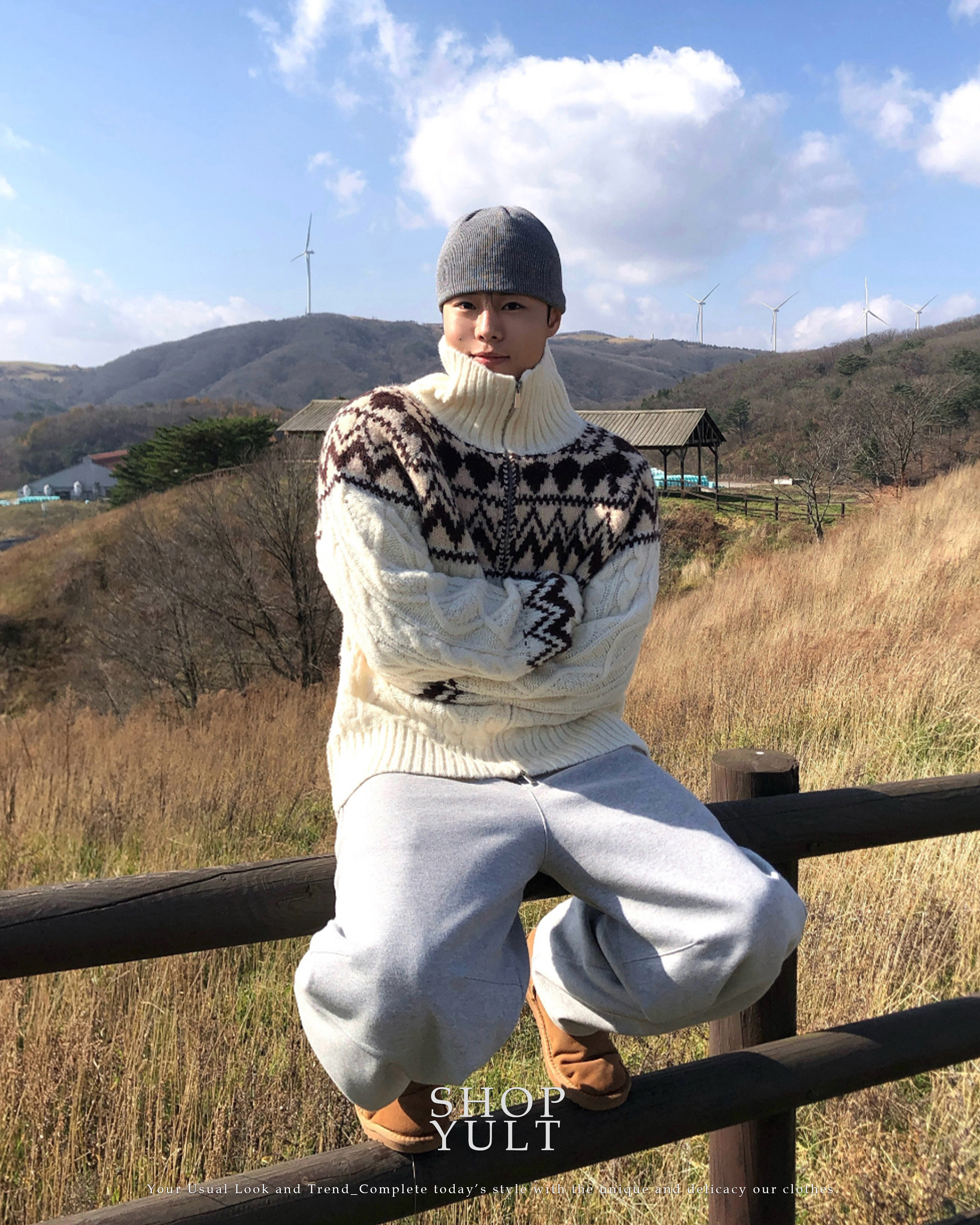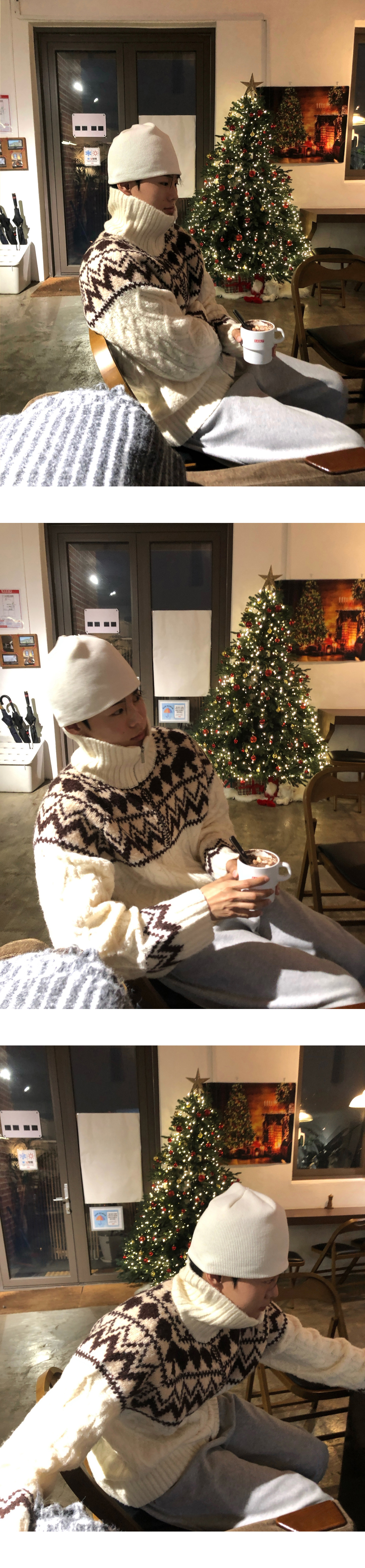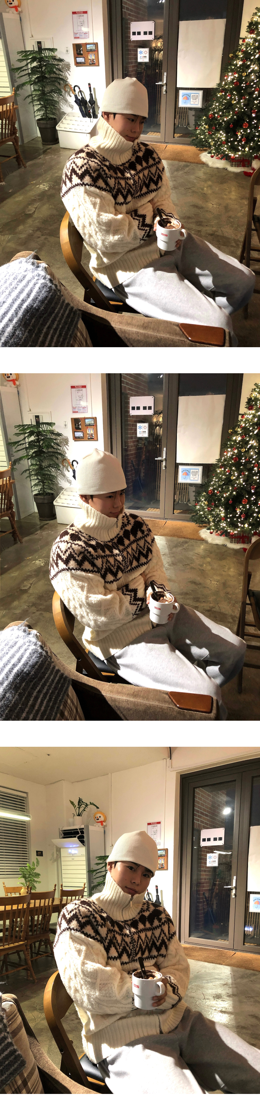 (3 color) ウール ハンドメイド ニット ジップアップ