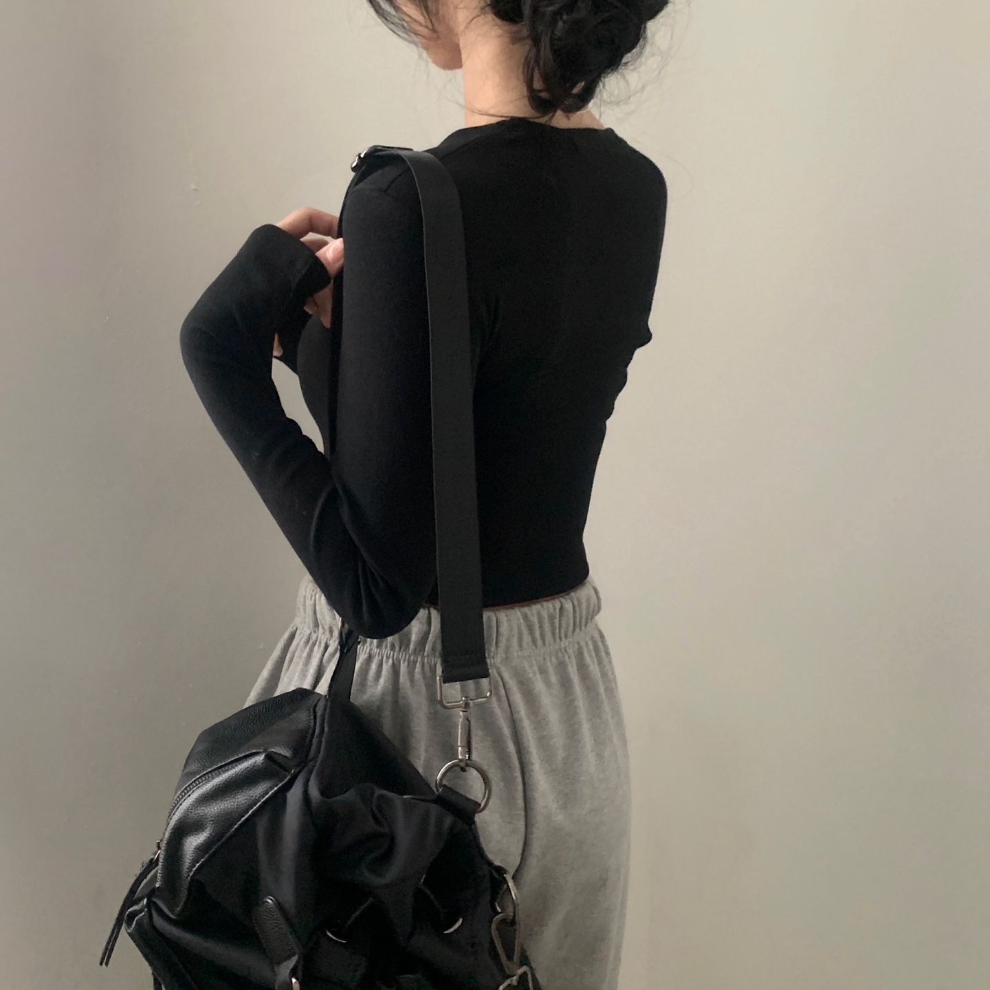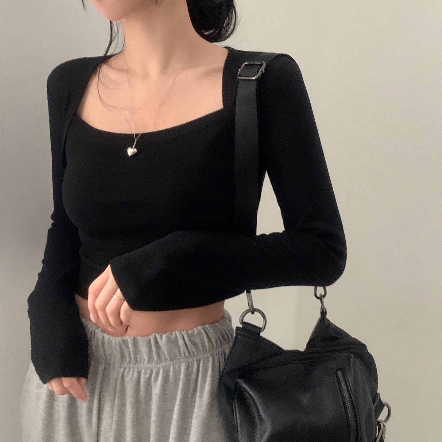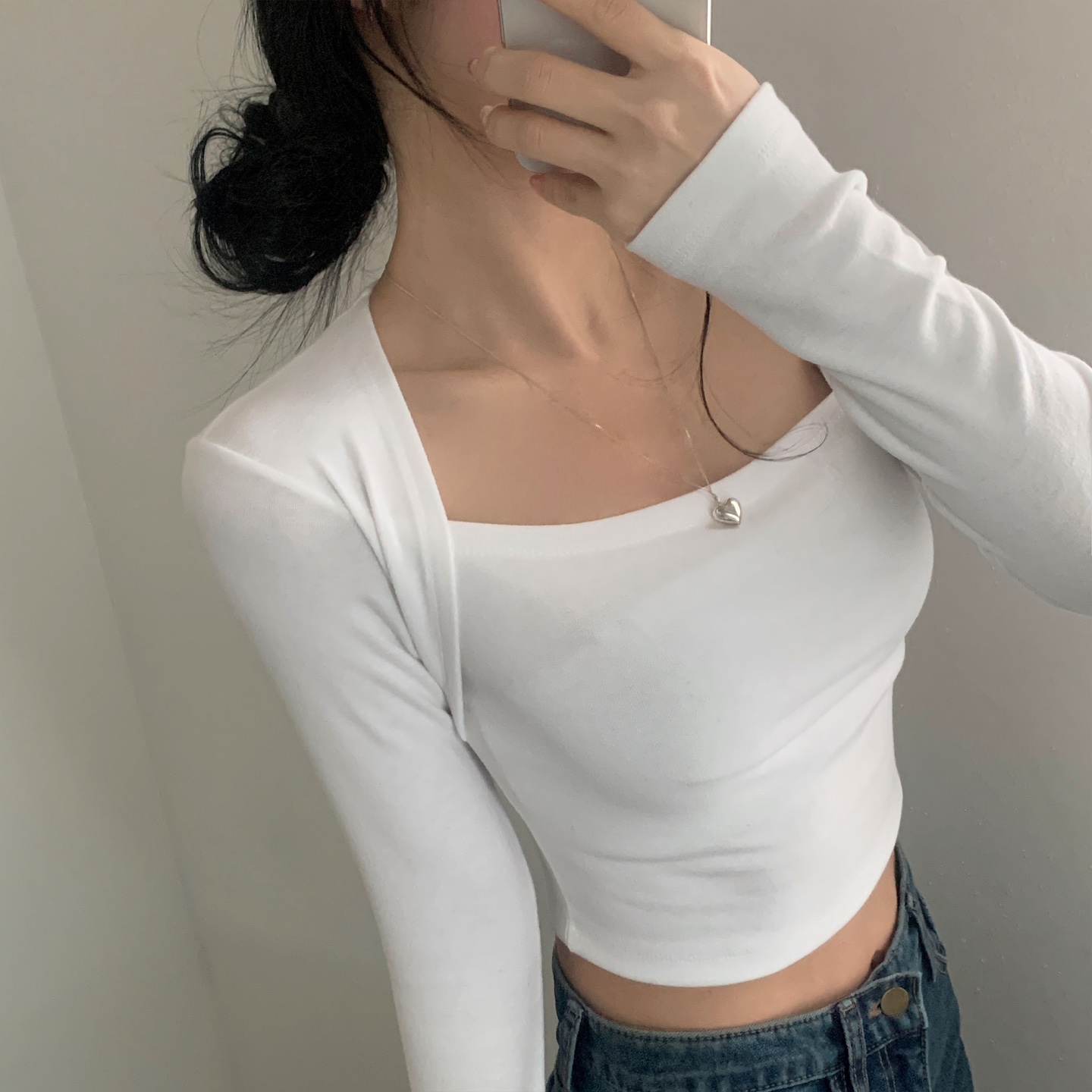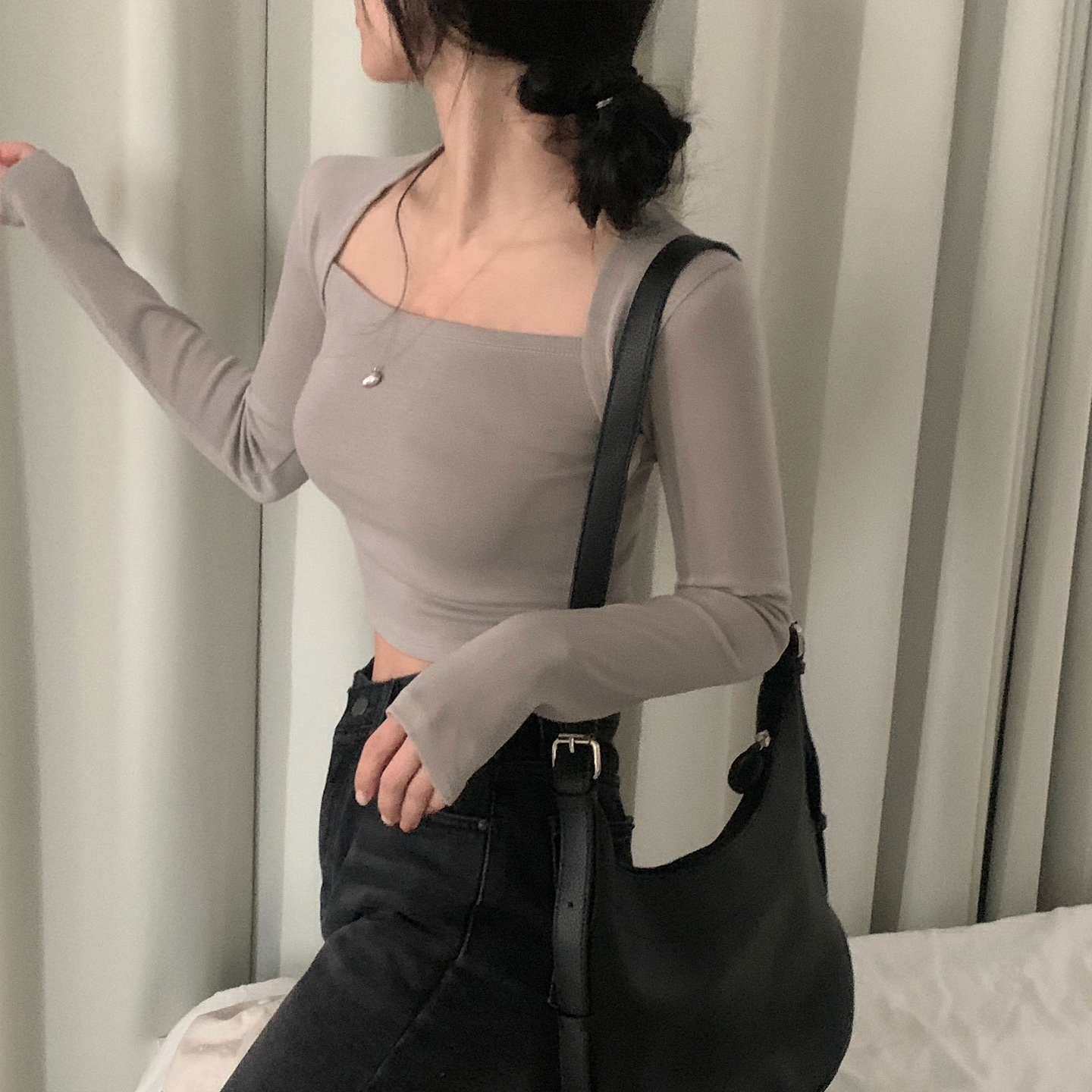 [一体型/裏起毛] スクエアネックボレロ+クロップド長袖Tシャツ-3color
