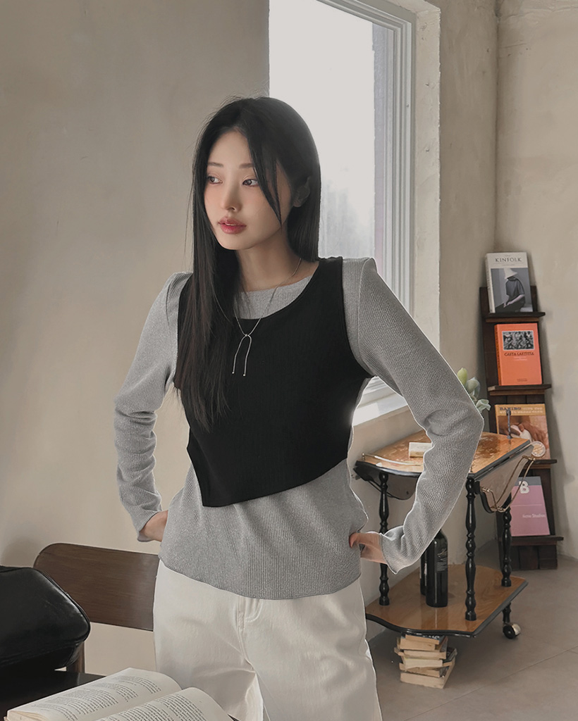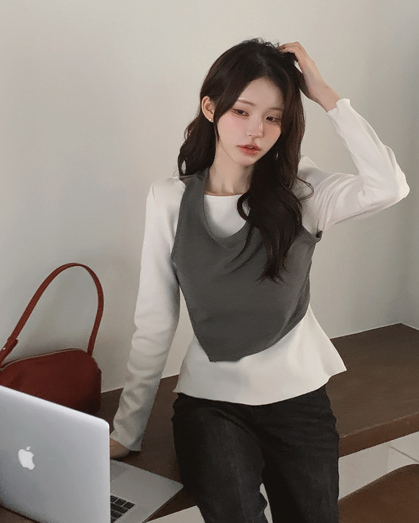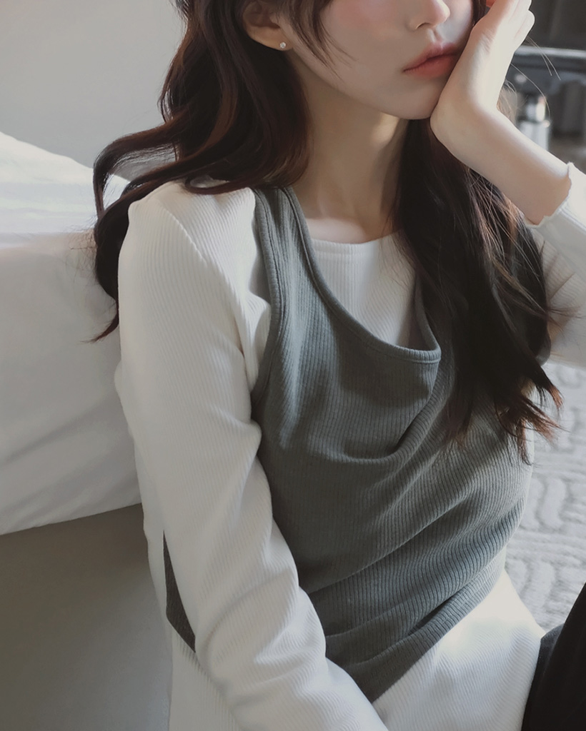 ピーチ起毛ホルターネックレイヤードTシャツ
