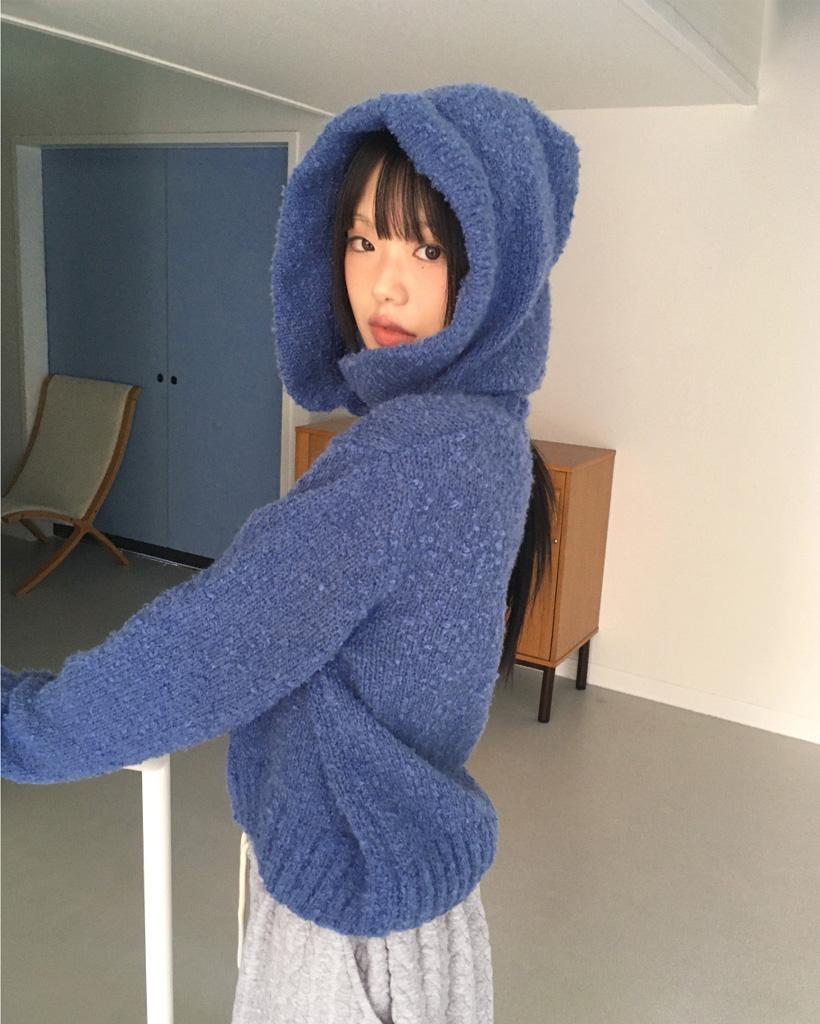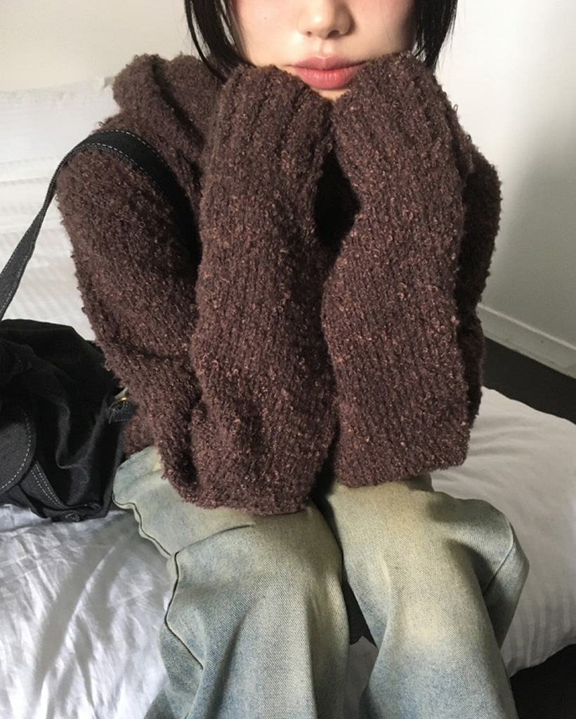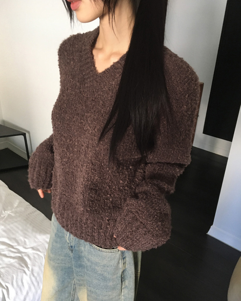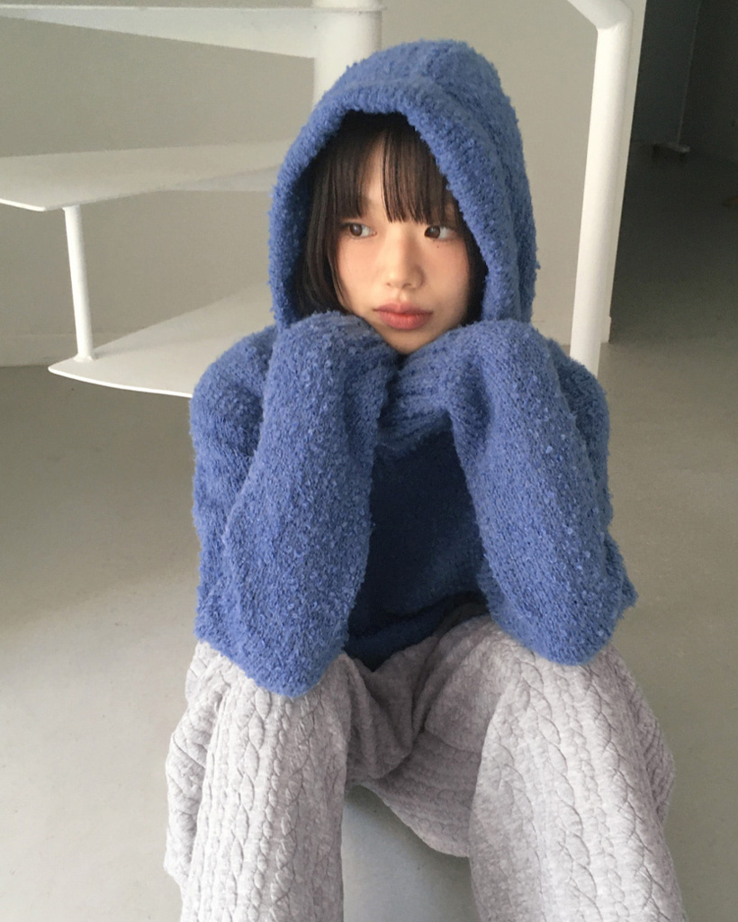 [SET]バラクラバ&ブークレVネッククロップドニットセット