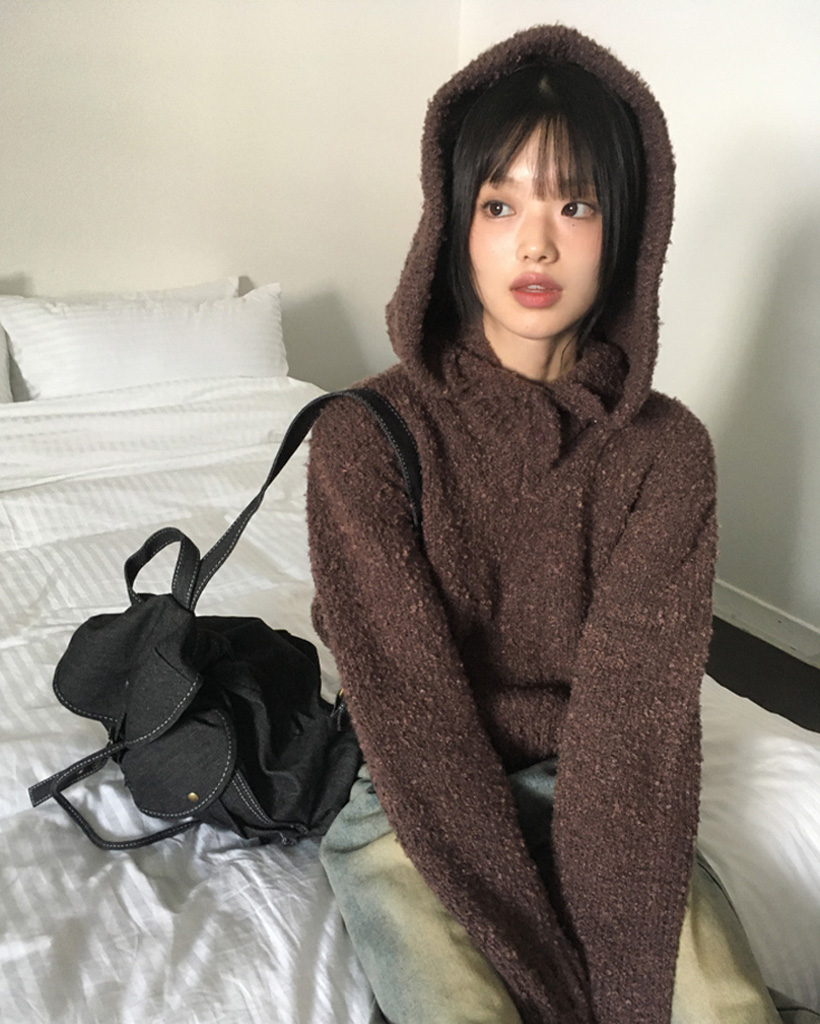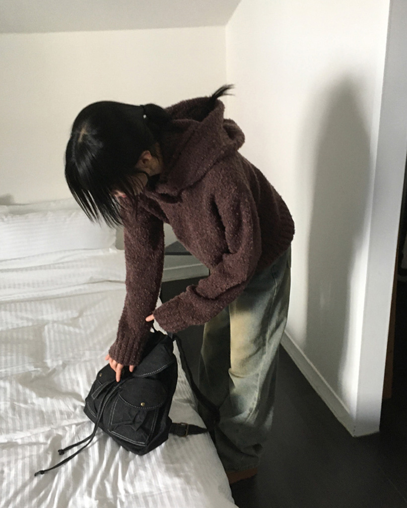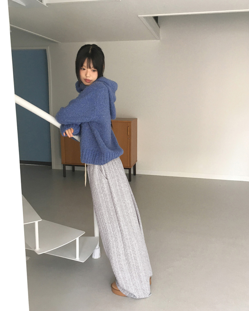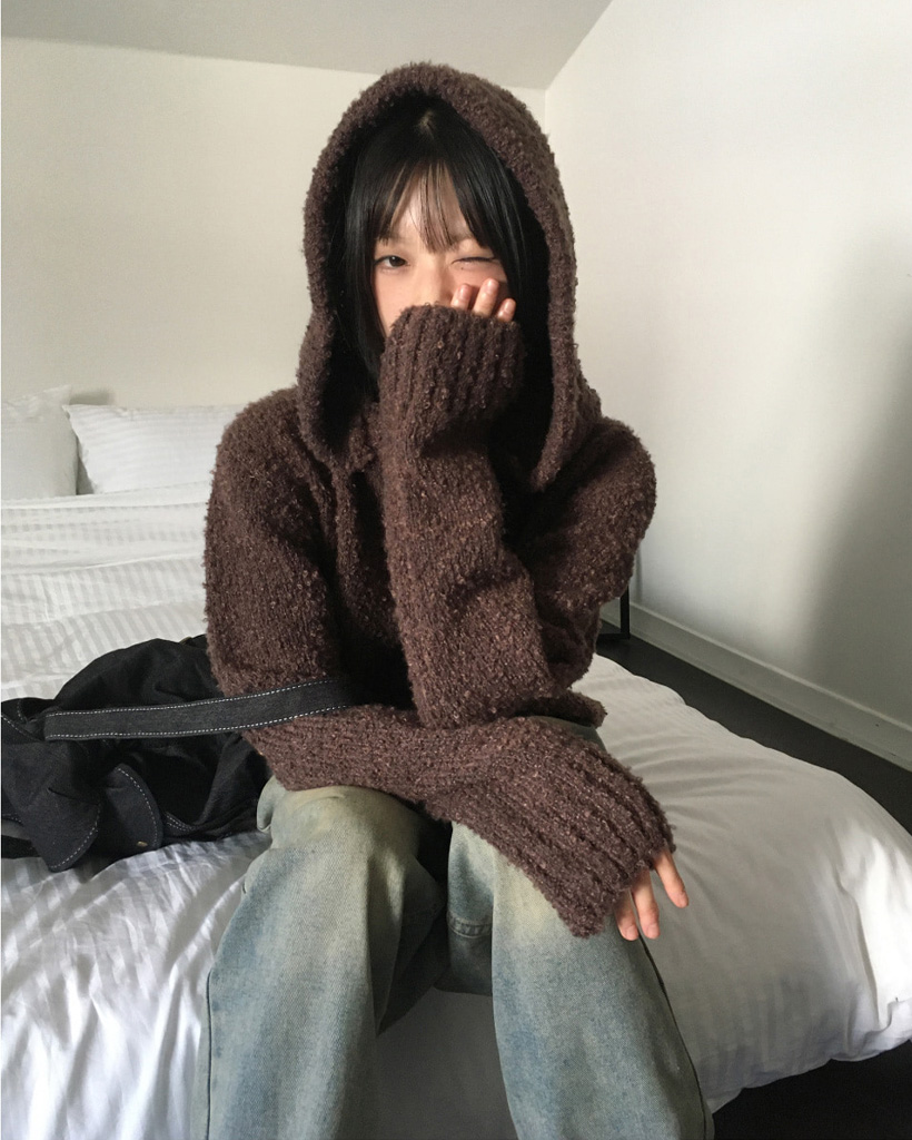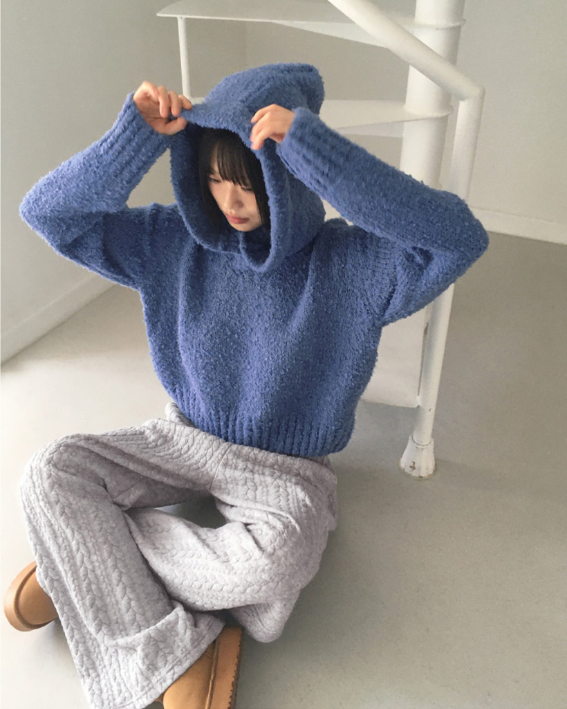 [SET]バラクラバ&ブークレVネッククロップドニットセット