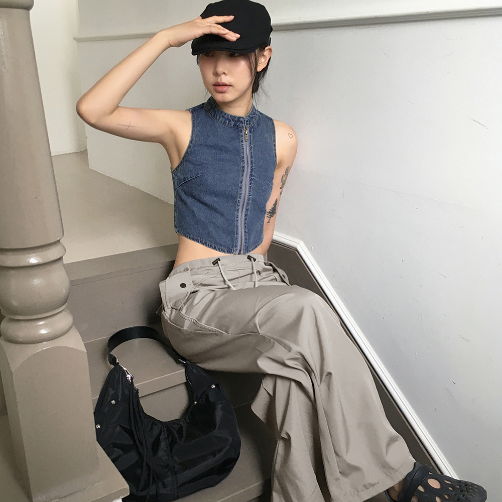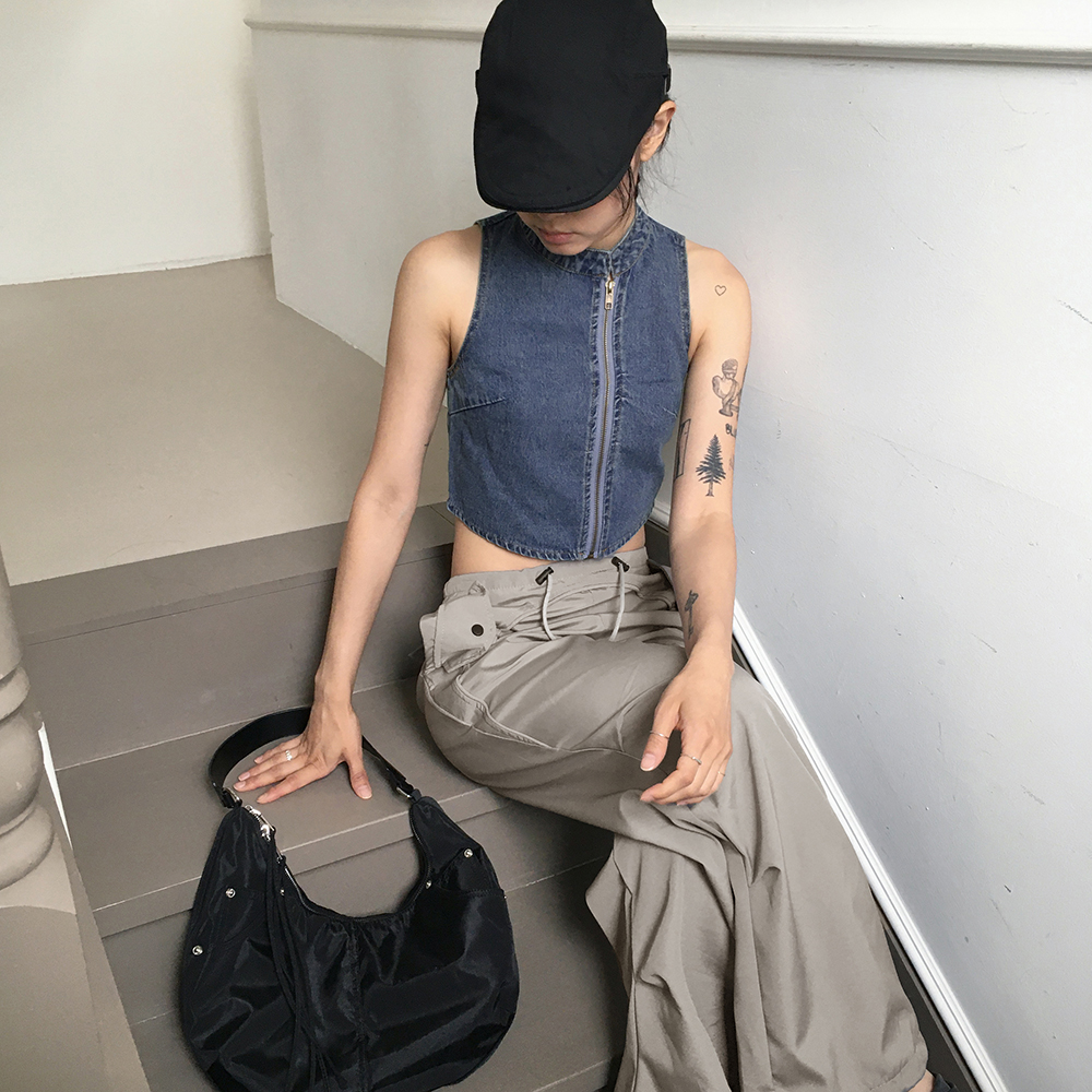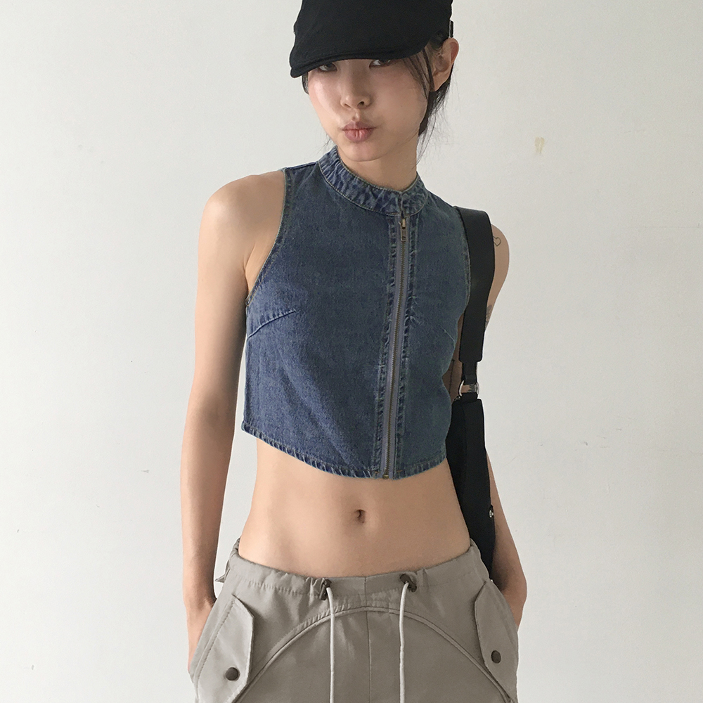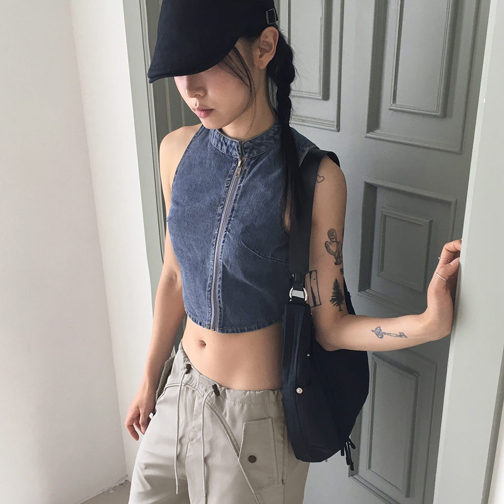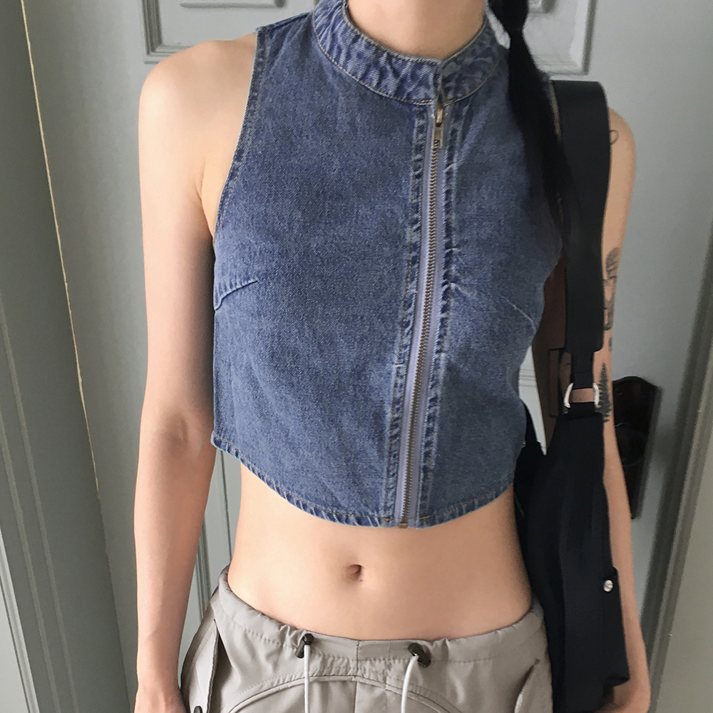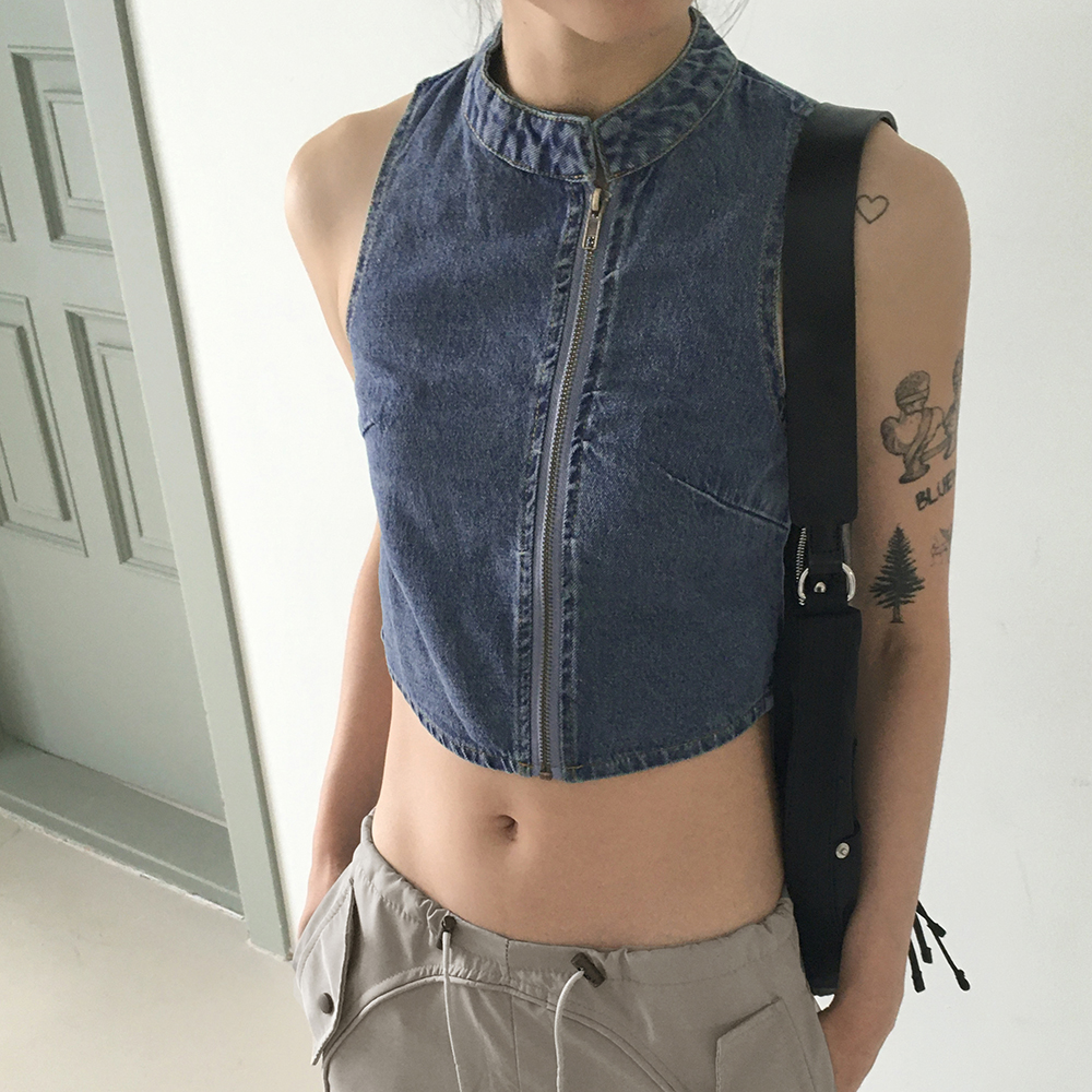 [original]デニムアシンメトリージップアップデニムパーカー