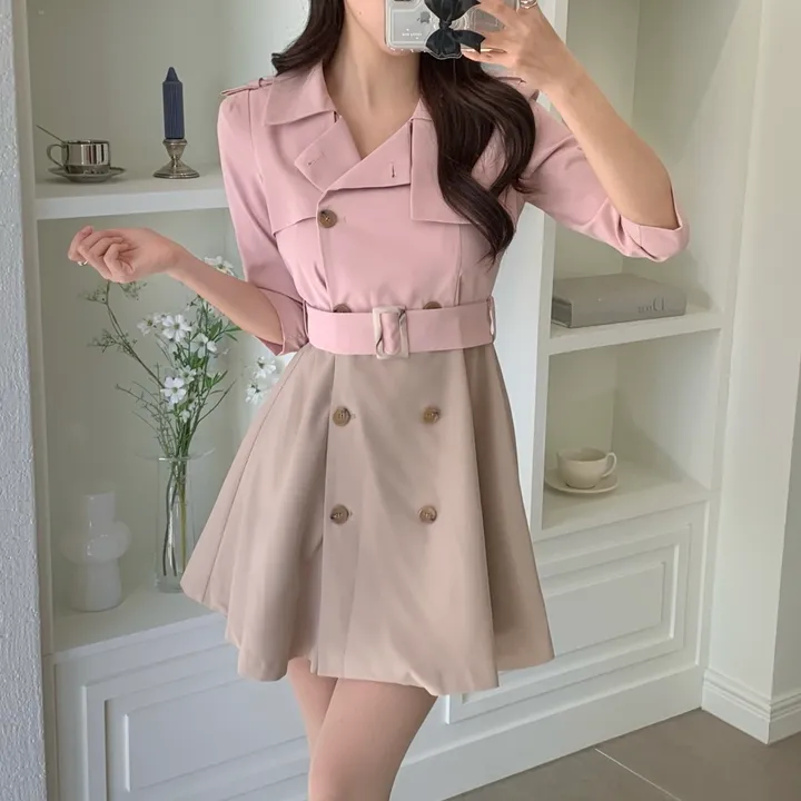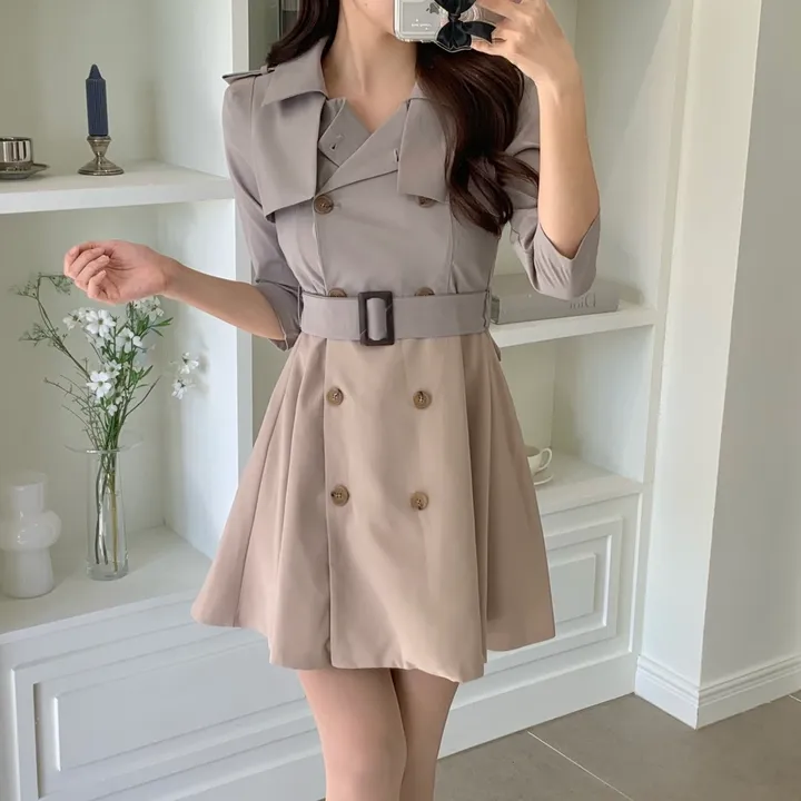 クラシックベルトバイカラーミニワンピース