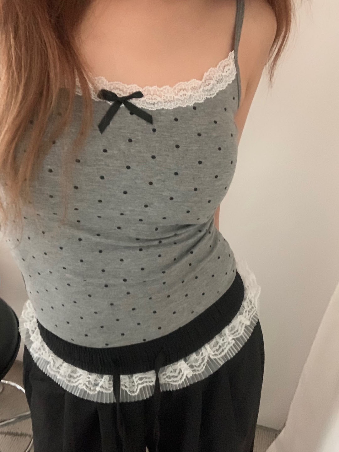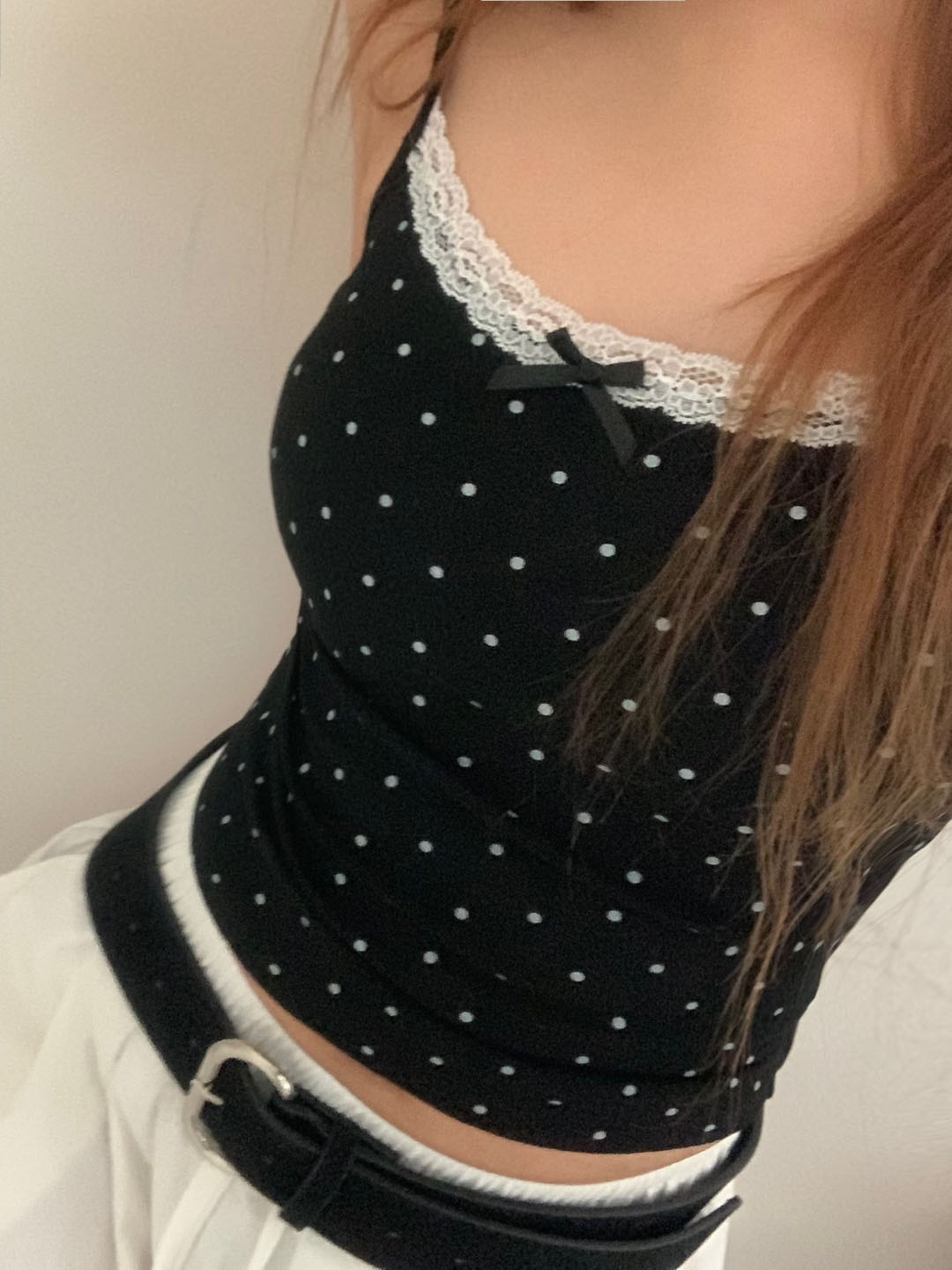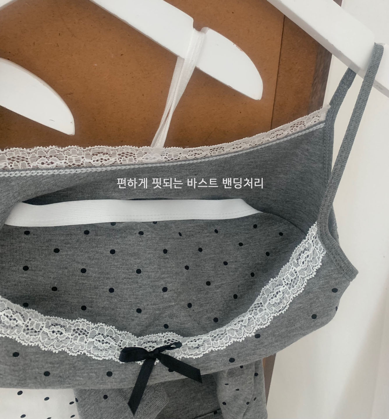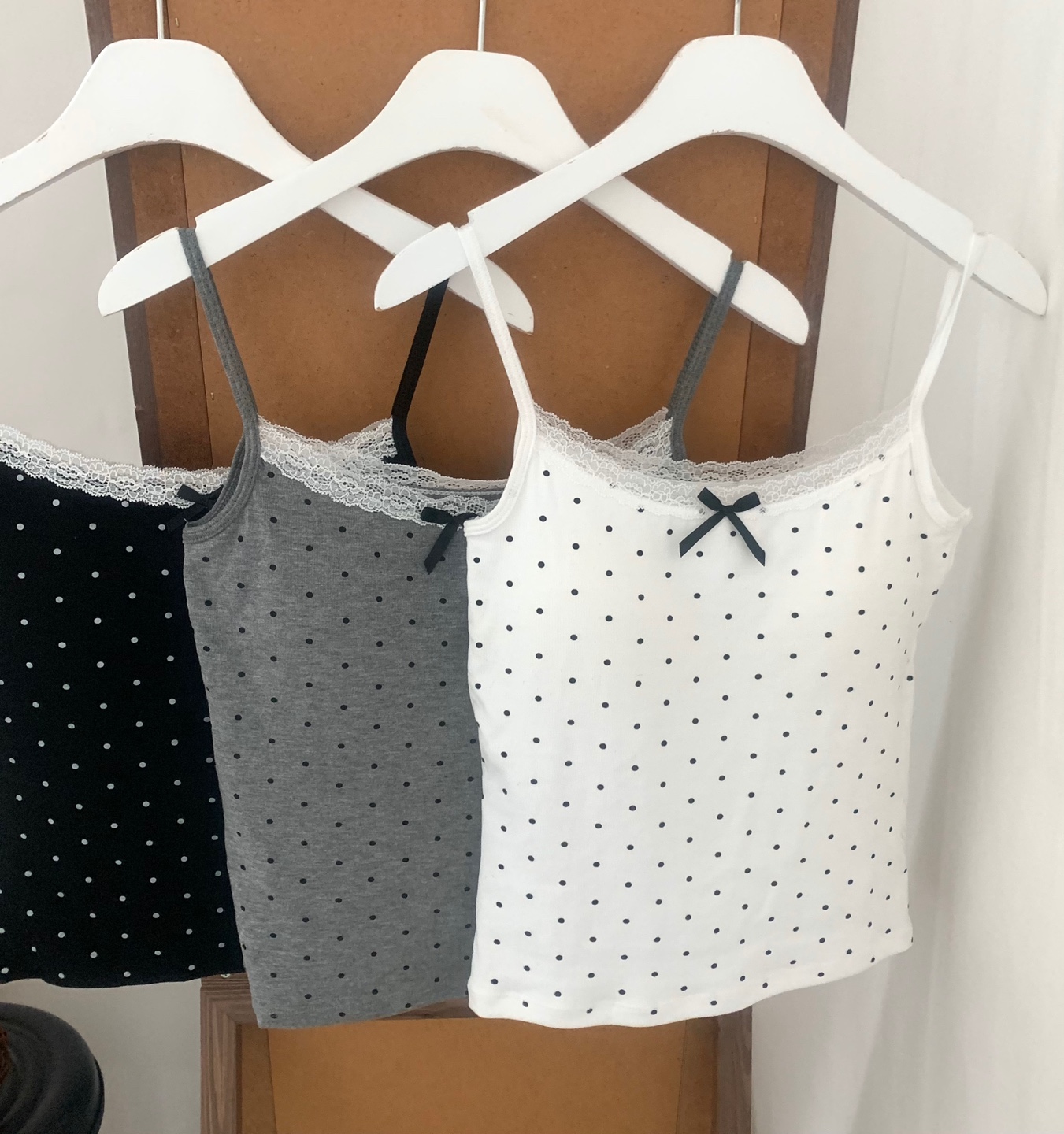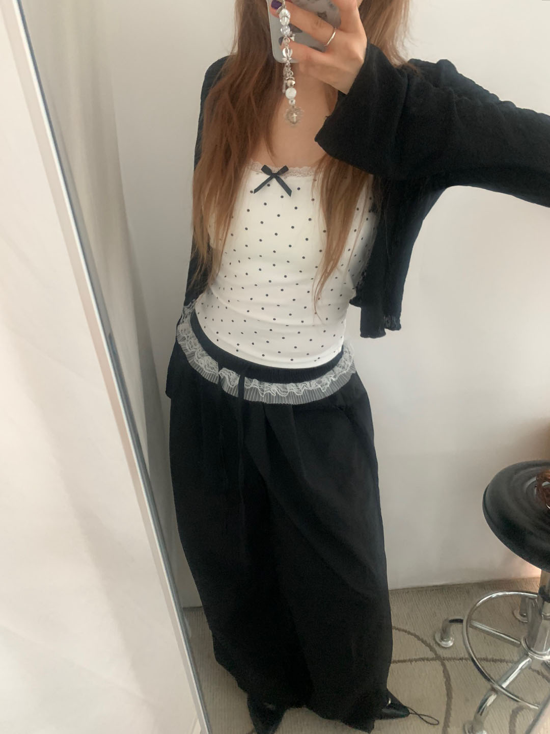 [カップ付き]リボンレースドット柄キャミソール